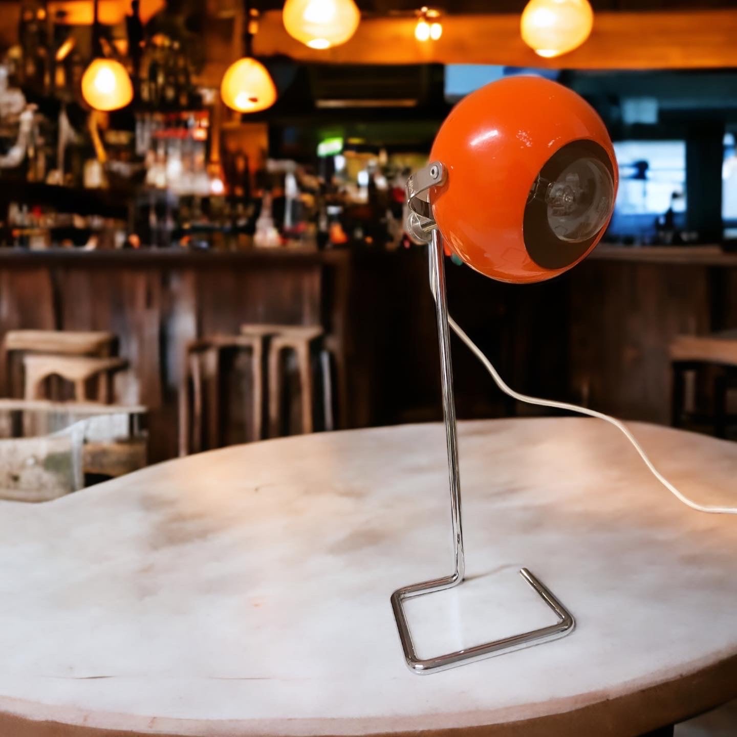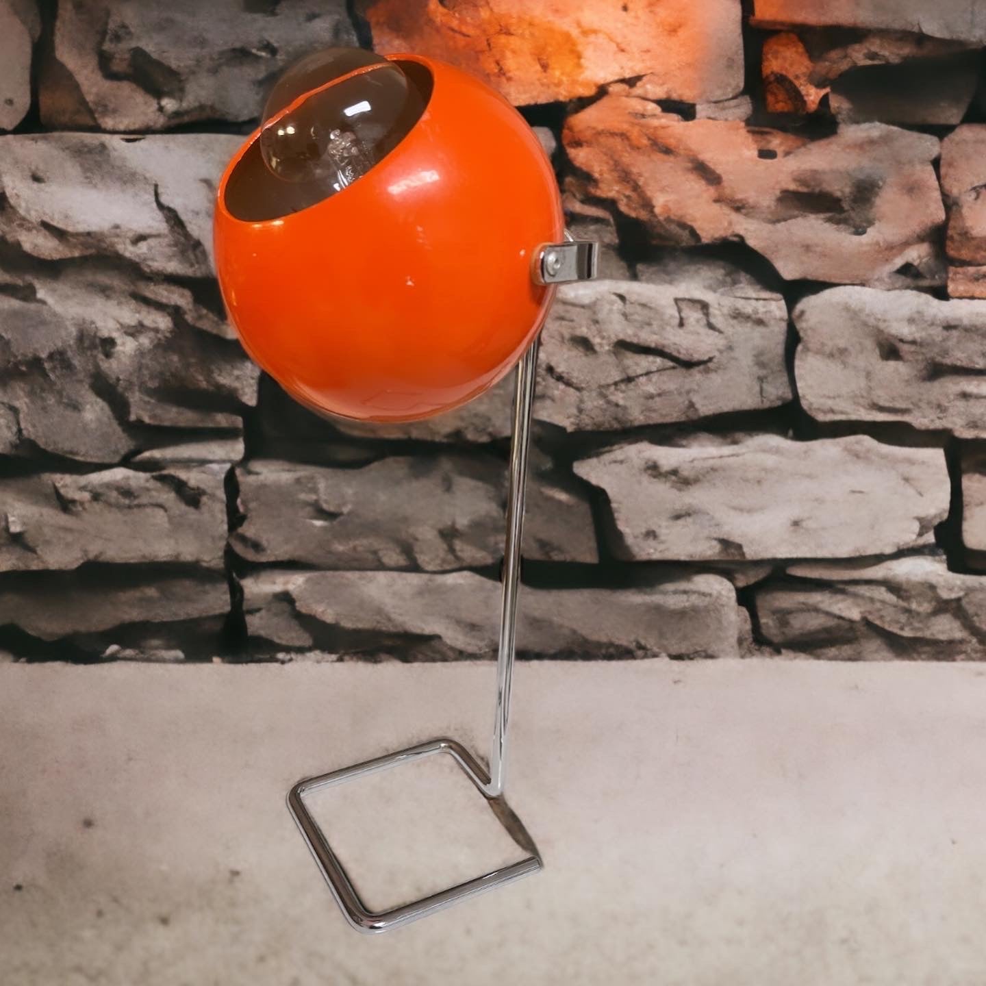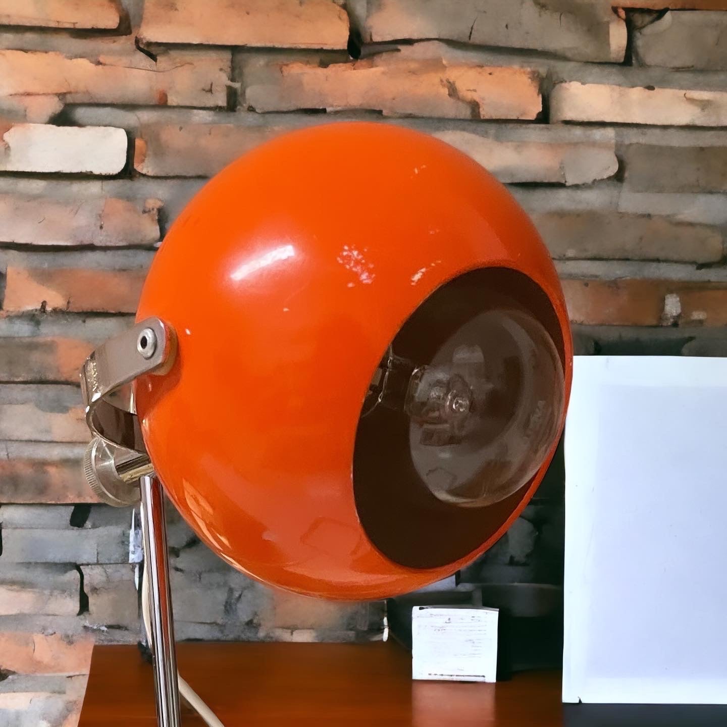 #design #lamp #original #spaceage #from #the #70s with stem, adjustable height max 30 cm, #eyeball #orange adjustable, perfectly working. The style is that of #josefhurka, who as a base preferred a chrome continuation of the stem. Presence of some signs on the hat, visible in the photo, not impactful. A nice #midcentury 👀