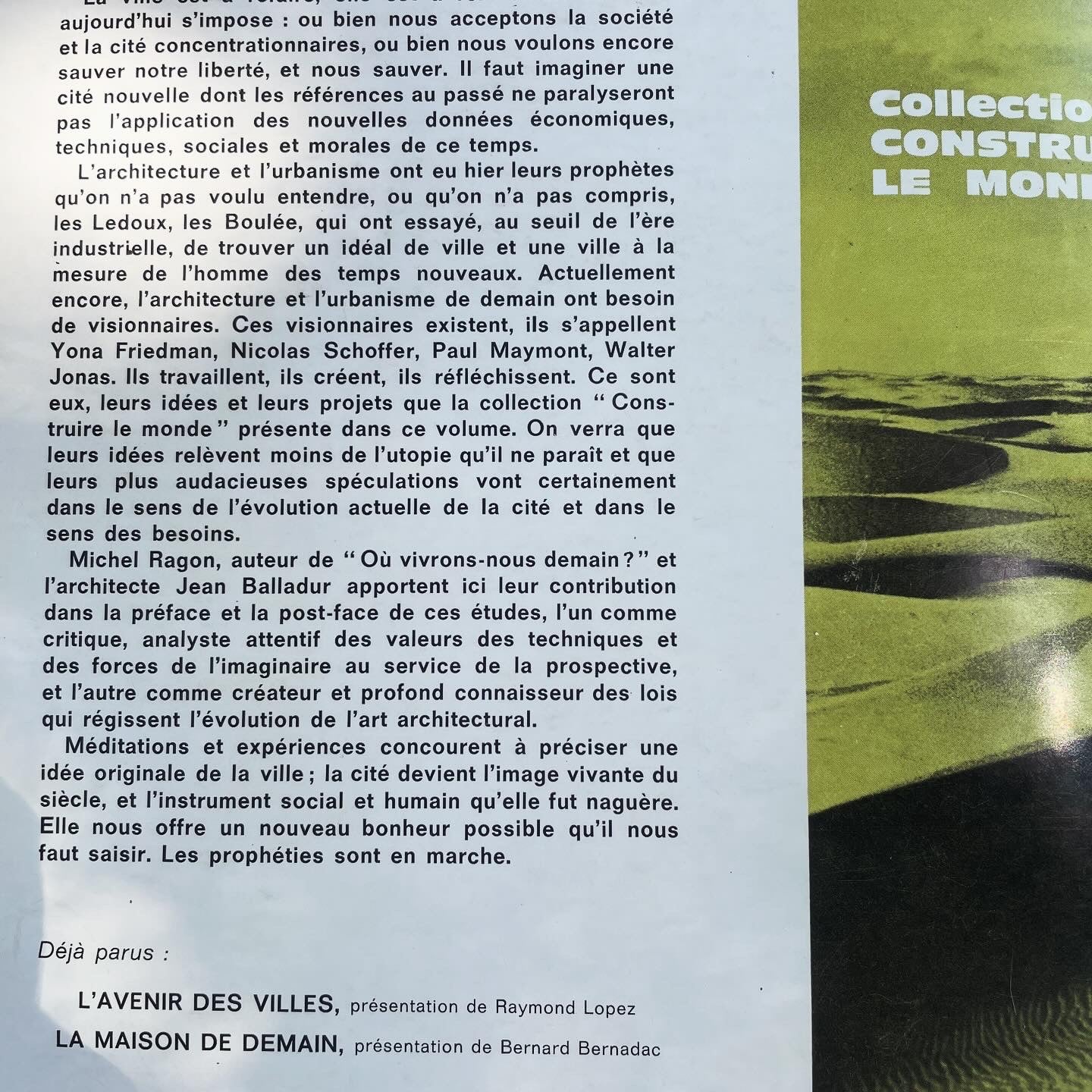 Superb publication on avant-garde architecture after Le Corbusier - 1965, excellent condition, beautiful volume from the Construire Le Monde series on possible architectures, pp. 131. A must-have in an architecture, urban planning, design studio.
