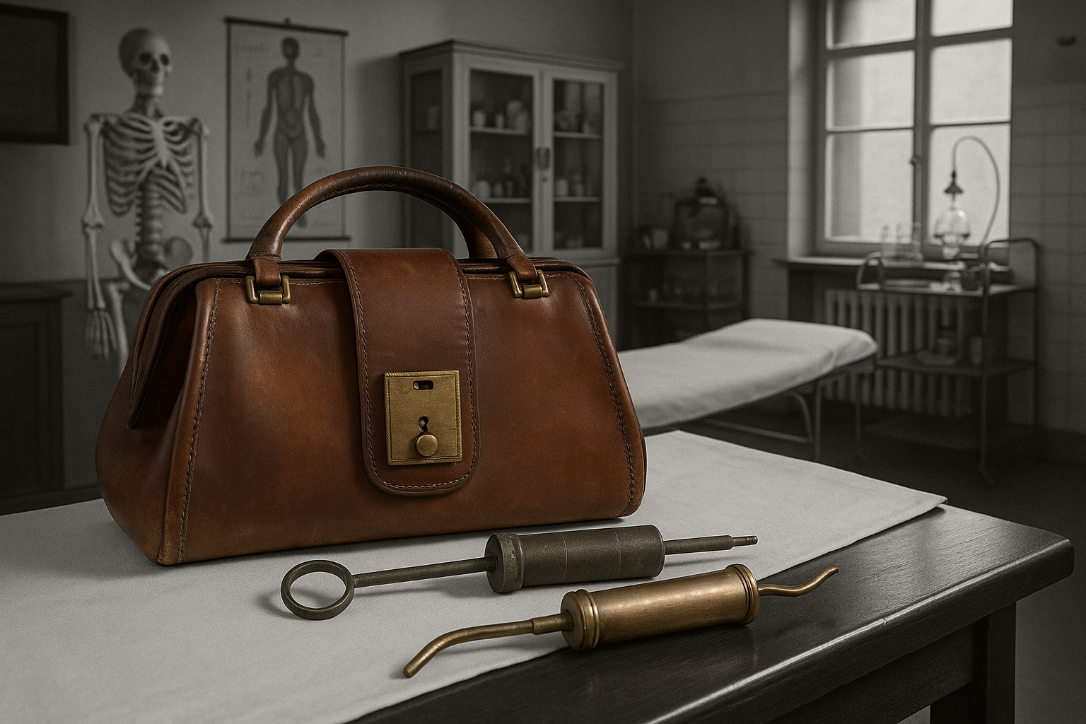 Arrivava sempre a piedi, qualunque fosse la stagione. Un passo tranquillo, deciso, e quella valigetta consumata che sembrava avere un’anima. I bambini lo guardavano con sospetto, le madri con speranza, i padri con un certo rispetto. Il dottor Mariani non aveva ambulatorio: lo si aspettava in casa, come si aspetta il silenzio dopo un temporale. Quella borsa l’aveva da sempre, dicevano. Cuoio spesso, cuciture resistenti, una serratura che solo lui sapeva aprire con un clic secco. All’interno, il necessario per curare: garze, tintura di iodio, una piccola siringa nichelata con beccuccio curvo per irrigazioni intime e un’altra, più grezza, con l’anello per il pollice, usata nei lavaggi rettali o per trattare le infezioni uterine. I trattamenti, allora, erano decisi, diretti. Senza anestesie, senza spiegazioni troppo lunghe. Ma c’era qualcosa nel modo in cui il dottore poggiava quella borsa sul tavolo e ne estraeva gli strumenti che calmava anche i più spaventati. Perché quella borsa portava con sé non solo medicine e ferri, ma la certezza che qualcuno sarebbe rimasto finché il male non fosse passato. Oggi resta quel silenzio, quel rispetto. E questa borsa, con i suoi strumenti, come testimone muta di un’epoca in cui la cura passava prima dagli occhi e poi dalle mani.