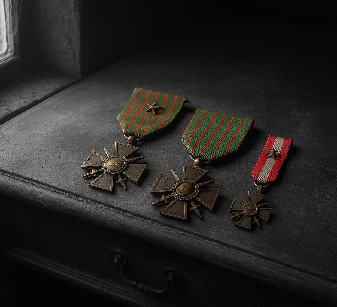 C’era polvere, come un sottile mantello del tempo, su quel vecchio scrittoio abbandonato. I cassetti cigolavano appena, come se custodissero un segreto da sussurrare. In un angolo, tra carte ingiallite e penne spuntate, ho trovato queste tre croci di metallo, ognuna con un nastro logoro ma ancora vibrante di storia. Erano lì, dimenticate, eppure sembravano sussurrare un’eco di gloria, di coraggio e di sacrificio. La prima croce, con la data 1914-1916, portava l’impronta di una guerra ancora giovane, un conflitto che aveva appena cominciato a divorare il mondo. La seconda, 1914-1917, parlava invece di resistenza, di uomini che non si arresero neppure quando la speranza vacillava. E poi c’era la più piccola, la Croix de Guerre T.O.E., con il suo nastro rosso e bianco e la scritta “T.O.E.” sul retro: memoria di un destino lontano, di teatri d’operazioni in terre esotiche e di battaglie combattute sotto un sole straniero. Tenendole tra le dita, ho sentito la freddezza del metallo trasformarsi in calore. Ognuna di queste croci porta con sé un frammento di vita, un sacrificio, un atto di eroismo che non dovrebbe mai essere dimenticato. Sono testimonianze, simboli di onore e di speranza. Un legame indissolubile tra passato e presente, tra chi ha vissuto quegli anni e chi oggi può solo immaginare.