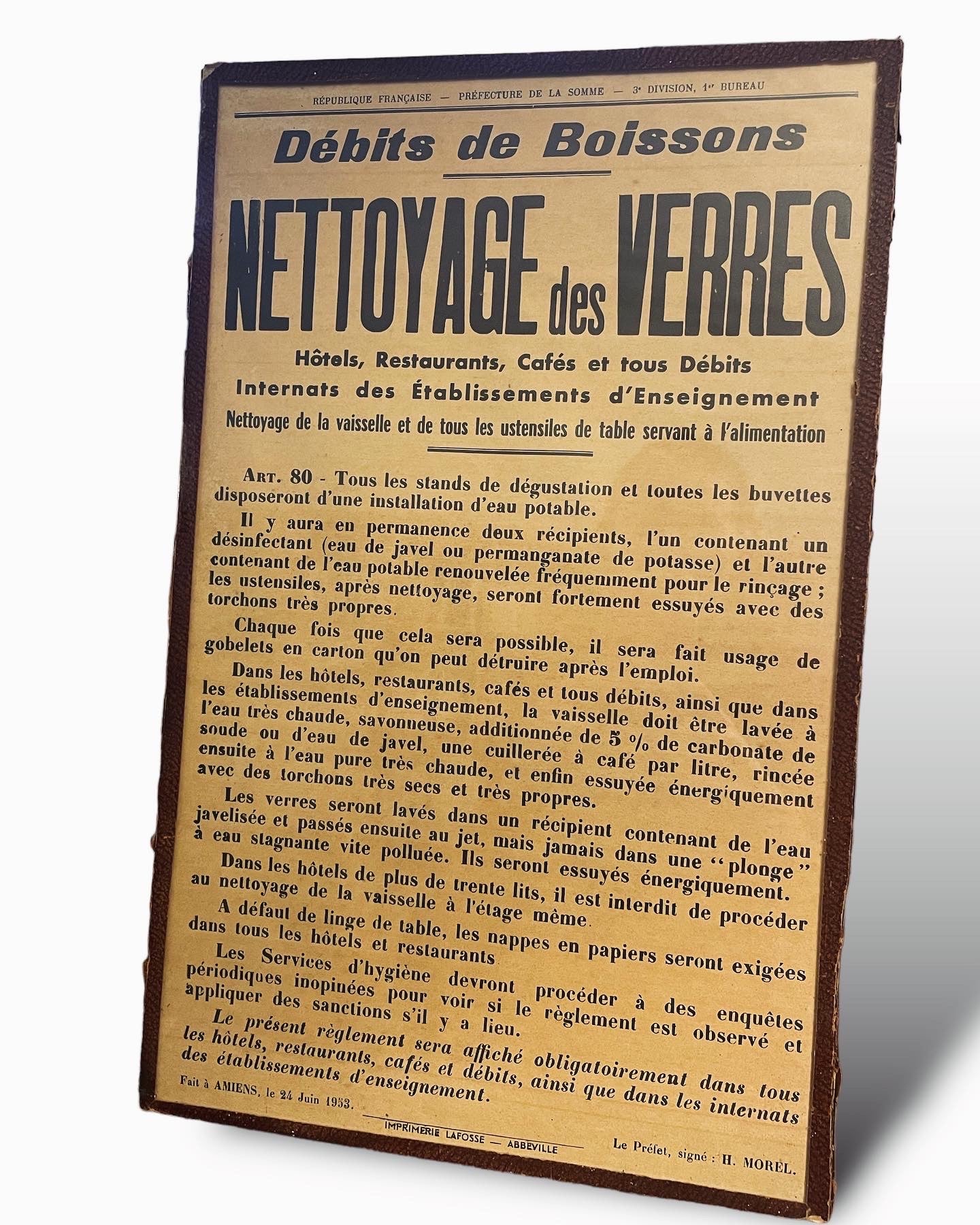 A nice #gem today: the #ancient #barpicture that was mandatory to display in France, original #50s complete with glass and frame, precisely dated 1953. Dimensions 46 x 26 cm, excellent conservation of the #ancientposter and the glass, some signs of aging on the frame. This is the treatment procedure to be reserved for dishes, glasses, table linen: the #period portrait of a hygienic situation where the prescriptions were also curious - for example, it reads, no washing glasses in stagnant water 👀👀👀 and for hotels with more than 30 beds it is forbidden to keep dishes on the same level! Very #rare and beautiful, it guarantees a super #vintage #atmosphere.