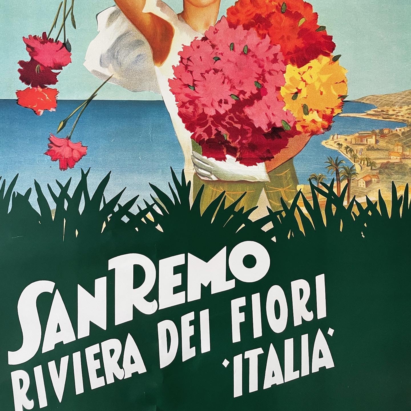 And who can forget the #rivieradeifiori ... #sanremo and that #amarcord #atmosphere! This #poster from the #80s is unmissable, it wears its 42 years very well; the only edition authorized and managed by the Tourist Office of the iconic #poster designed by Luisa #Polo in the #30s! 70 x 50 cm, a truly beautiful piece, framed it brings color everywhere - and if you are near the location of the #festival even more so 🌺