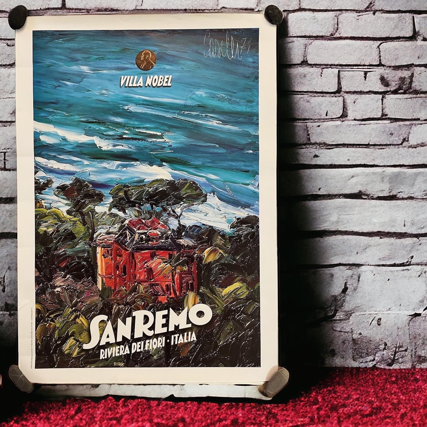 And who can forget the #rivieradeifiori ... #sanremo and that #amarcord #atmosphere! This #poster from the #90s is unmissable, it wears its 30 years of age very well; the only edition authorized and managed by the Tourist Office (year '97) of Caselli in the #70s that represents #villanobel; perhaps not everyone knows that Alfred Nobel lived in Sanremo! 70 x 50 cm, a truly beautiful piece, framed it brings color everywhere - and if you are near the location of the #festival even more so 🌺