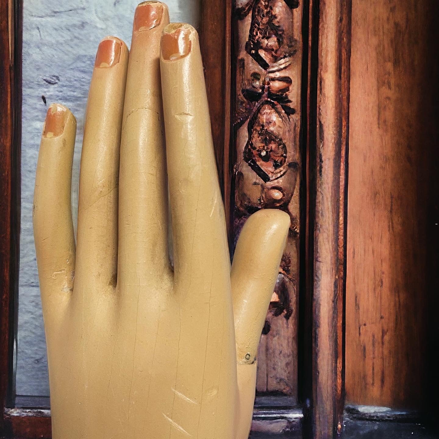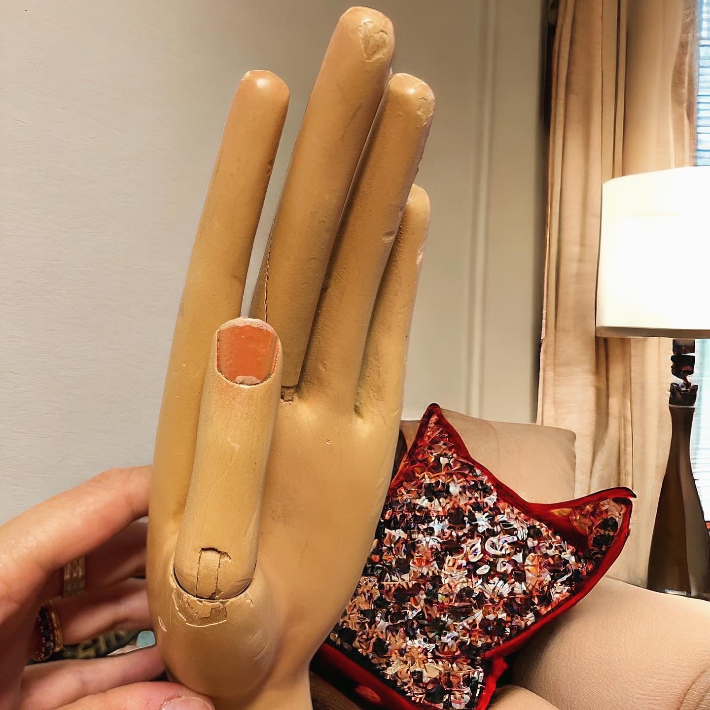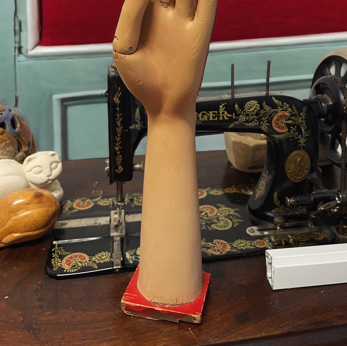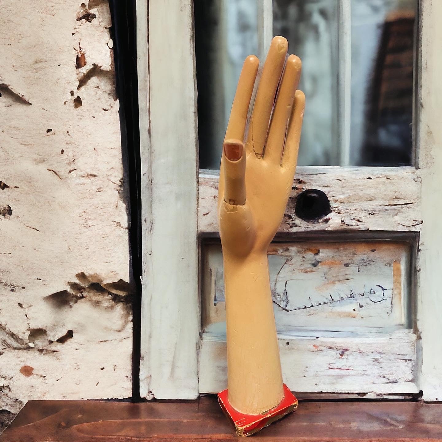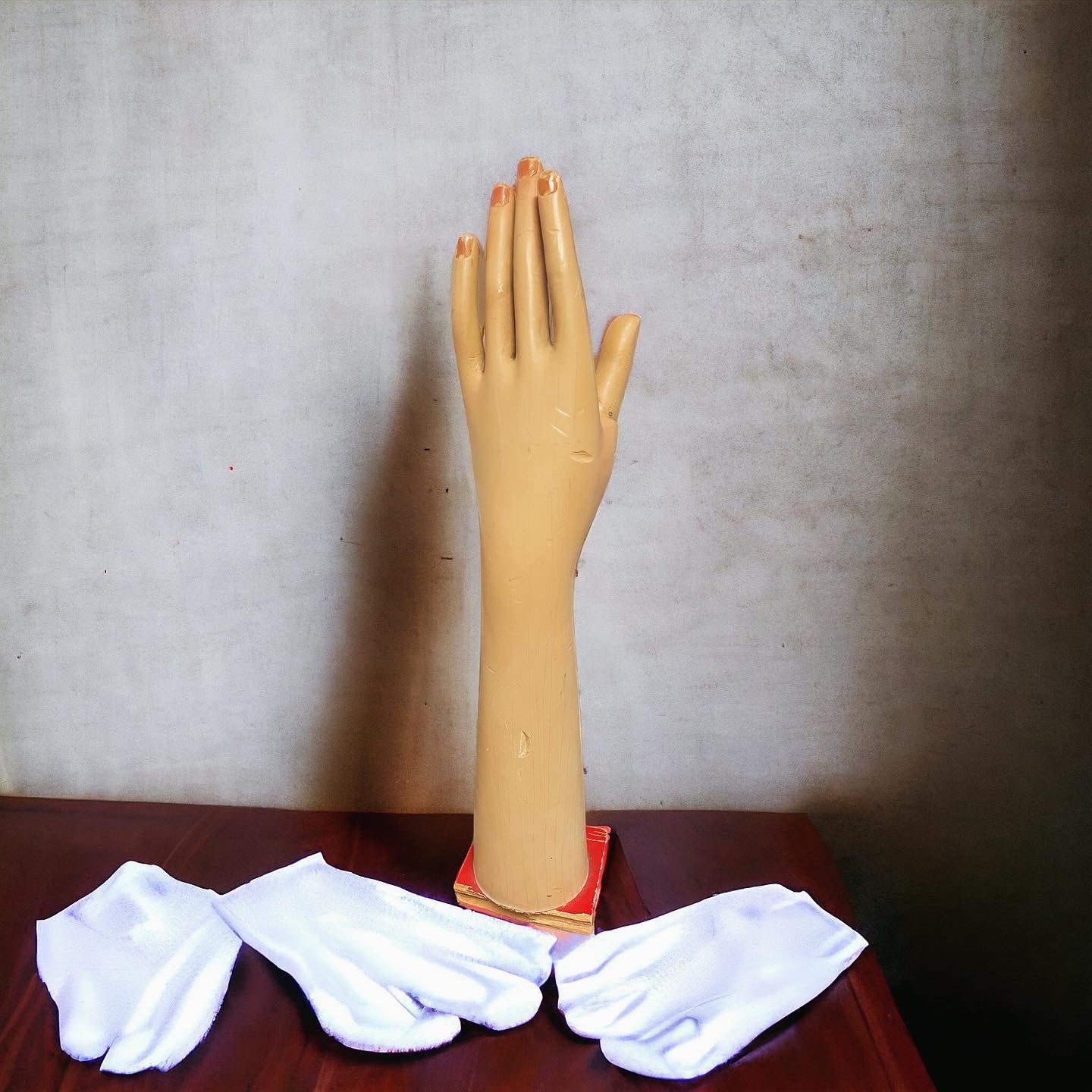 … the ancient hand wears gloves, from Florence, a very old boutique in the historic center … from the 50s, a real gem; in wood, built with a removable thumb to allow you to put on and show customers the various types of gloves. Stunning workmanship, with its signs of time, at the base and on the fingers; with so much flavor, that of the timeless elegance of the past. Height 38 cm.
