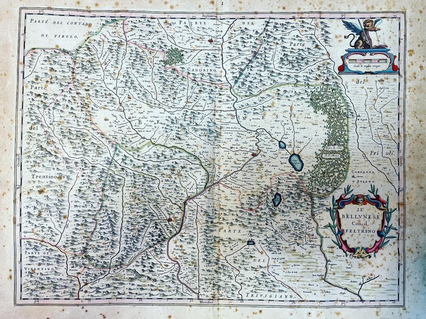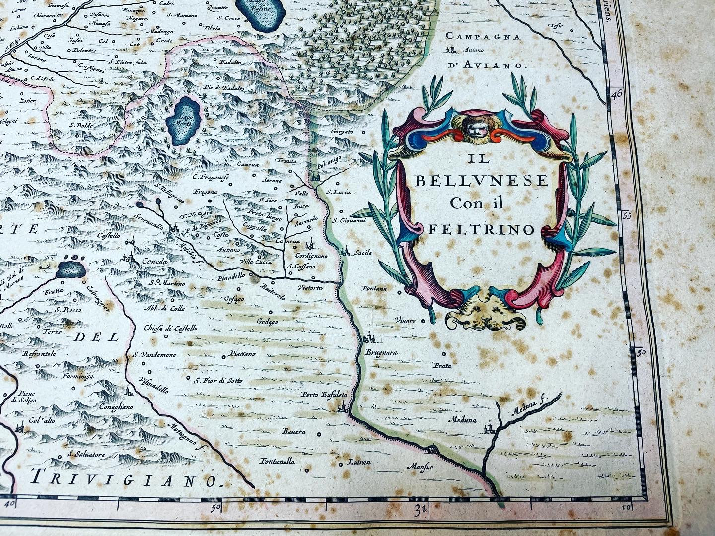 ancient #map of #blaeu from 1640 with the #bellunese and the #feltrino - Taken from the Latin edition of the Atlas Novus published in Amsterdam around 1640; edition edited by Blaeu based on Magini's maps, particularly rare compared to the later ones with text on the back in other languages.