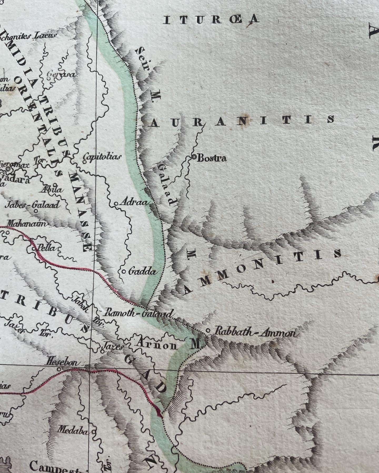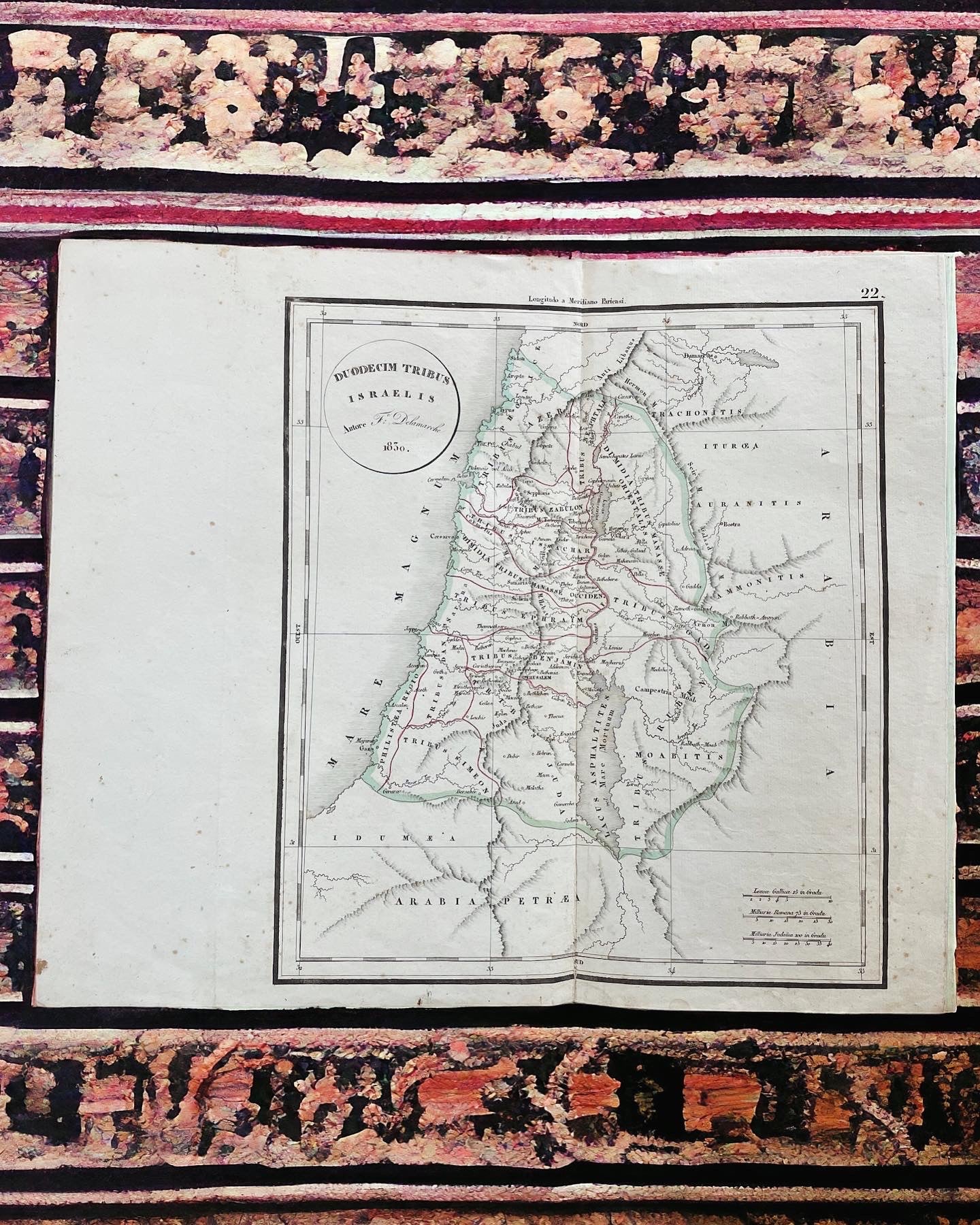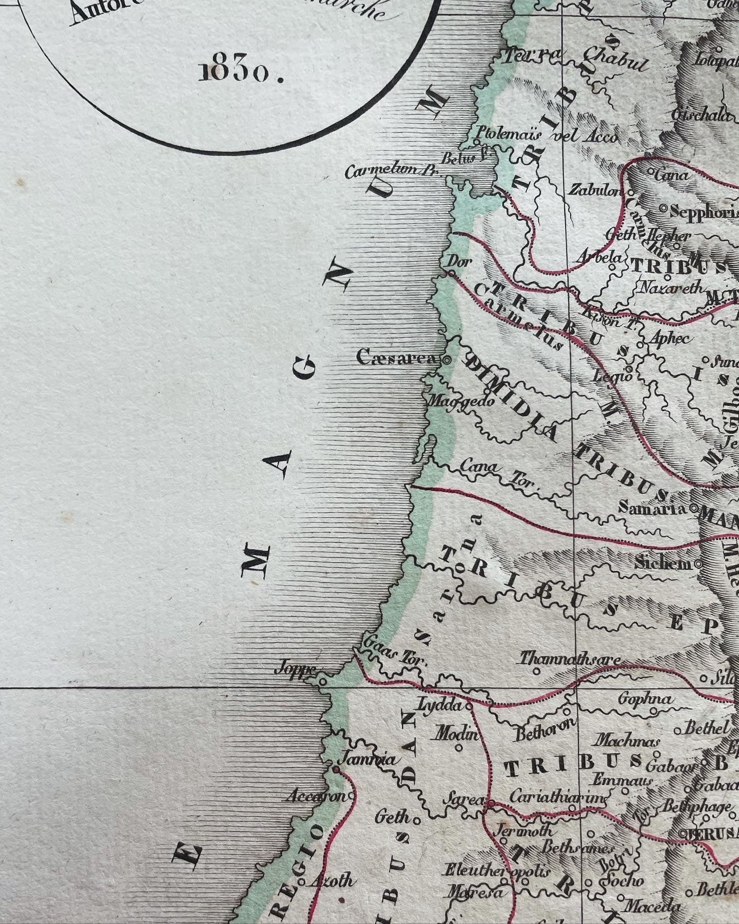 Very current (alas) this ancient map, dated 1830, a beautiful example drawn by Delamarche depicting the 12 tribes of Israel. The map is in excellent condition, ready to be framed, it wears its 200 years very well - it measures 37 centimeters by 31 centimeters.