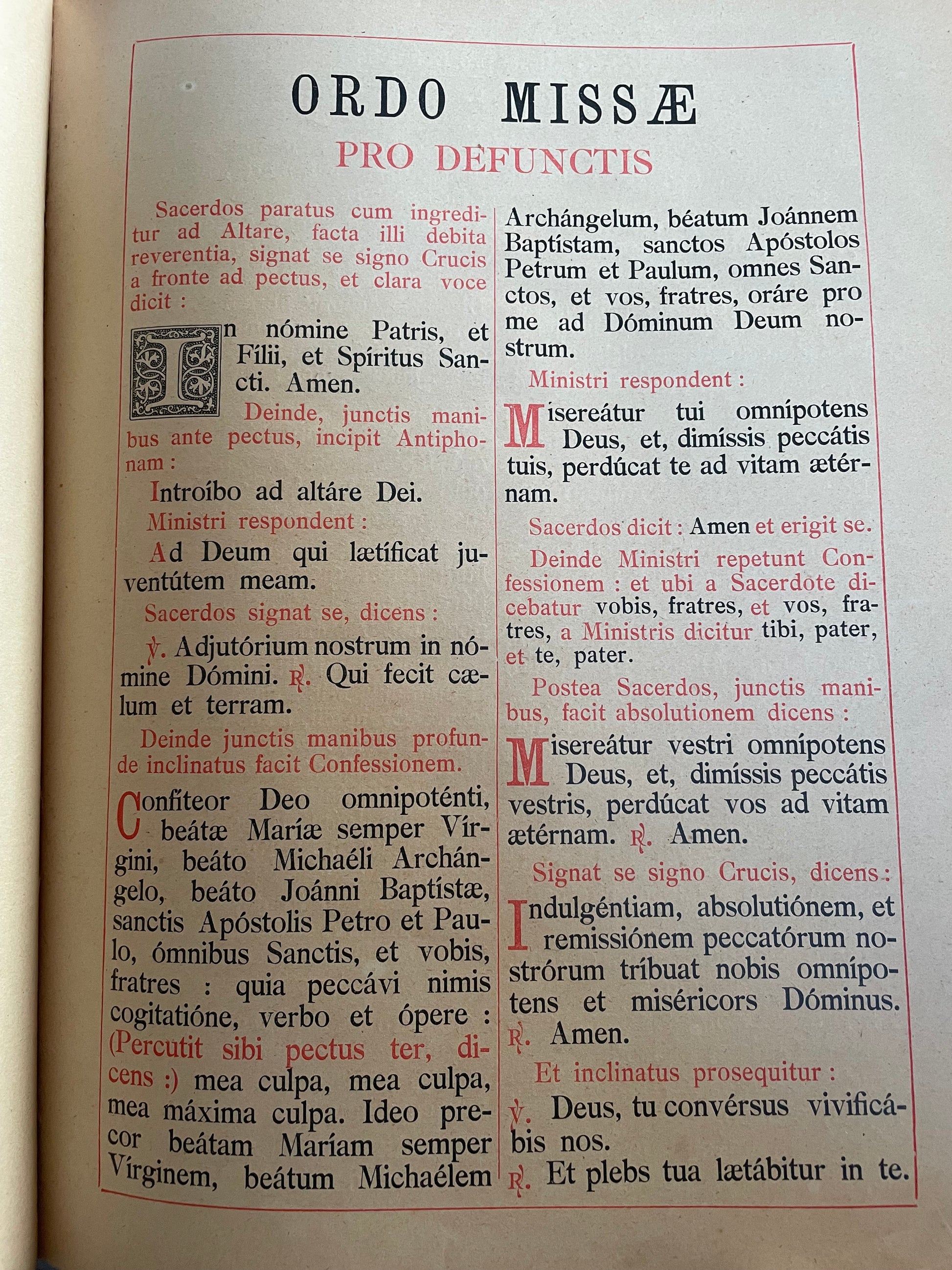 Messale defunti 1925 in latino con spartiti in notazione gregoriana quadrata