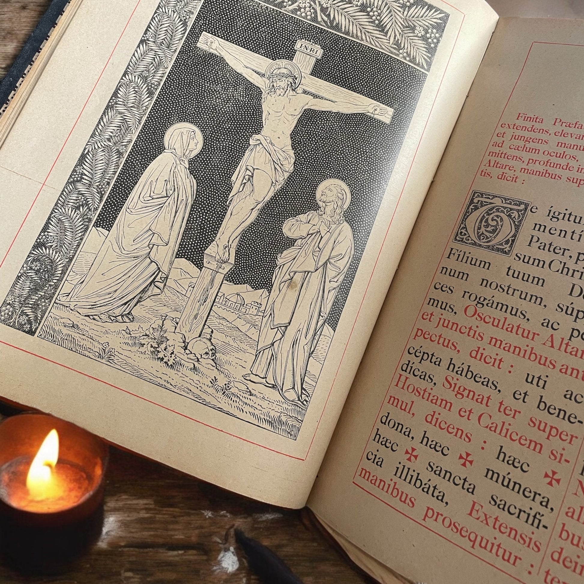 Chiudi gli occhi. Immagina di trovarti in un’antica villa abbandonata, i tuoi passi cauti e lo scricchiolio delle assi di legno. Un cassetto semiaperto, rivestito da uno strato di polvere, custodisce segreti dimenticati: candele consunte, un vecchio fiammifero e, al centro, un volume che cattura immediatamente l’attenzione: è la “Missæ Defunctorum ex Missali Romano Desumptæ”, edito nel 1925. È un libro liturgico, destinato alla celebrazione della Messa dei defunti, colmo di una sacralità solenne e antica. Ricca la simbologia: la croce con ai piedi il teschio di Adamo, le chiavi del regno… Le pagine, ingiallite dal tempo, contengono un linguaggio musicale ormai raro: spartiti in notazione gregoriana quadrata, un sistema di scrittura musicale utilizzato nel canto liturgico. Questo tipo di notazione è uno specchio del passato. Tutto in latino: sfogli le pagine… Tra i testi contenuti nel libro spicca il maestoso “Dies Irae”, inno medievale che narra del giorno del giudizio, quando le anime saranno chiamate a rispondere delle loro vite. Le sue parole evocano immagini potenti: il suono di una tromba che squarcia il silenzio eterno, risvegliando i morti dai loro sepolcri; il fuoco purificatore e l’implorazione della misericordia divina. È una sequenza che intreccia timore e speranza, riverberando la fragilità umana di fronte all’inevitabile e al mistero dell’aldilà. Un libro che avrà accompagnato quali defunti? Ti avvolge improvvisa un’aura di fascino e mistero. Un oggetto potente, che invita a riflettere sul legame eterno tra i vivi e i morti, tra il terreno e il divino.