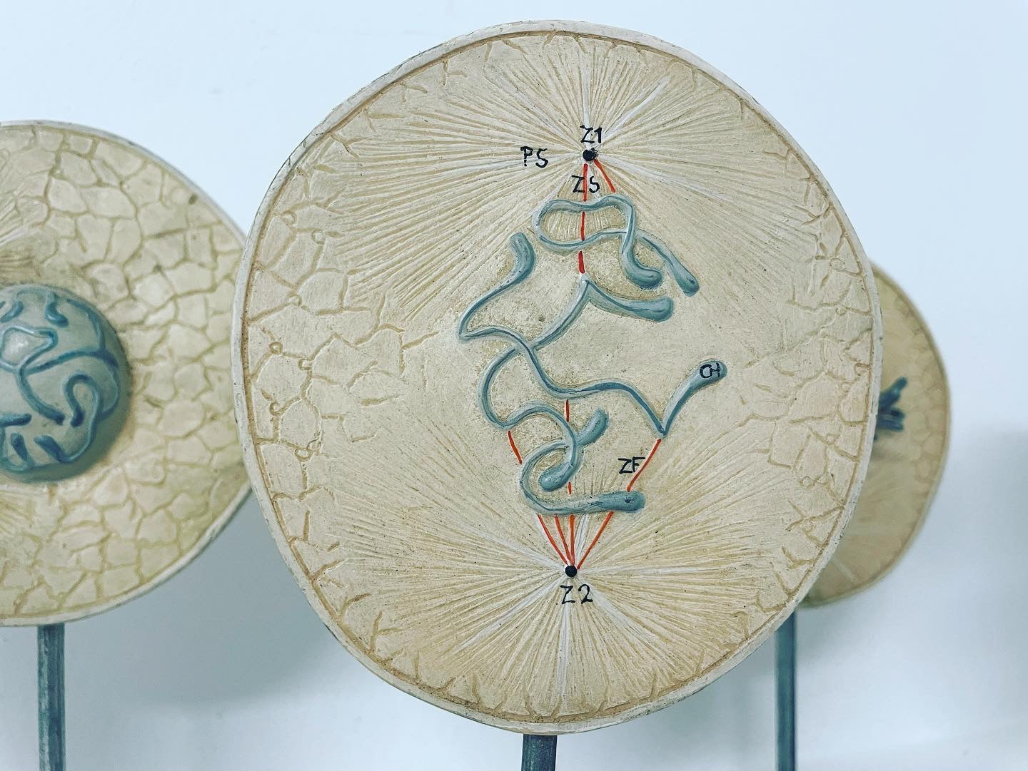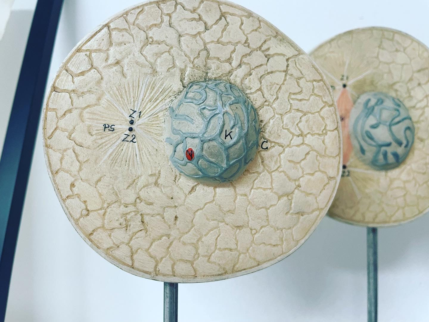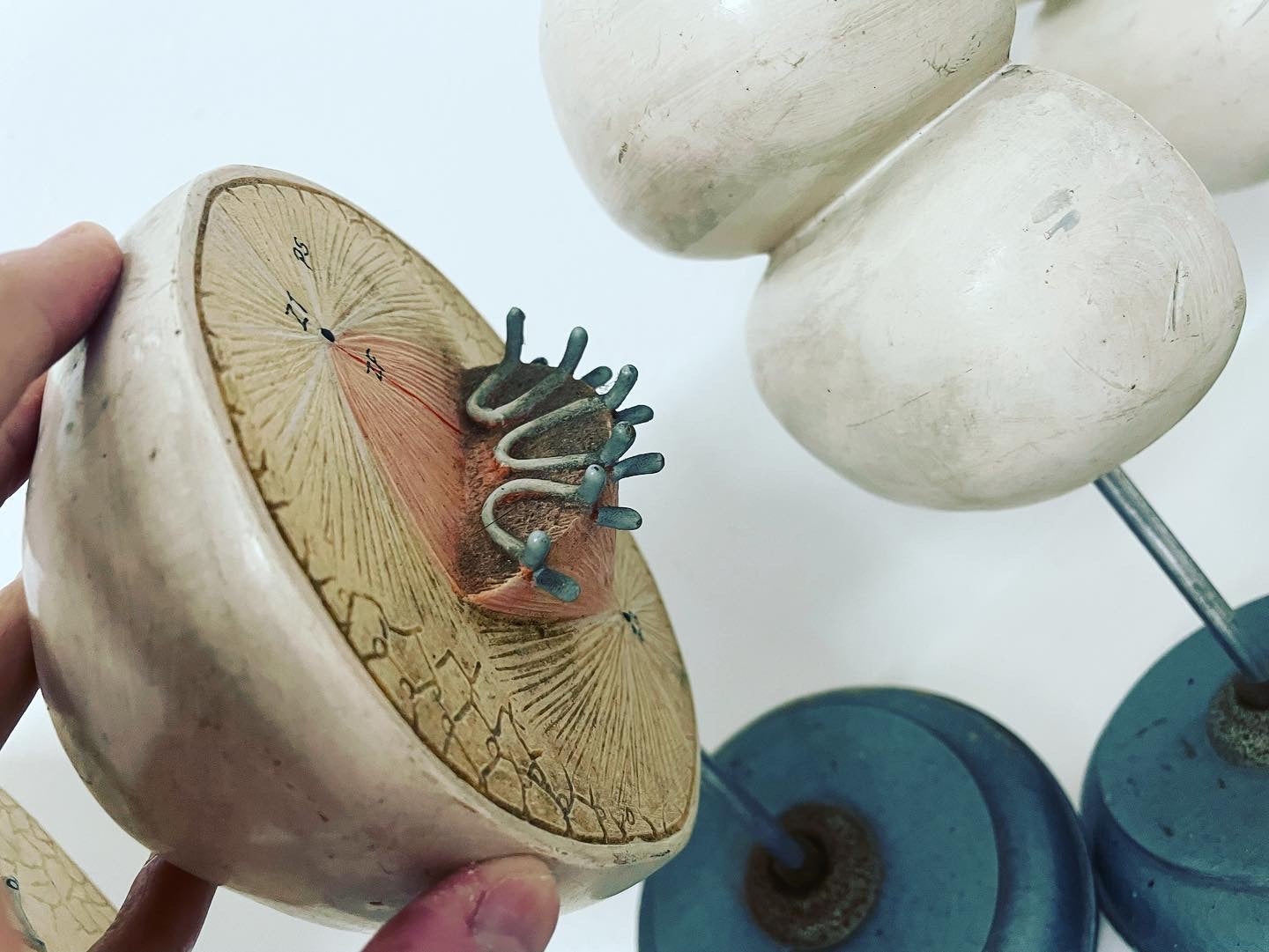 A spectacular and super #cabinetdescuriosites good morning this morning with this #collection of #atomicmodels from the #40s ... the #celldivision reproduced in its phases in 9 representations of which we have 7, numbered, 25 cm high and made with great attention to detail. They belonged to an #ancientuniversity #medicalcollection. Do you see the wooden stands in the amphitheater, and the young university students listening...? It almost seems like you can hear the professor's voice. These are #uniqueobjects and purchases from museum or exhibition contexts are welcome.