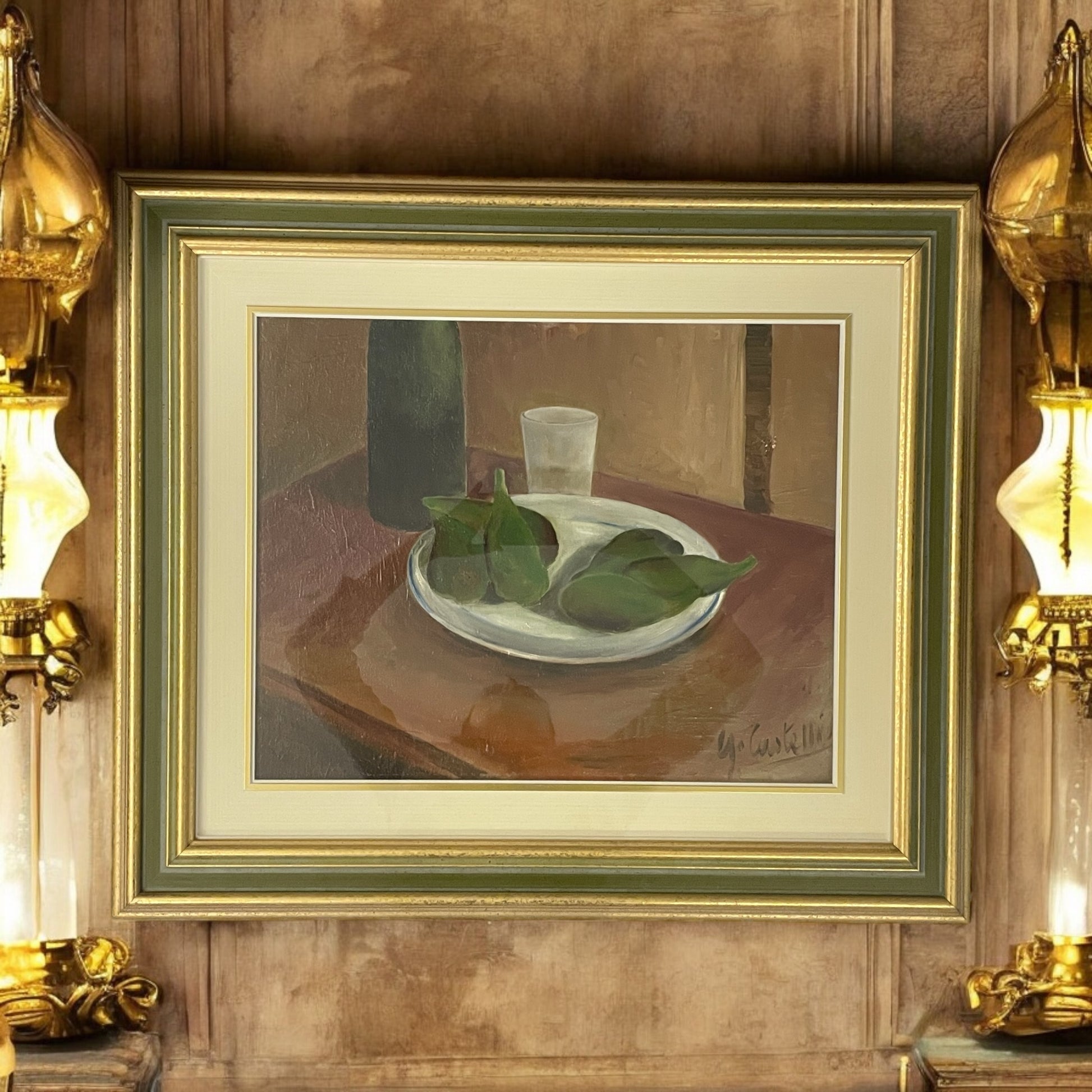 Natura morta, olio su tela anni 50, firmato G. Castelli in cornice di pregio