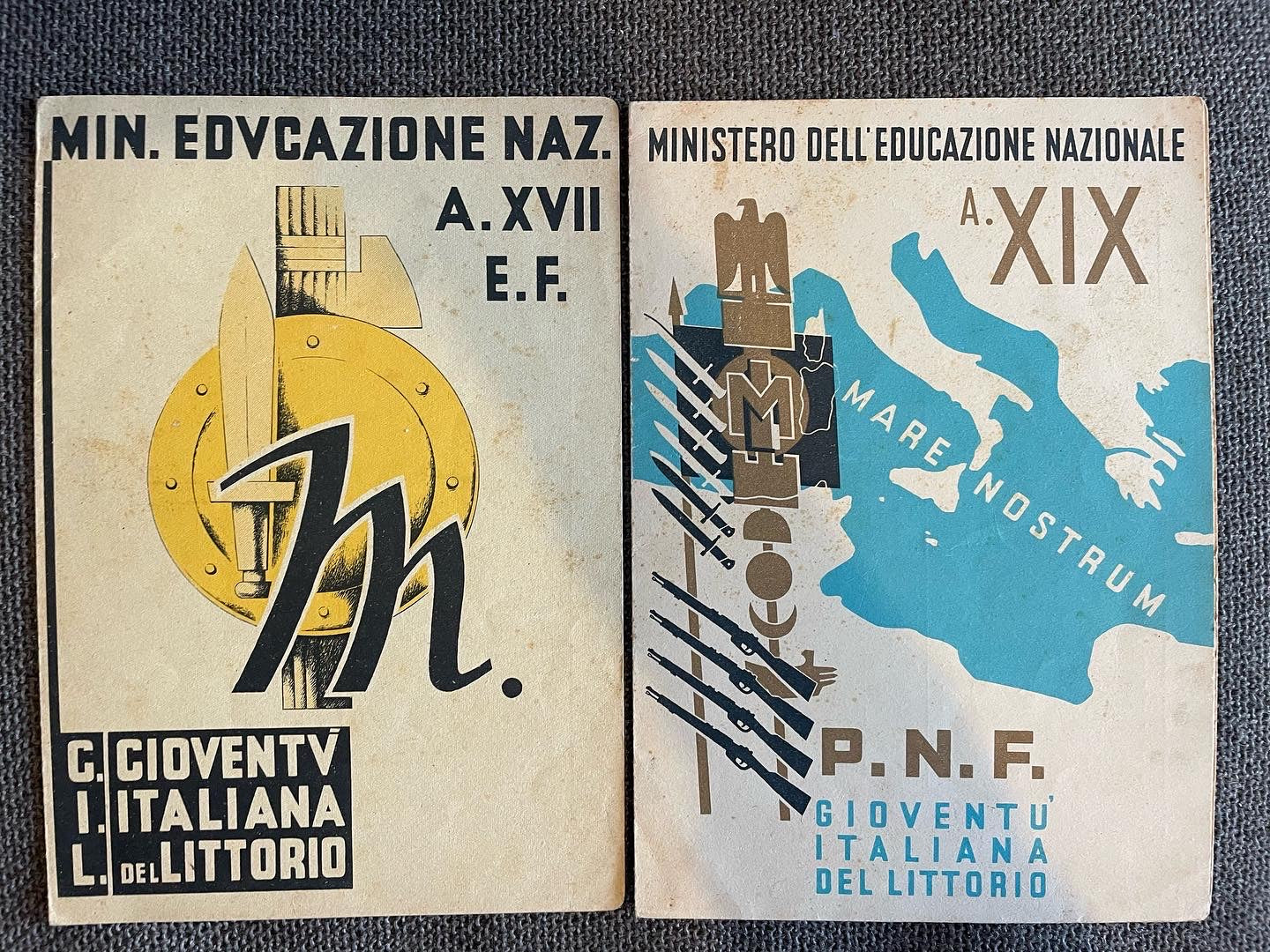 Pair of #ancient school report cards from the #fascist #twentyyears, precisely from #1929, from a school in #sanbonifacio; both on the cover with the #fascisteagle #fasciolittorio and #gladio of the #italiangioventùdellittorio