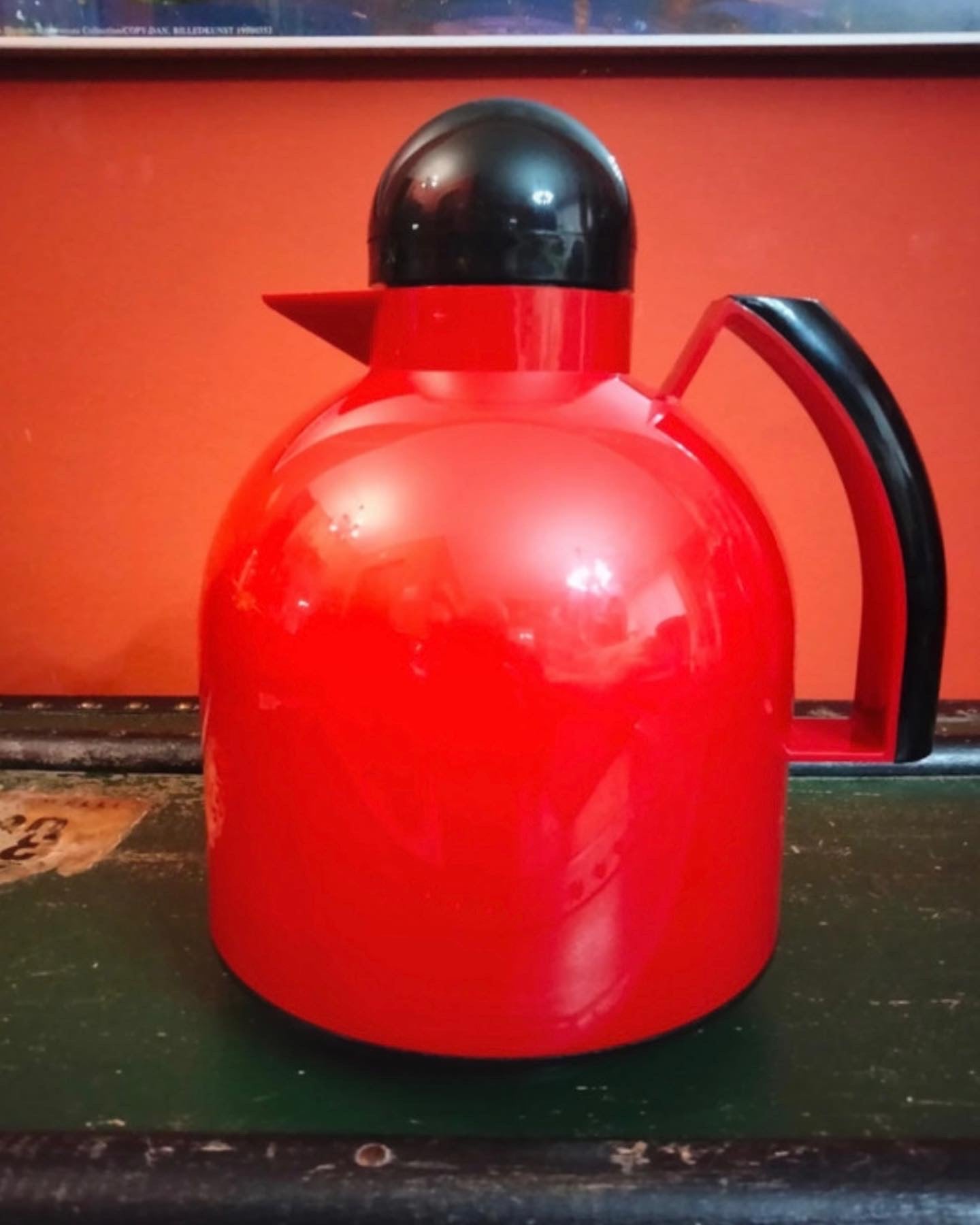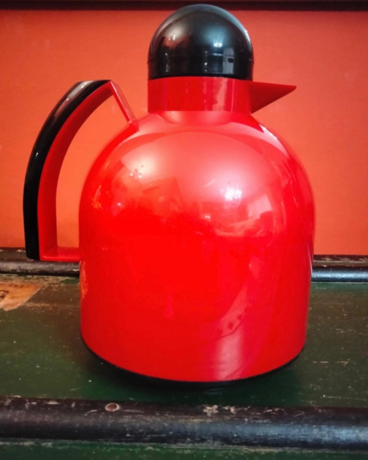 #guzzini has always been synonymous with top-quality #italiandesign, especially in the past, and this #thermos #carafe had become a real #musthave of #modernariato ... from the #papillon series, in red and black, straight from the #70s. If you serve breakfast like this ... you will be unforgettably cool.