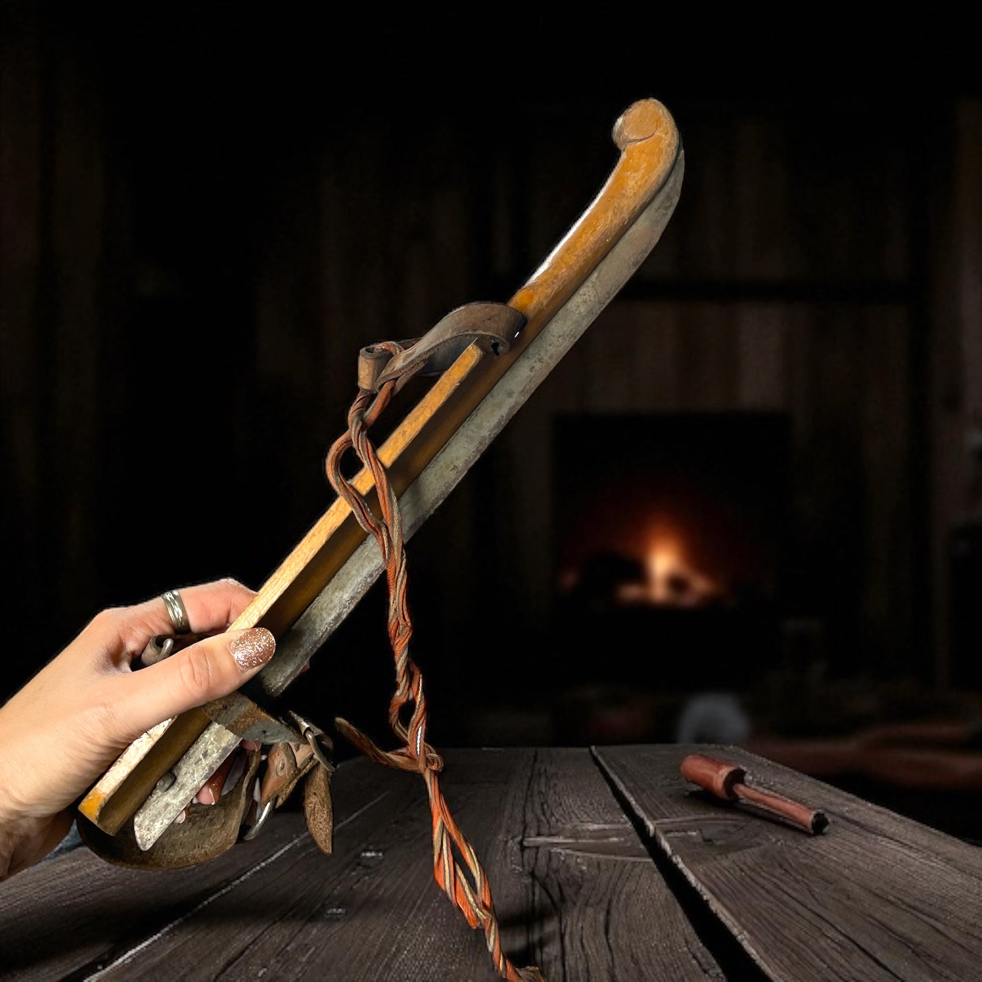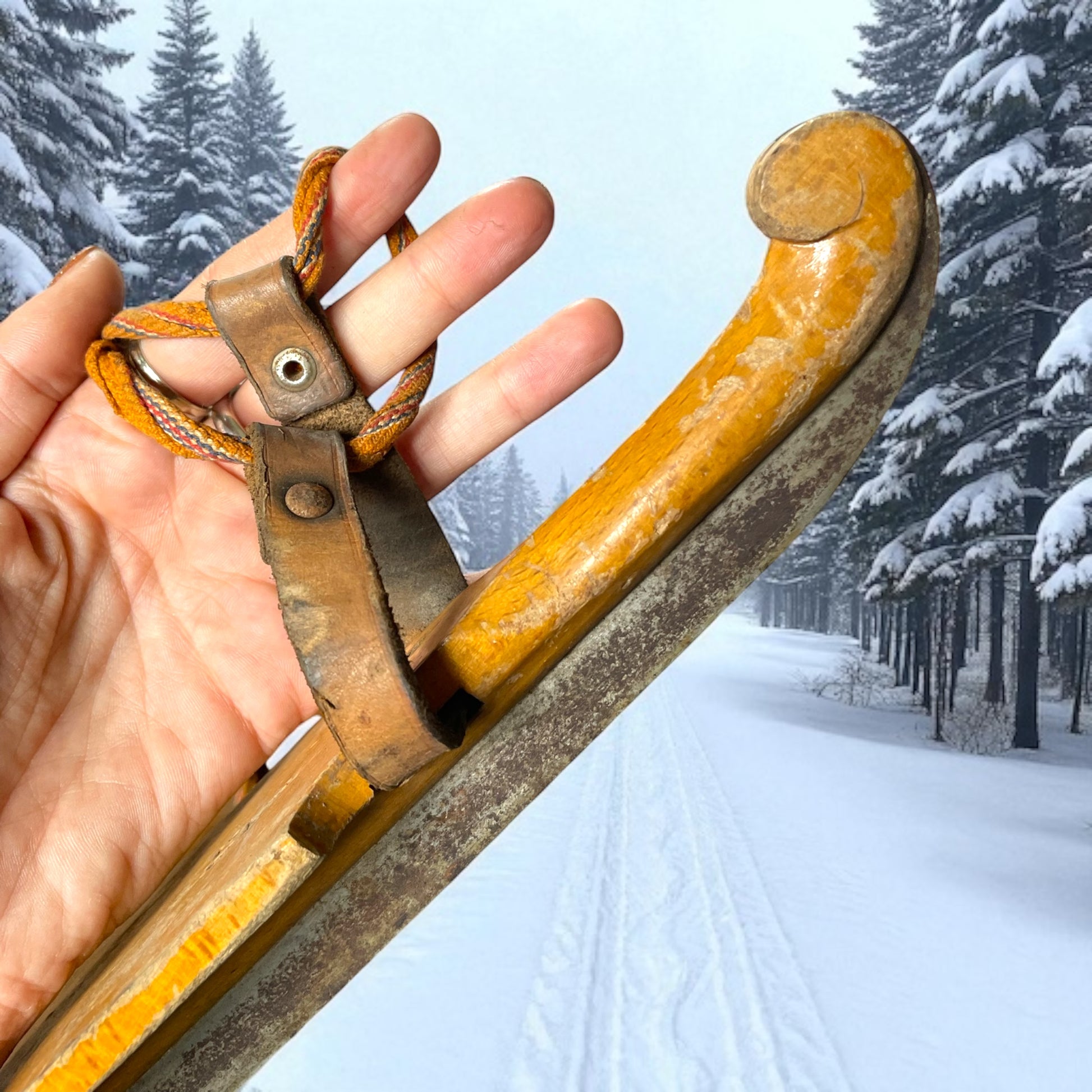 Arrivano dall’Olanda e dal cuore dell’inverno di un secolo fa. Questi antichi pattini da ghiaccio in legno e ferro, con legacci in cuoio ancora intatti, raccontano di canali gelati, mani arrossate e risate d’infanzia. Venivano fissati direttamente agli scarponi con le cinghie, pronti a trasformare ogni superficie ghiacciata in un piccolo campo di libertà. Sono oggetti che portano con sé il fascino di un tempo in cui il gioco, il trasporto e la sfida con l’equilibrio si fondevano in un unico gesto fluido. Oggi, questi pattini non servono più a scivolare, ma a fermare lo sguardo: appesi alla parete di una baita, appoggiati accanto a un camino o incorniciati in una stanza dal sapore nordico, diventano dettagli di charme, capaci di evocare atmosfere d’altri tempi con autenticità e poesia.