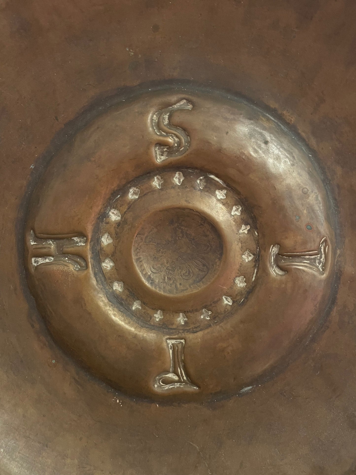 ancient #almoner plate diameter cm 39 with acronym and floral workmanship. #ancient sacred art.