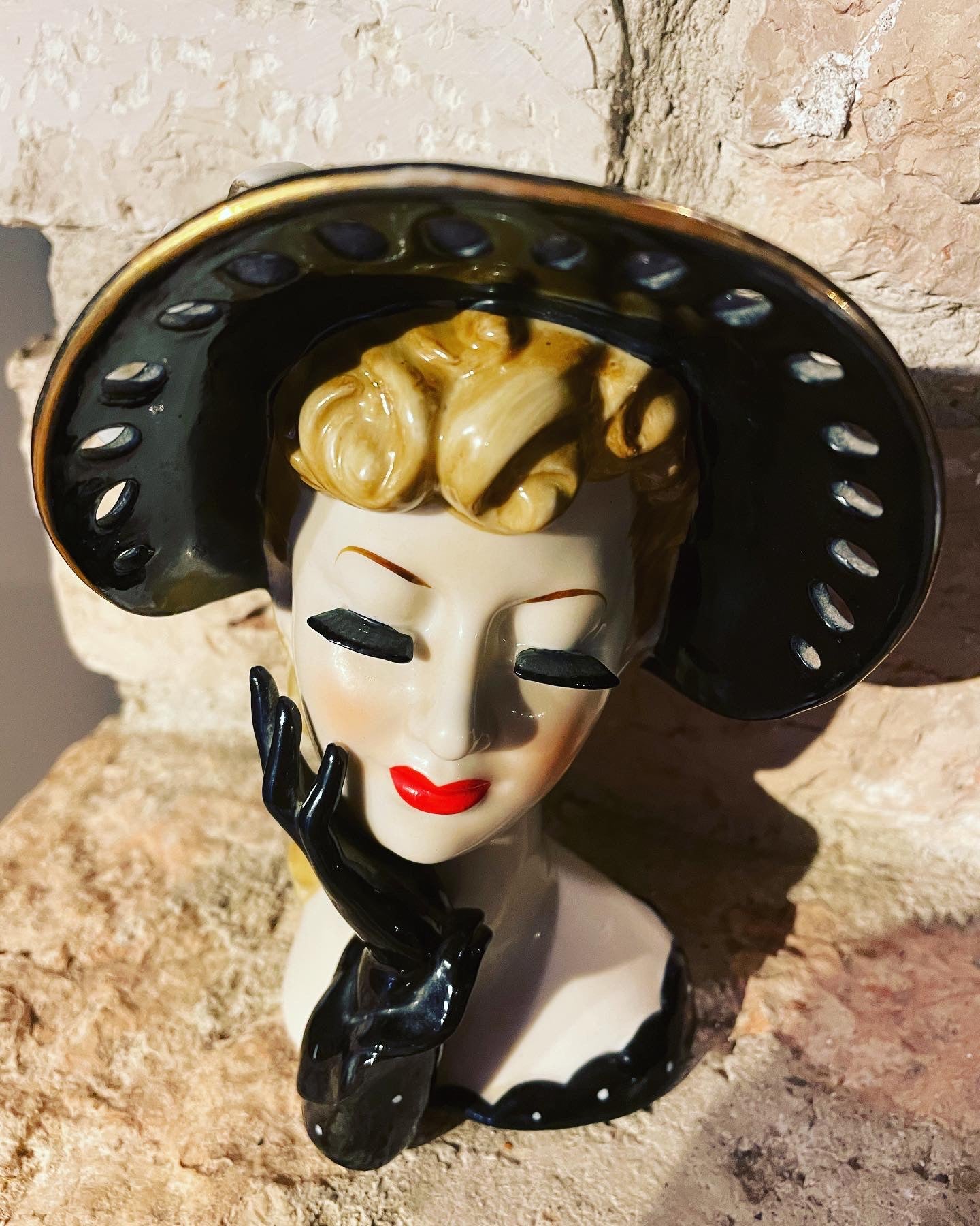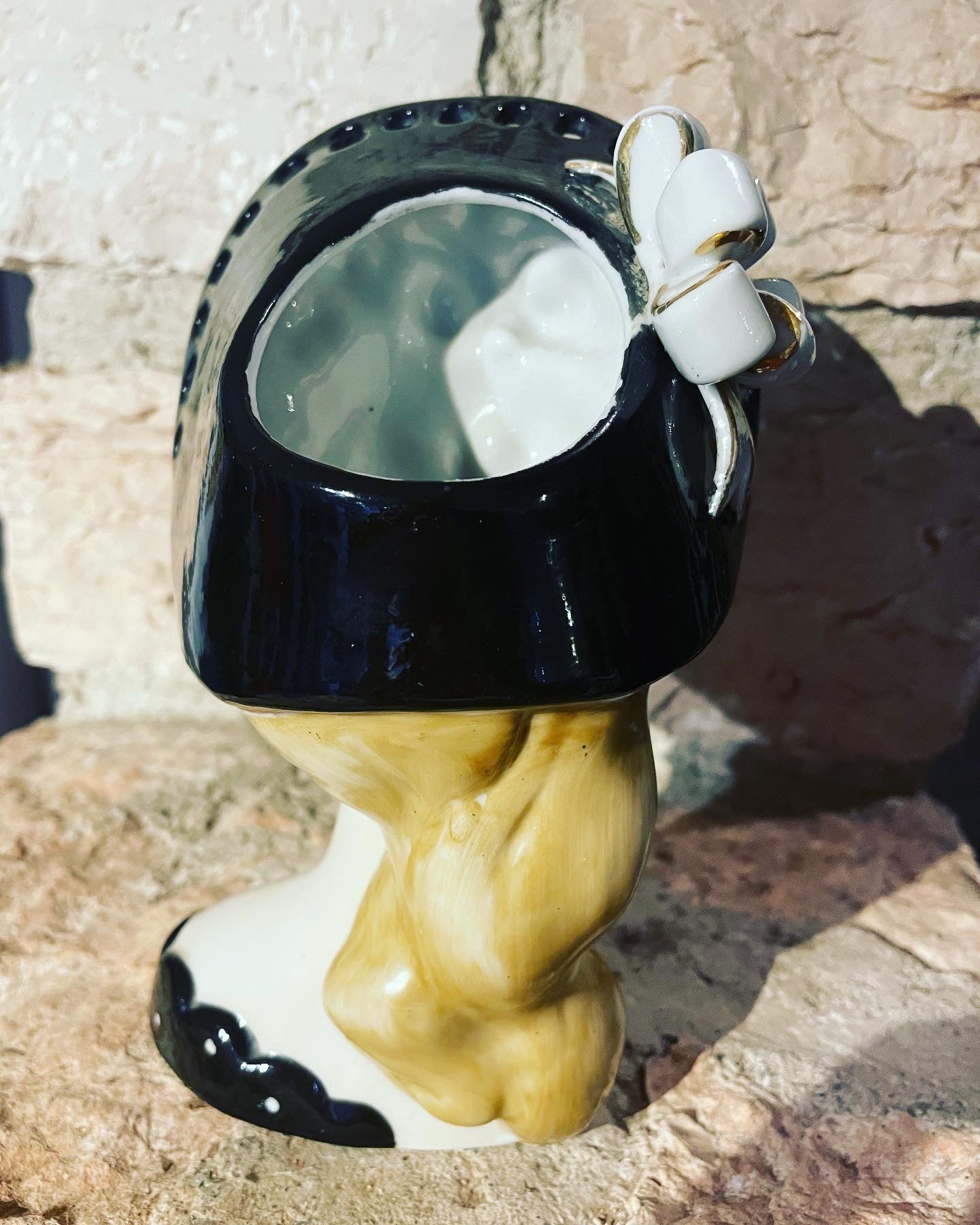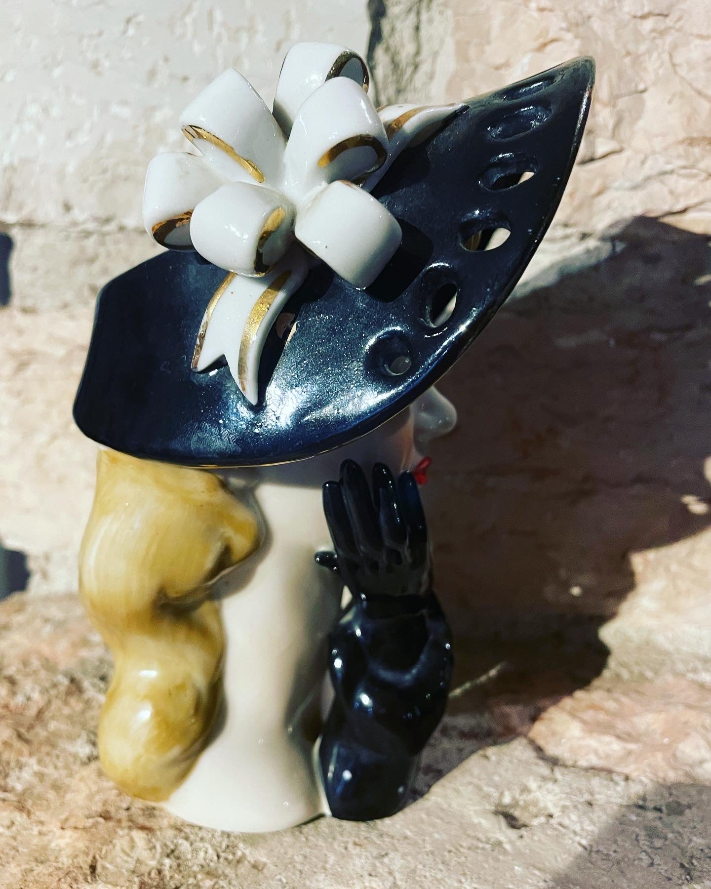 The #ancient #Japanese #napco #ceramics are very well known and appreciated; this #woman'shead comes directly from the #50s and is part of the finely worked #whiteporcelain line with openwork. The hat is hollow so it can function as a #vase. It is difficult for them to reach us after 70 years in such excellent conditions. The #kitchs
