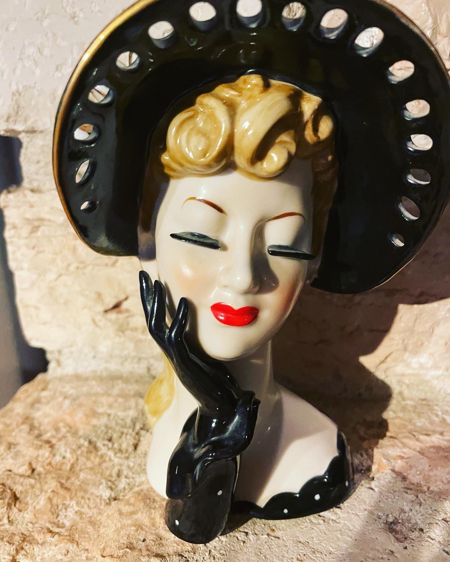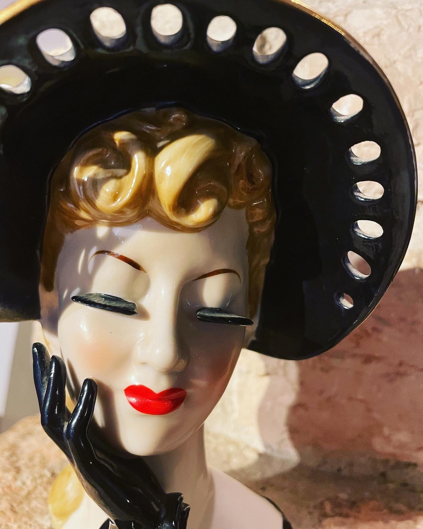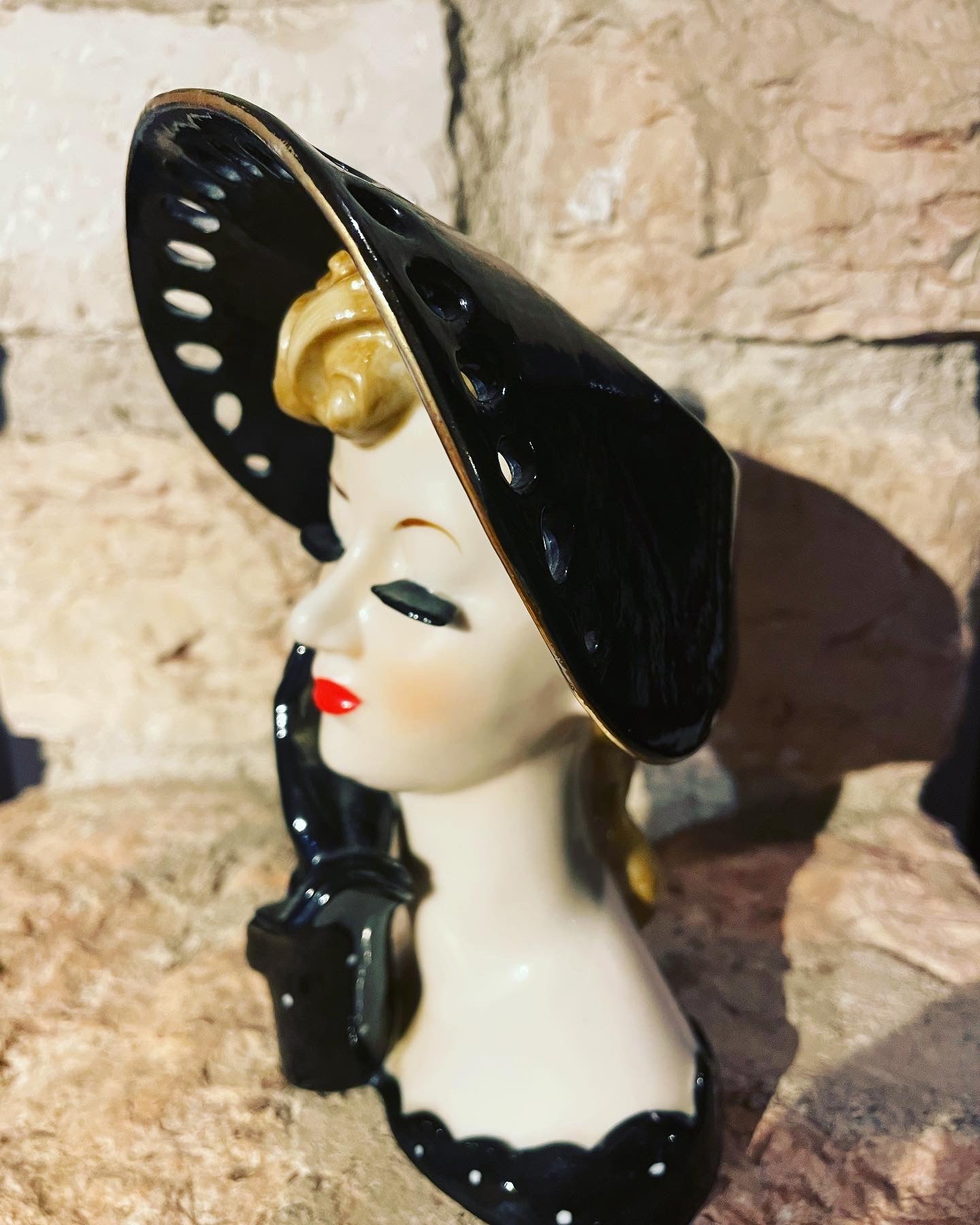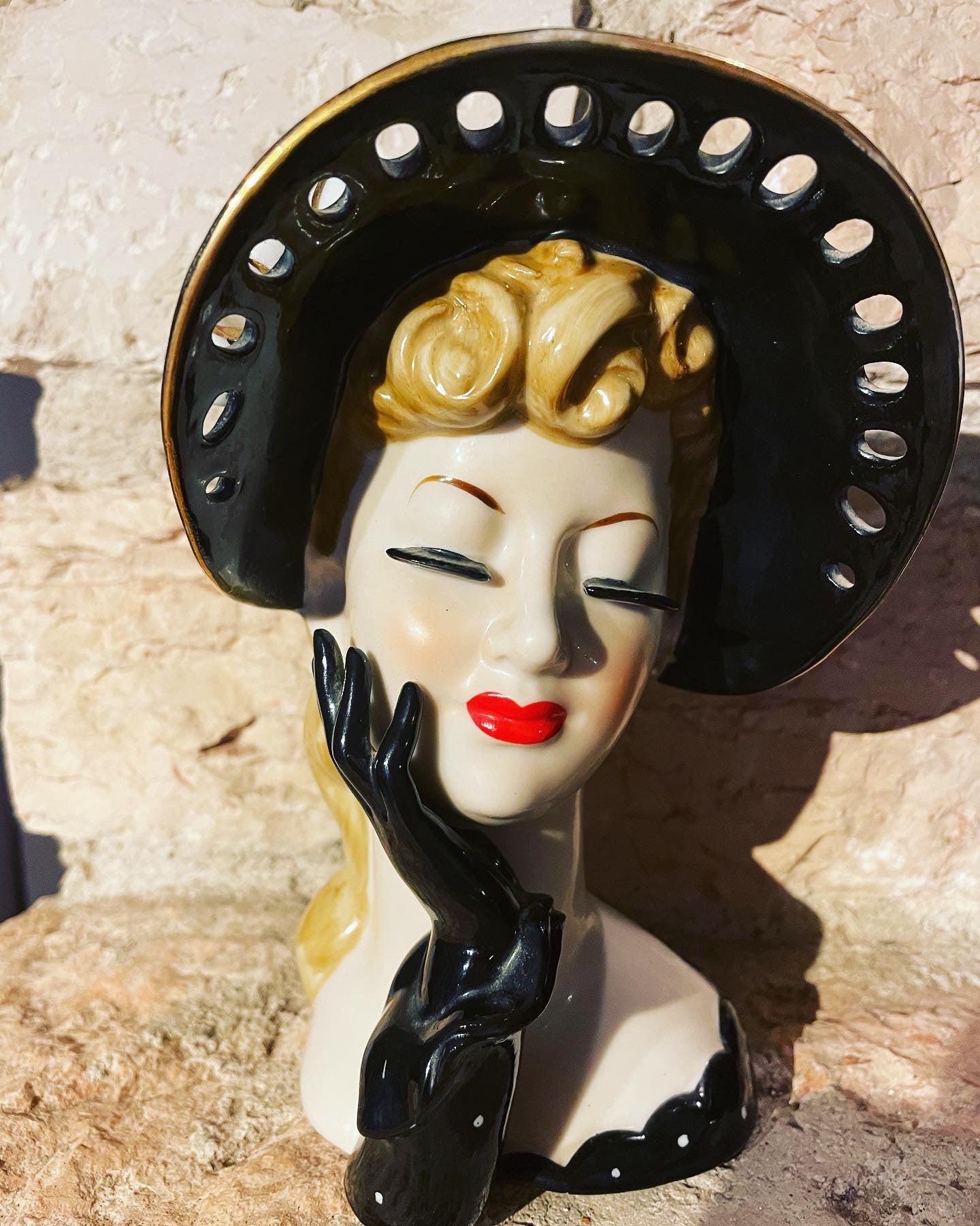 The #ancient #Japanese #napco #ceramics are very well known and appreciated; this #woman'shead comes directly from the #50s and is part of the finely worked #whiteporcelain line with openwork. The hat is hollow so it can function as a #vase. It is difficult for them to reach us after 70 years in such excellent conditions. The #kitchs