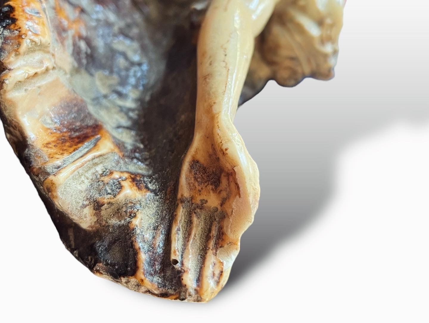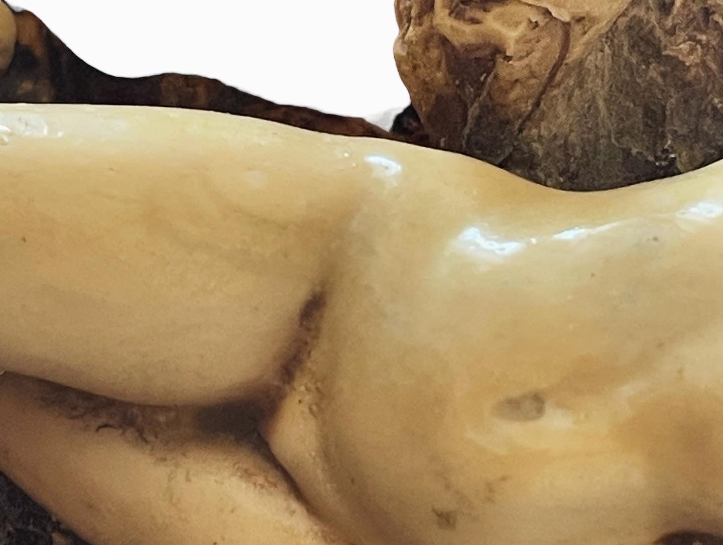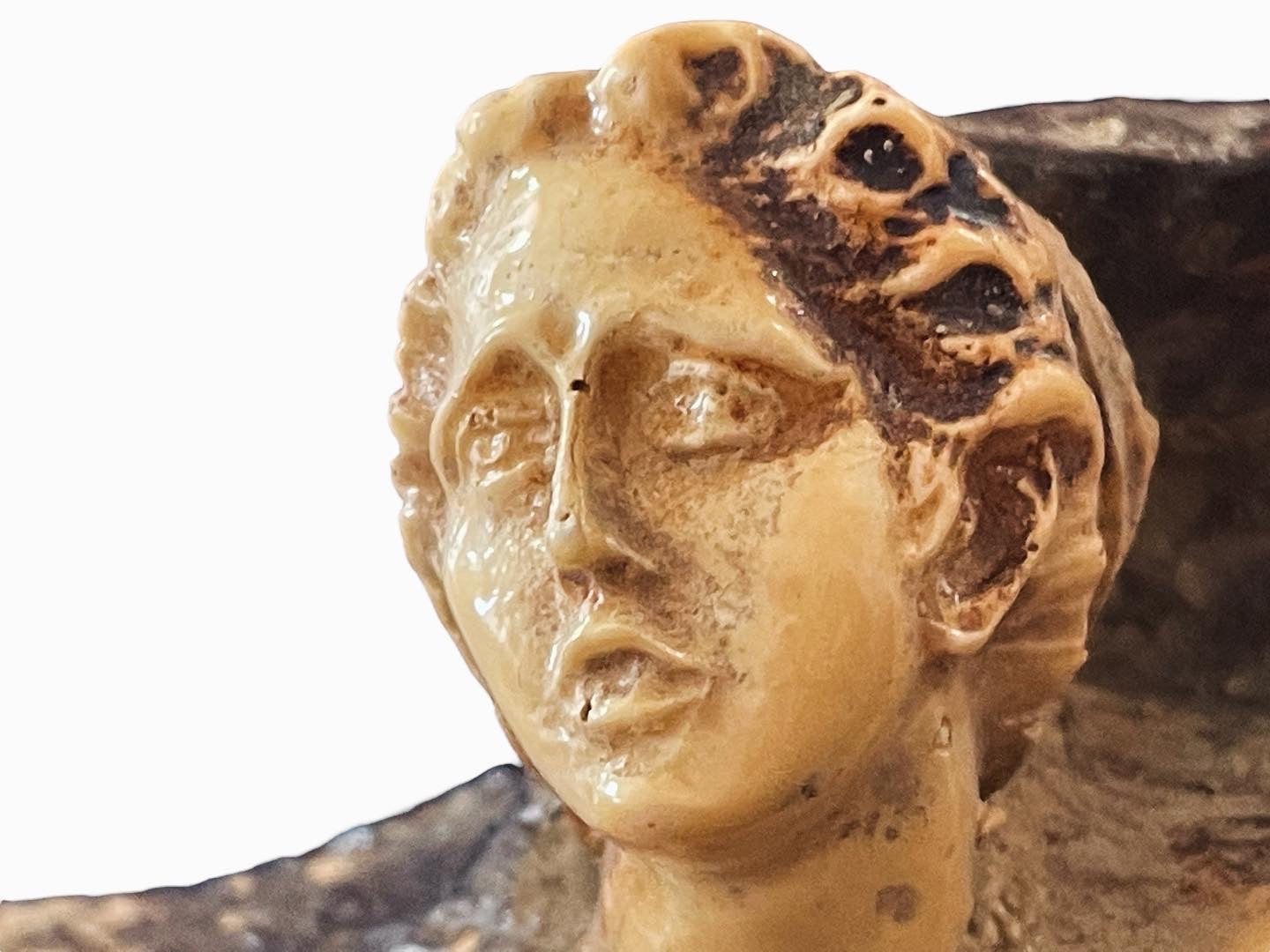Spectacular large ashtray carved in high relief, resin and marble dust, in the shape of a woman's figure, 33 cm long, mid century, very well preserved, only sign of time (last photo) light chipping on a finger of the left hand. Beautiful plastic rendering of the curves and muscles of the body. Weight approx. 1.5 kg, beautiful display piece.