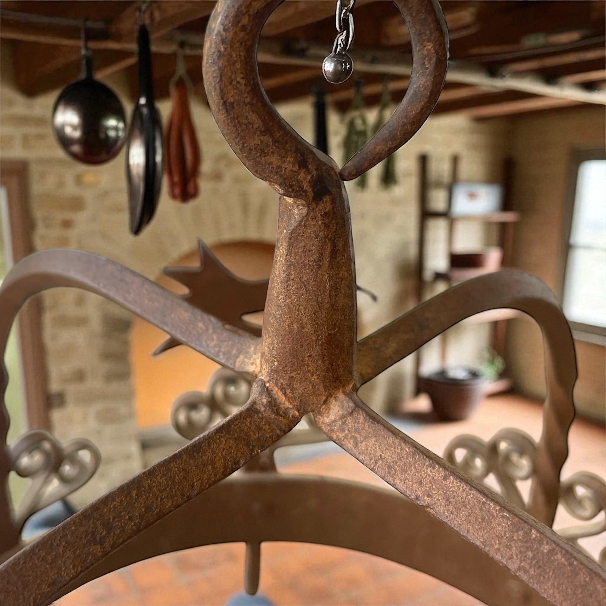 Potkroon olandese, corona per pentole in ferro battuto a ganci, metà ‘900