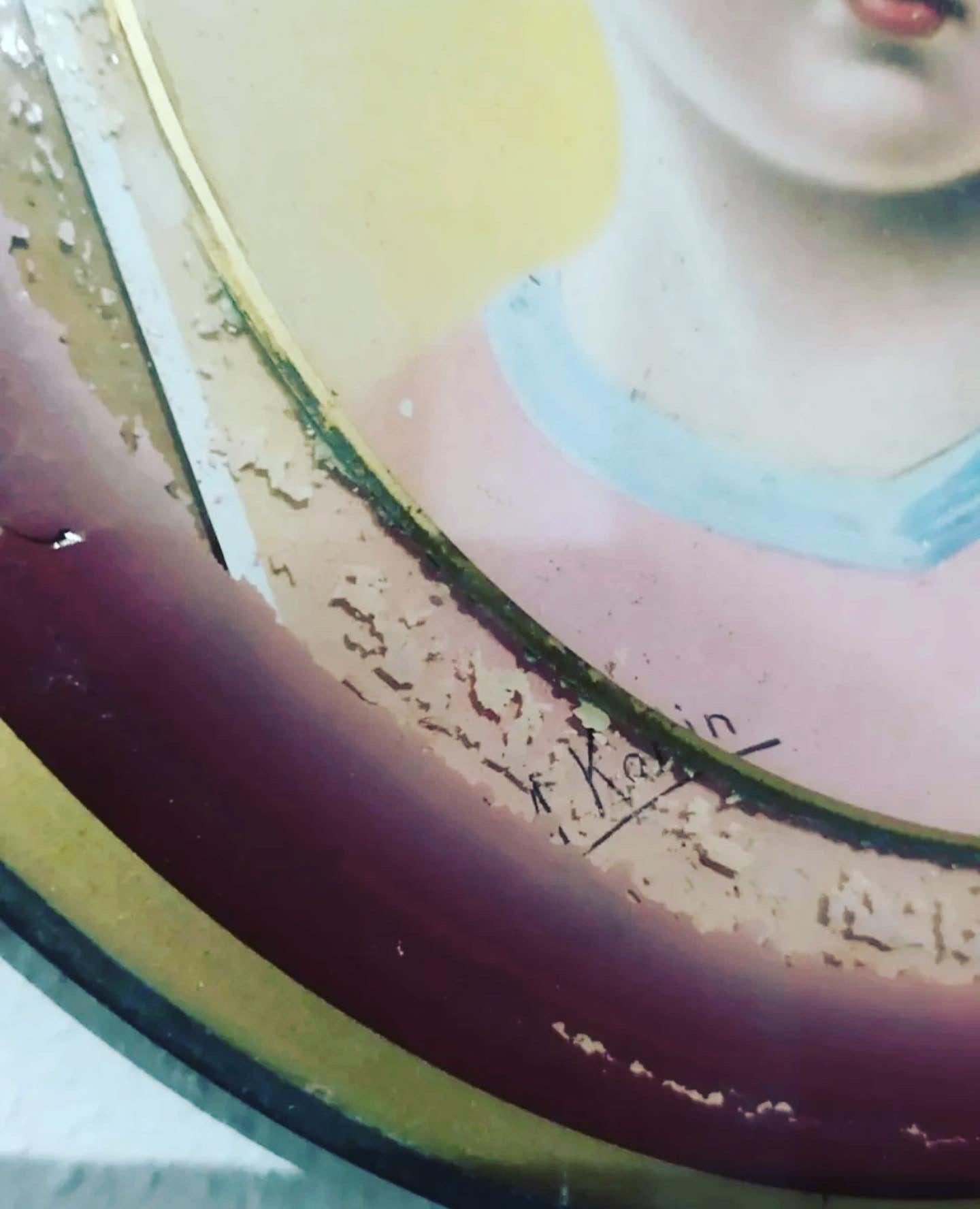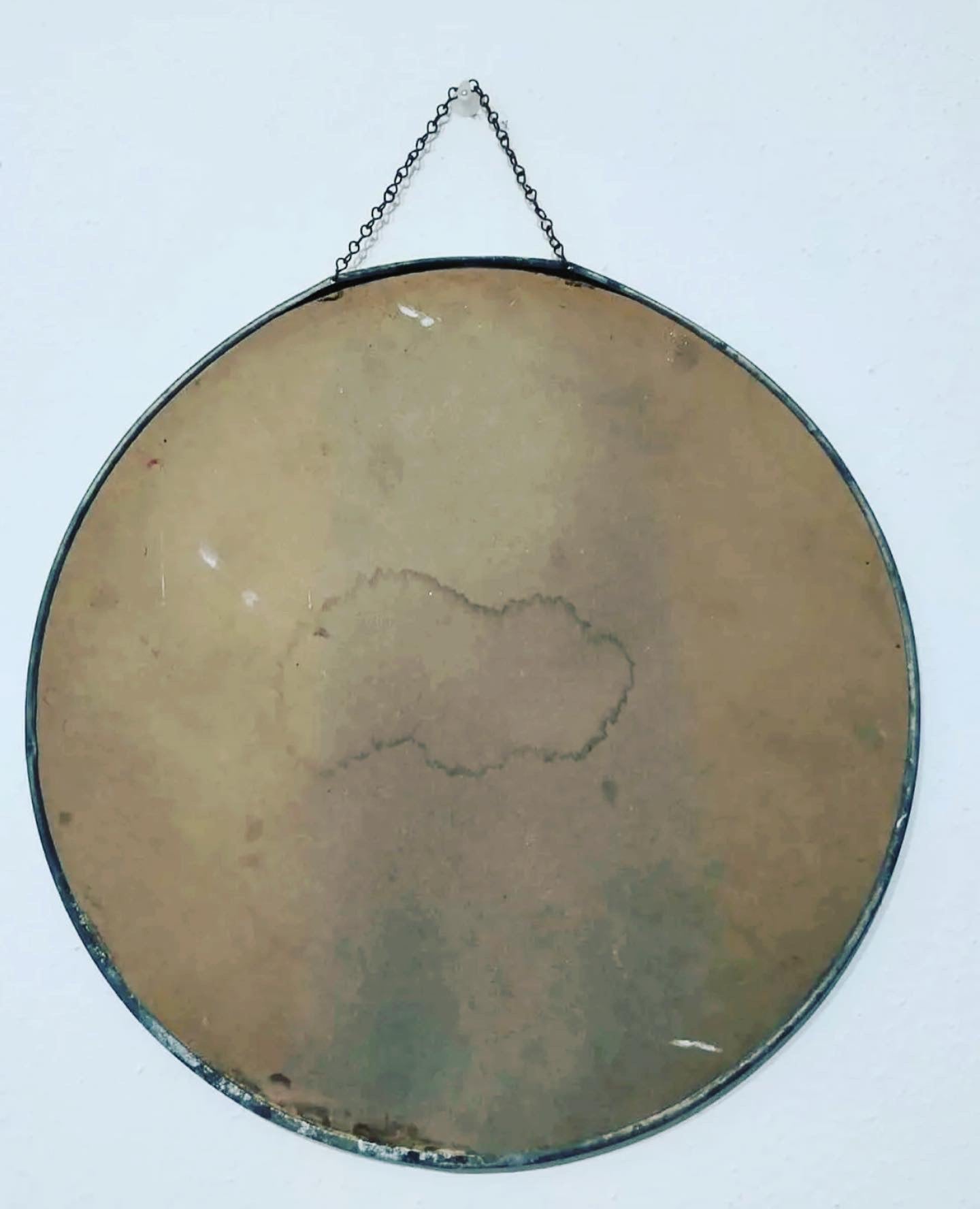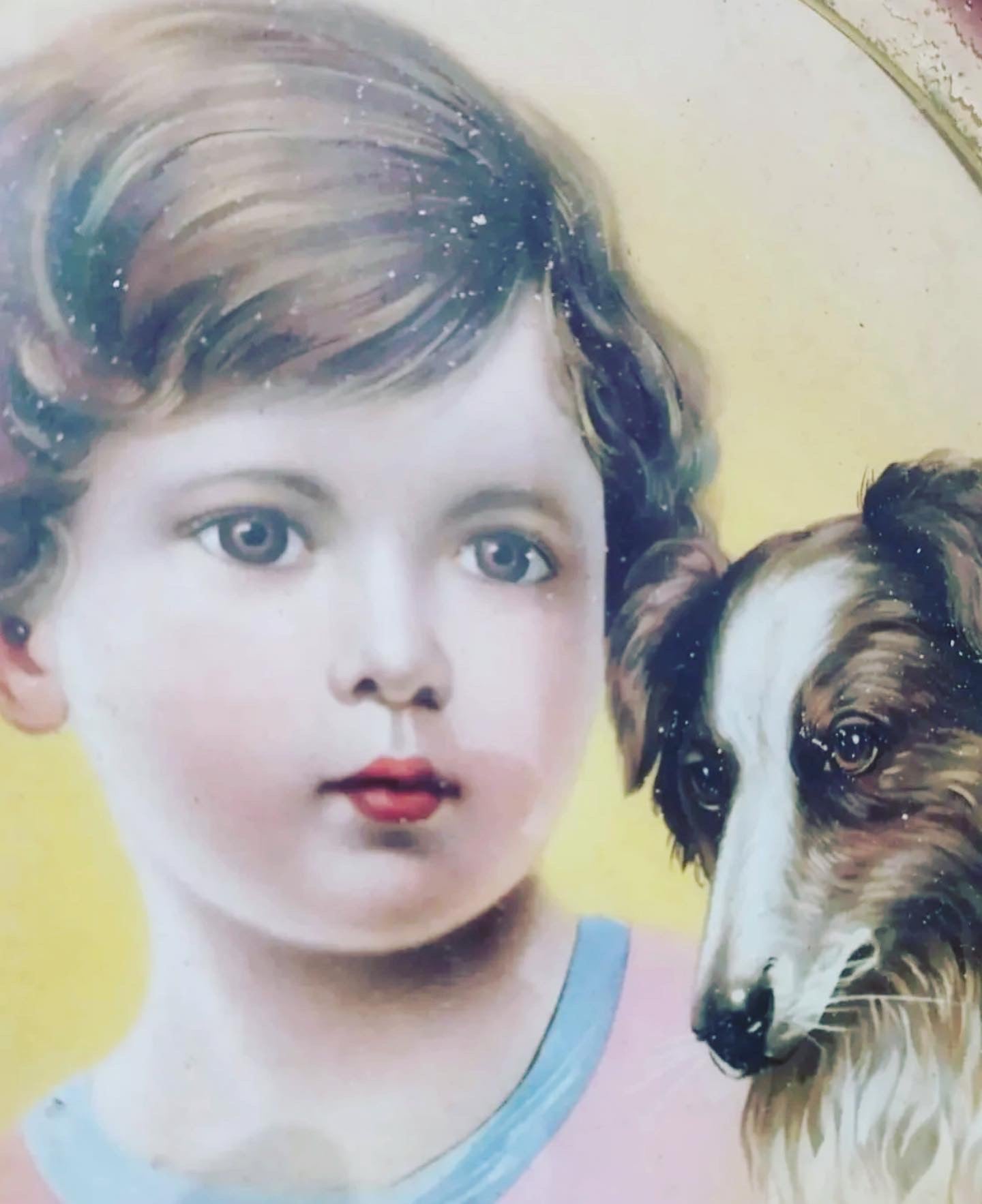 Small #vintage #evening #gem.. the #antiqueprint depicting a little girl and her dog, signed, in a round frame with chain. Diameter 26 cm, found in a French flea market.