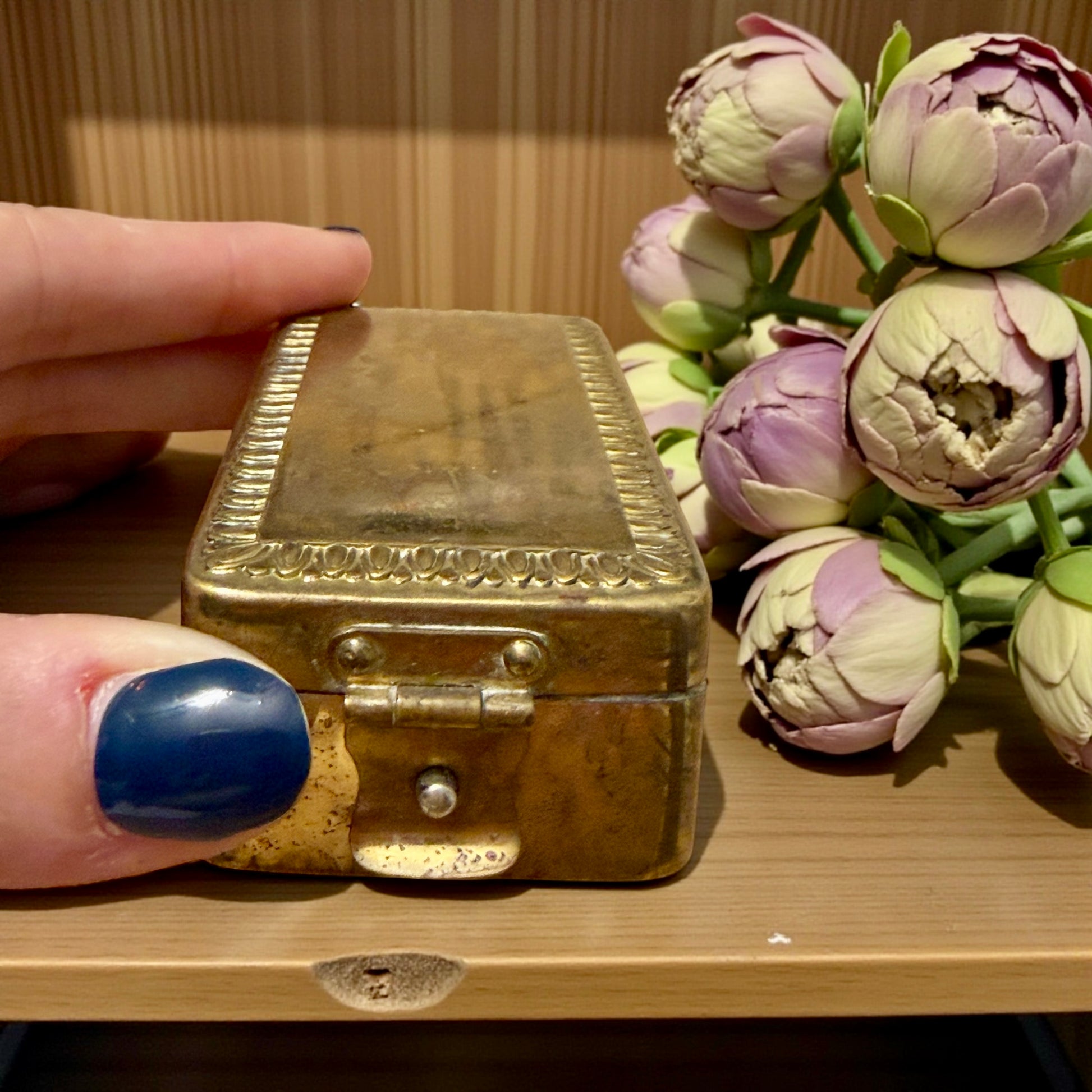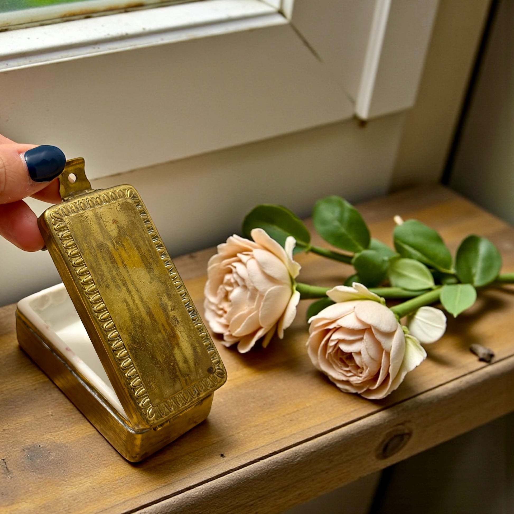 La rasatura, un tempo, non era una fretta. Era un rito. Questa piccola scatola da barba racconta un gesto quotidiano ormai scomparso: il momento in cui l’uomo apriva il coperchio, bagnava il pennello e si prendeva il tempo di prepararsi al giorno. Realizzata in metallo con vaschetta interna in ceramica bianca, era pensata per contenere la crema da rasatura. La ceramica, igienica e facilmente lavabile, proteggeva il prodotto dall’umidità e dall’ossidazione, mentre il metallo garantiva solidità e durata nel tempo. Se ne stava quieta accanto allo specchio o al lavabo, sempre pronta all’uso. La chiusura frontale permetteva invece di portarla con sé, rendendola adatta anche al viaggio. Bella la patina, traccia silenziosa di vapore, mani, mattine d’inverno. Oggi può vivere come oggetto da collezione, come contenitore decorativo o come dettaglio d’arredo capace di evocare un tempo in cui anche le piccole azioni avevano un ritmo diverso.