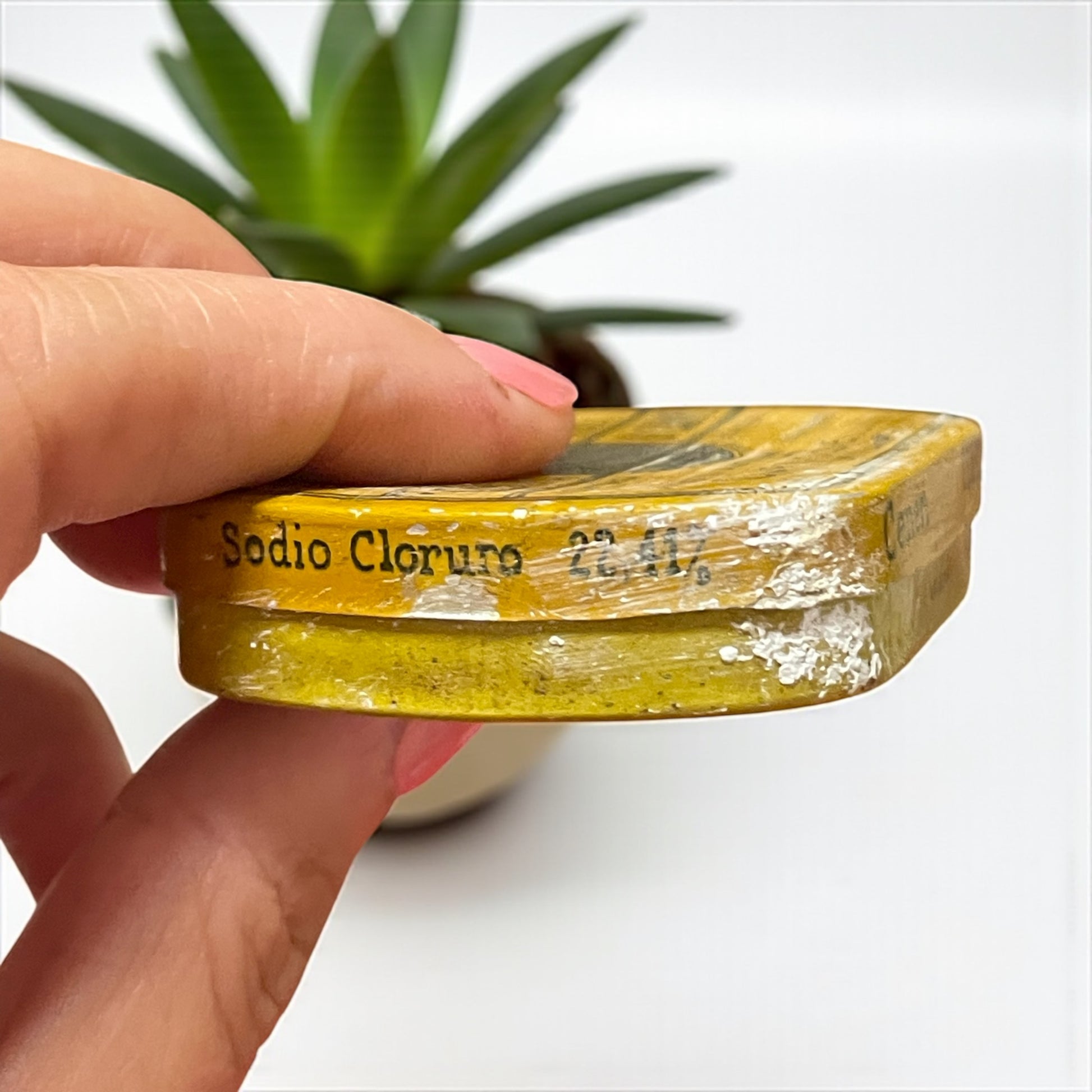 Immagina l’Italia dei primi del Novecento: cucine senza frigoriferi, dispense che custodivano alimenti in scatola e conserve come tesori di modernità. Dentro questa piccola scatola gialla si celava un prodotto che allora rappresentava una vera rivoluzione: la gelatina di carne “Iris”, marchio della ditta Curzio Bellini di Milano. Era un preparato istantaneo che, sciolto in acqua bollente, diventava brodo o aspic, pronto in pochi minuti. In un’epoca in cui la carne era un lusso e la conservazione una sfida quotidiana, questa gelatina era sinonimo di progresso e praticità: “insuperabile economico”, recitava con orgoglio l’etichetta. E quelle misteriose scritte “umidità 18,80%” e “ceneri 23,88%”? Non erano ingredienti, ma analisi chimiche stampate come garanzia di qualità. Le “ceneri” indicavano il contenuto minerale, il residuo inorganico ricco di sali dopo la combustione del prodotto: una forma rudimentale di etichetta nutrizionale, che oggi ci appare quasi poetica nella sua ingenuità. Così, questa scatolina non racconta solo di un alimento, ma di un modo di vivere il quotidiano: la fiducia nel progresso, la ricerca di soluzioni pratiche, l’orgoglio di un’industria alimentare che si presentava come moderna e premiata. Tenendola in mano, non si percepisce solo un contenitore di latta, ma si tocca con le dita un frammento di una società che credeva nella scienza e nella novità.
