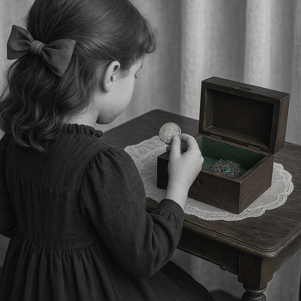 Si chiamava Léonie, e ogni domenica mattina, dopo la messa, il nonno le dava una moneta d’argento: un piccolo franco lucido, da tenere con cura. Non la spendeva mai in dolciumi o nastri per i capelli come le altre bambine. Léonie saliva silenziosa nella sua stanza, apriva quella scatoletta di legno scuro — la sua caisse d’épargne — e lasciava cadere il suo tesoro nella fessura. La scritta “Épargnes”, dipinta sul coperchio, sembrava osservare con complicità il suo piccolo rituale. Dentro il suo sogno: mettere da parte abbastanza da poter comprare, un giorno, un profumo per la mamma. Non uno qualunque. Uno vero, della profumeria di Madame Collot. Quella scatoletta non conteneva soltanto monete: custodiva l’intimità di un amore infinito, la dolcezza di un’attesa e il desiderio, semplice e grande, di fare felice chi si ama.
