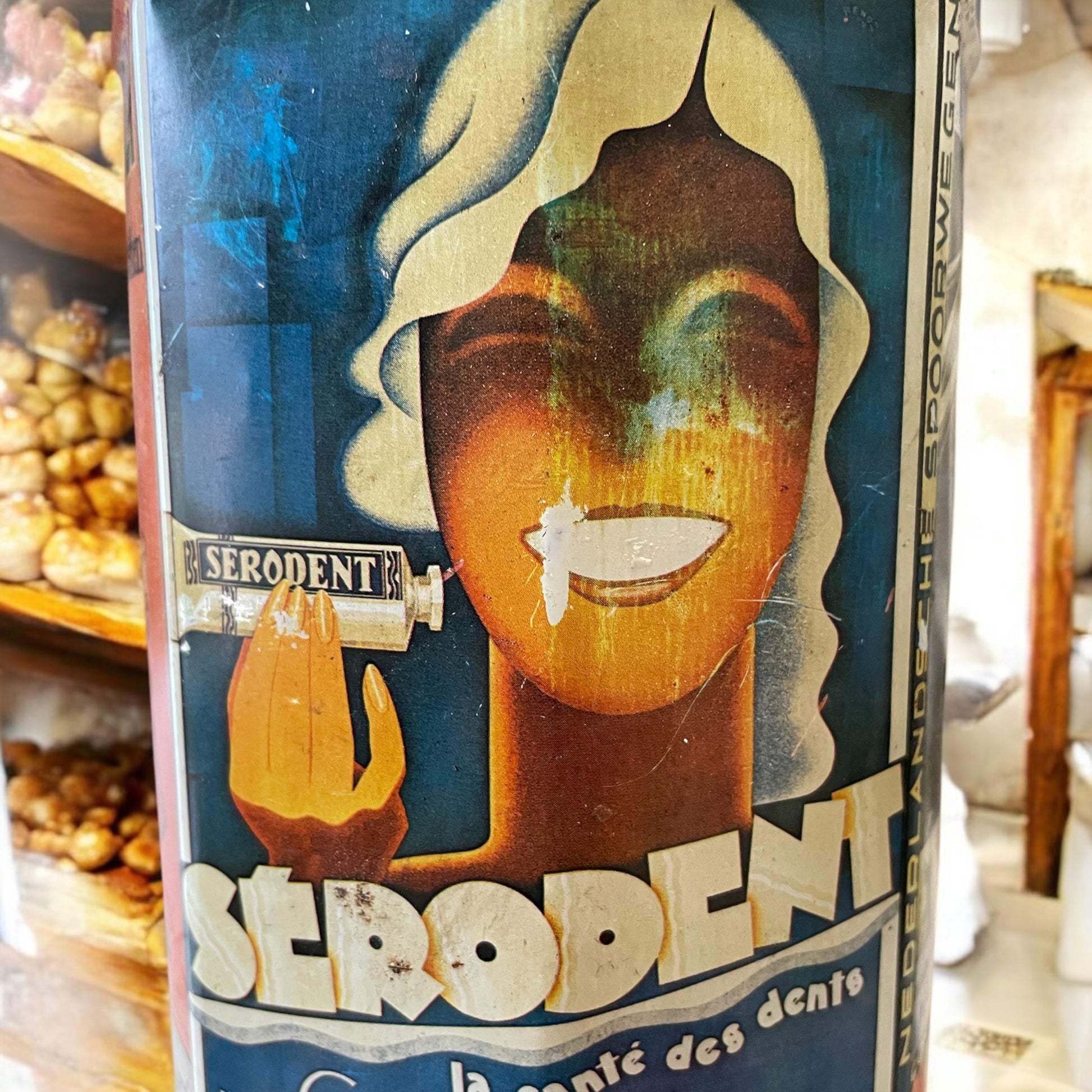 • Sérodent: dentifricio dell’epoca, pubblicizzato con manifesti che sottolineavano la modernità e l’importanza della cura personale, simbolo di un sorriso luminoso e sano.