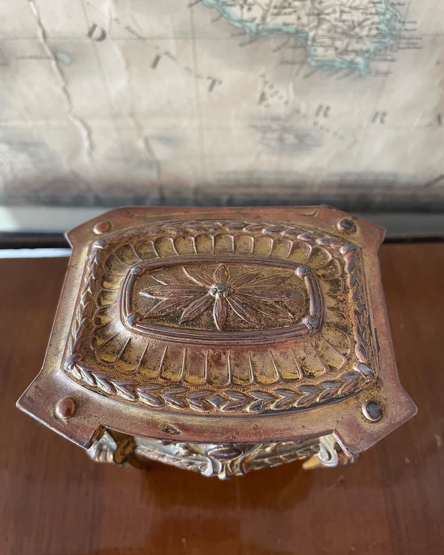 An #antique #liberty #jewel to start the day off right. This #jewelry #box marked on the bottom still retains its original internal upholstery. The #floral #patina #friezes embellish it as does the #patinaoftime ... a gem that is also ideal as a gift!