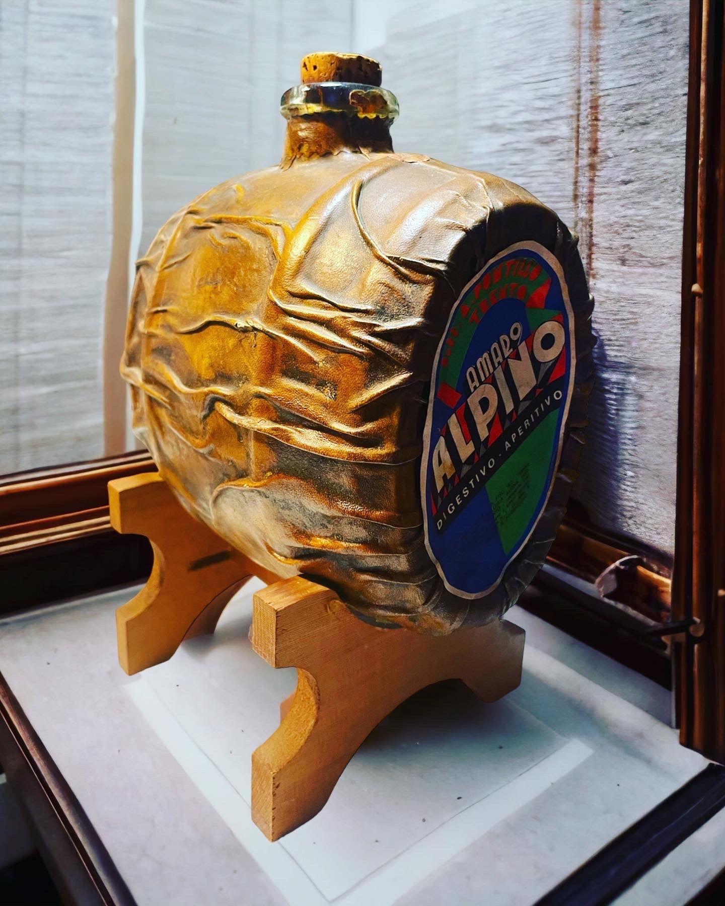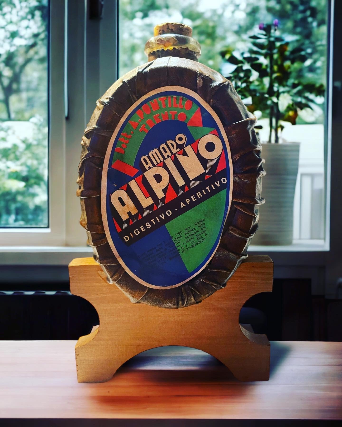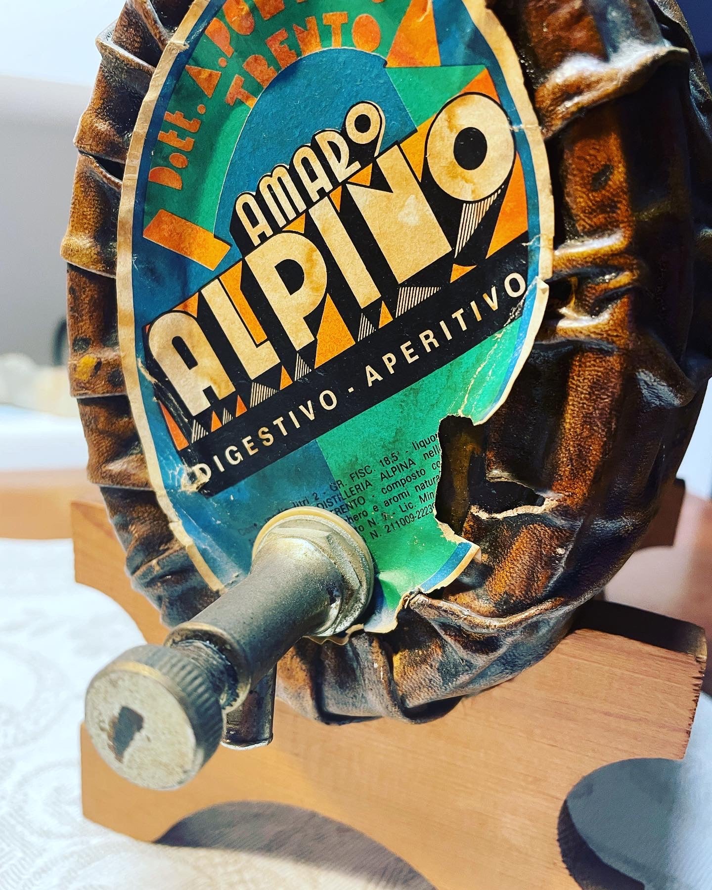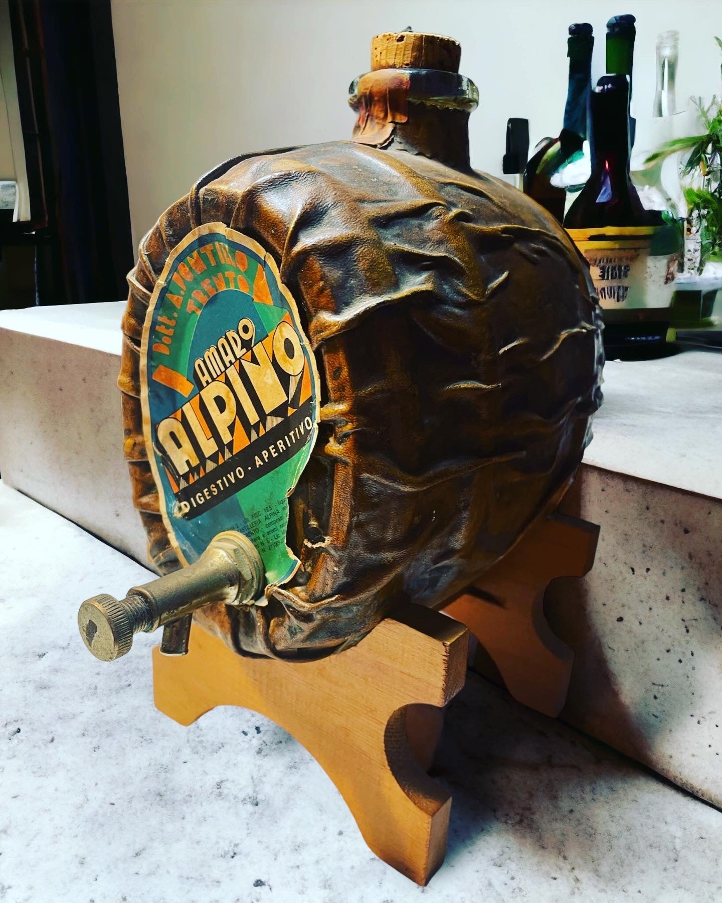 Beautiful #collector'spiece! The #vintage #barrel of #amaroalpino #60s complete with tap; #historical design that has made this barrel a #musthave of #modernariato: created by Agostino #pontillo combining the experience of the South with the alpine flora.