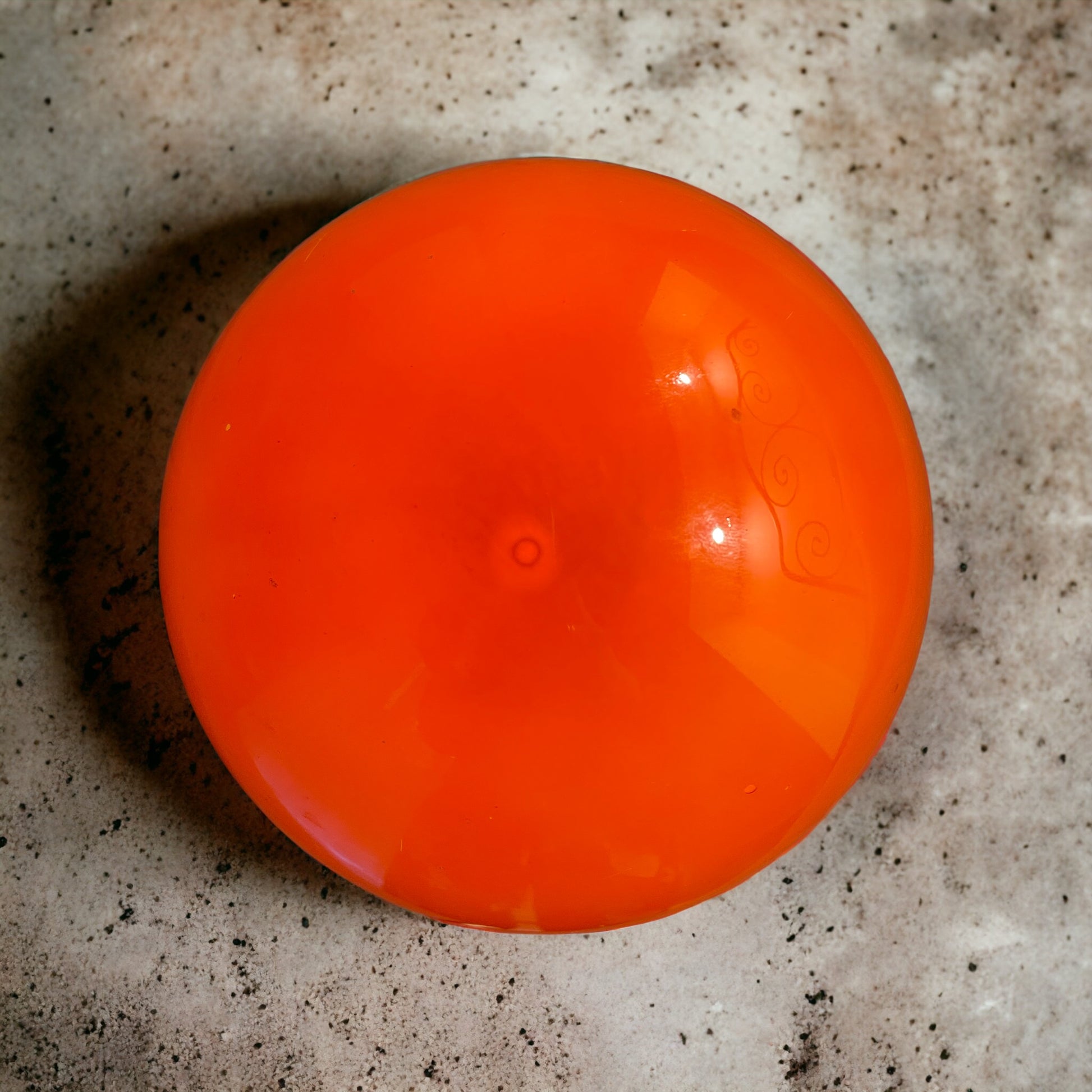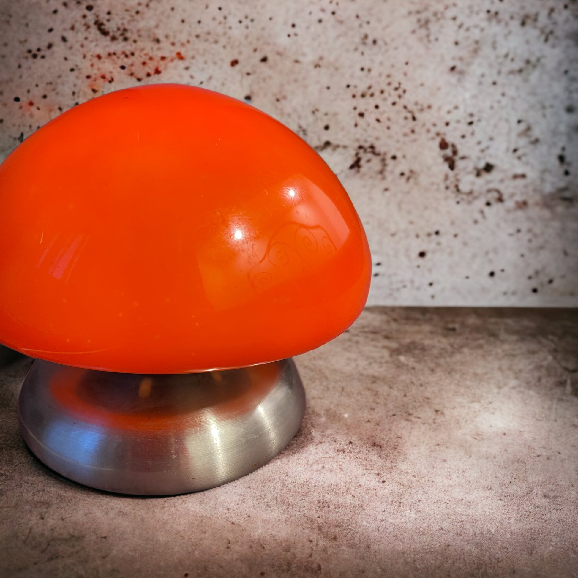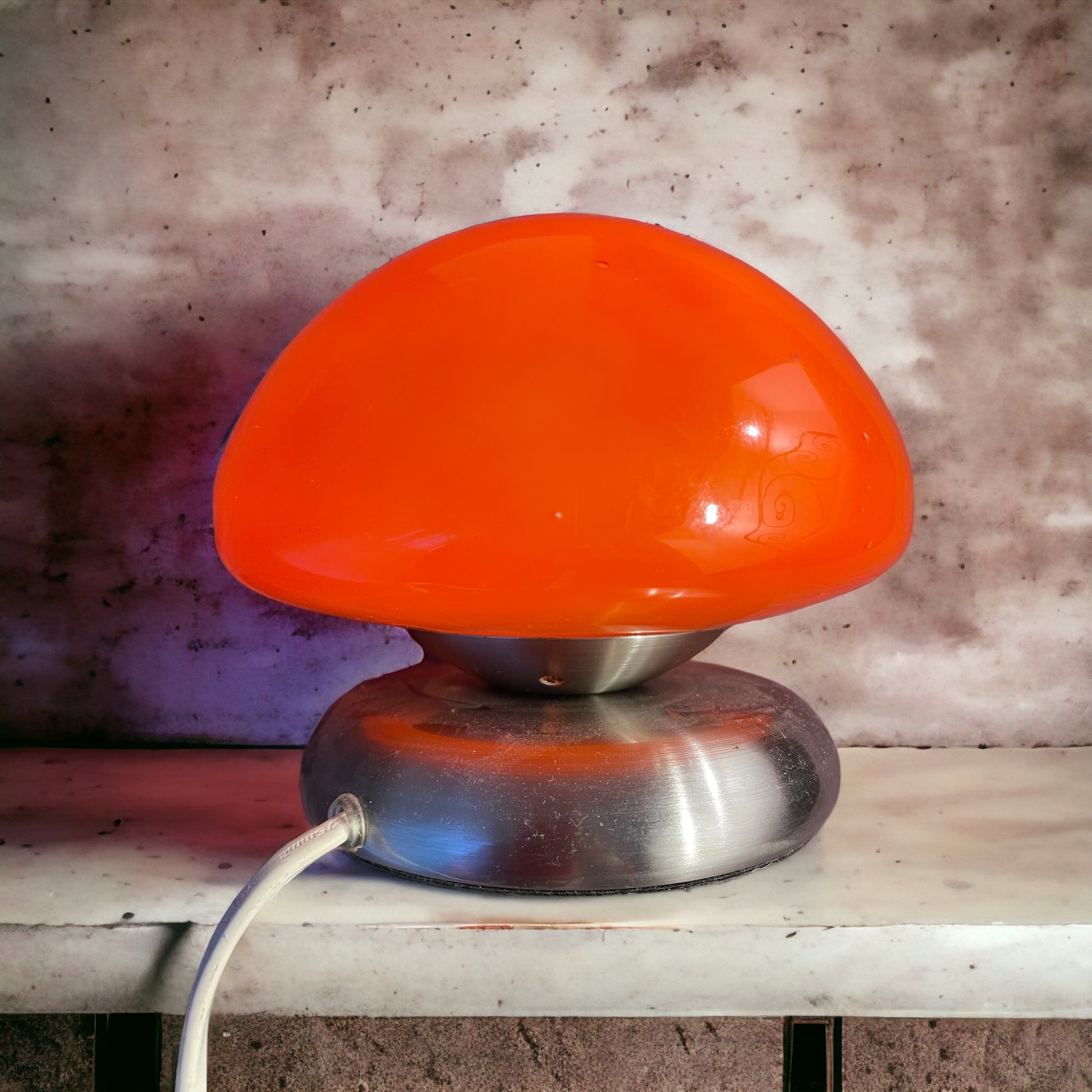 #spaceage inspired this morning with the #lamp “Button” in tactile #orangeglass: touching the base it lights up and offers three different brightness levels. #seventies as if there were no tomorrow, amazing #design, metal base and excellent conservation. Diameter 17 cm height 15 cm; electric cable replaced with a modern and perfectly functioning system.