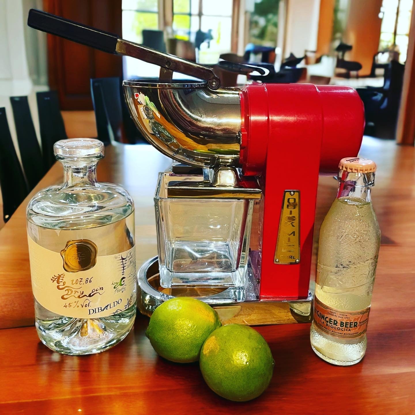 Celebrating the excellent #gin #dibaldo and the scents of organic lime and ginger beer #tassoni; we propose the historic #icecrusher #quickmill #omre super red, #vintage, chromed steel, #design #spaceage, #vintageappliances #musthave of the #modernariato #60s: it is the oldest and most sought-after model, the one with the iron switch! The glass container has been replaced with one of the same size which, as you can see, can be placed under the opening where the crushed ice comes out. It is perfectly functional, practically as good as new, if you have a trendy place on display it will capture everyone's attention. And now #londonmule ... cheers!