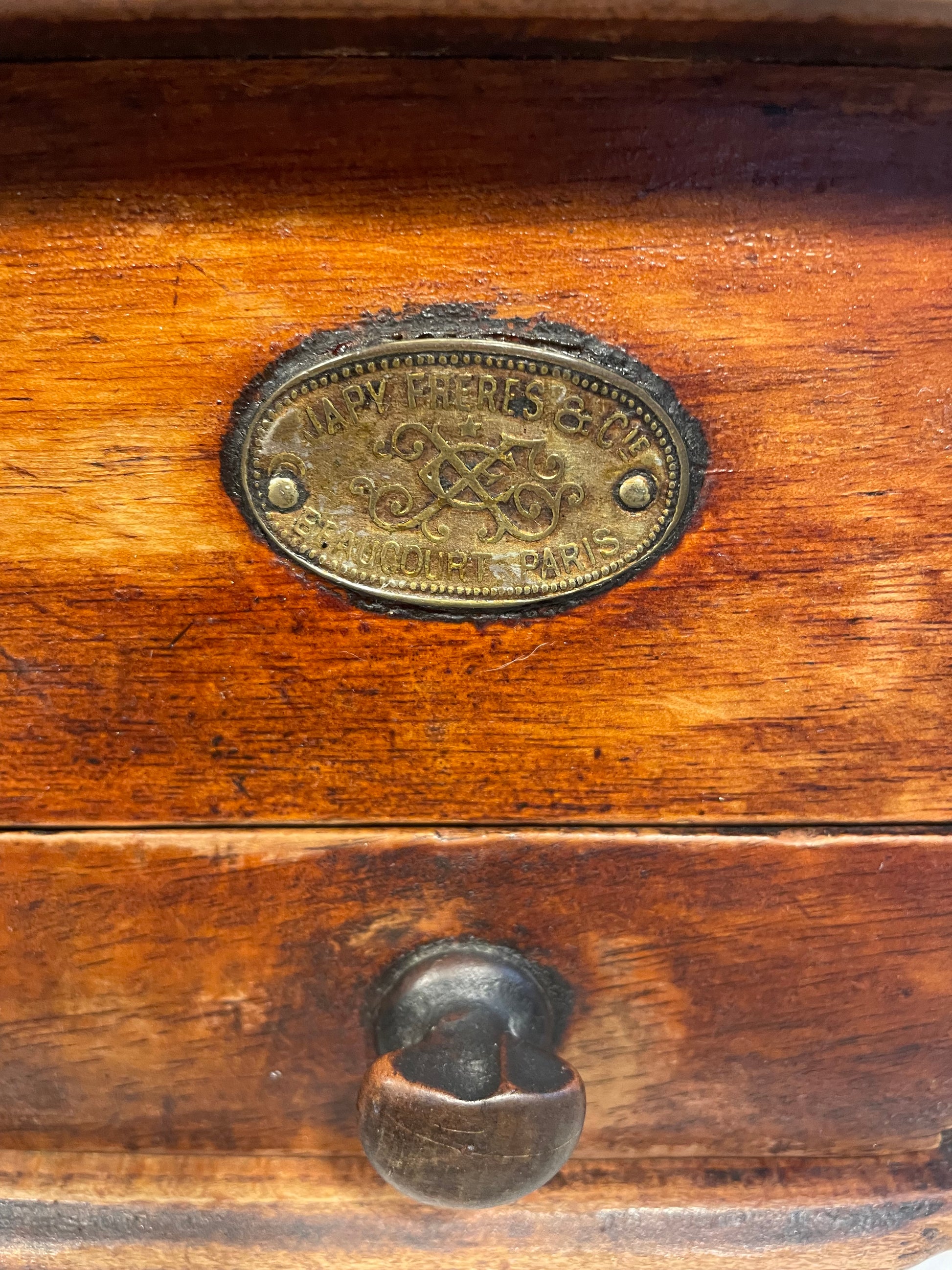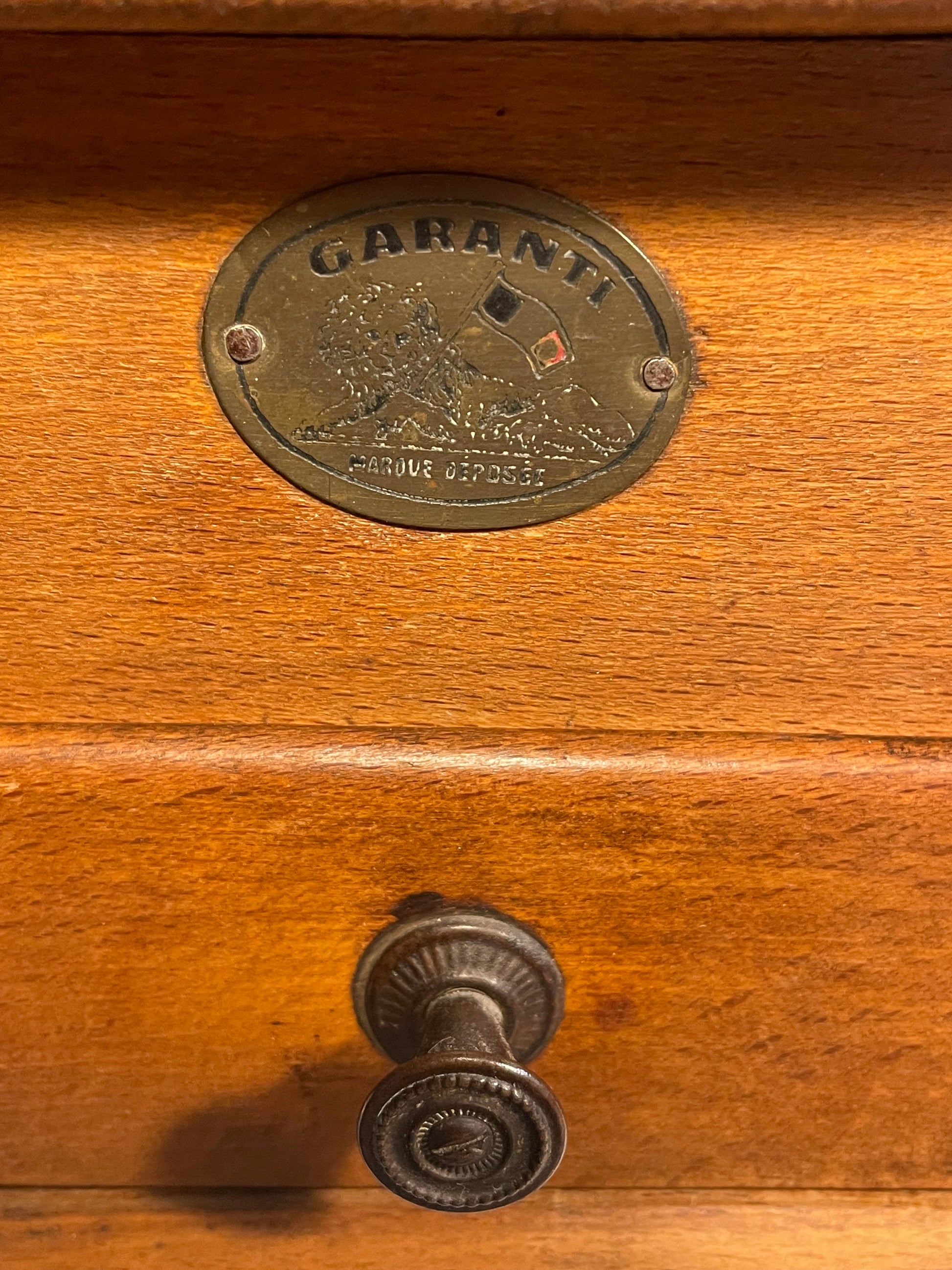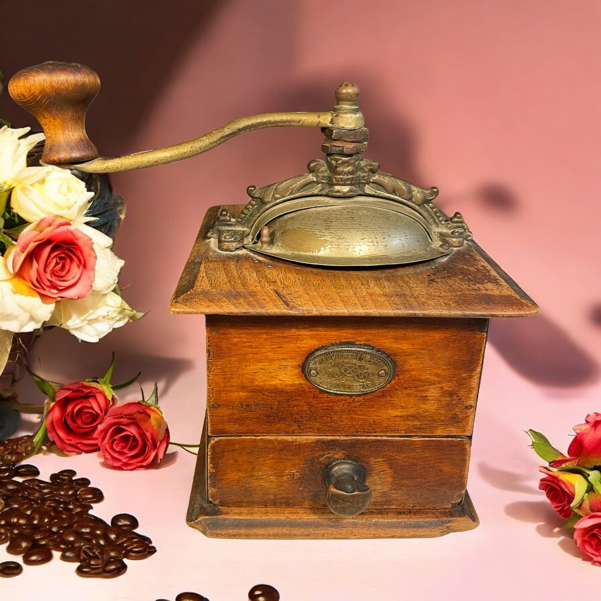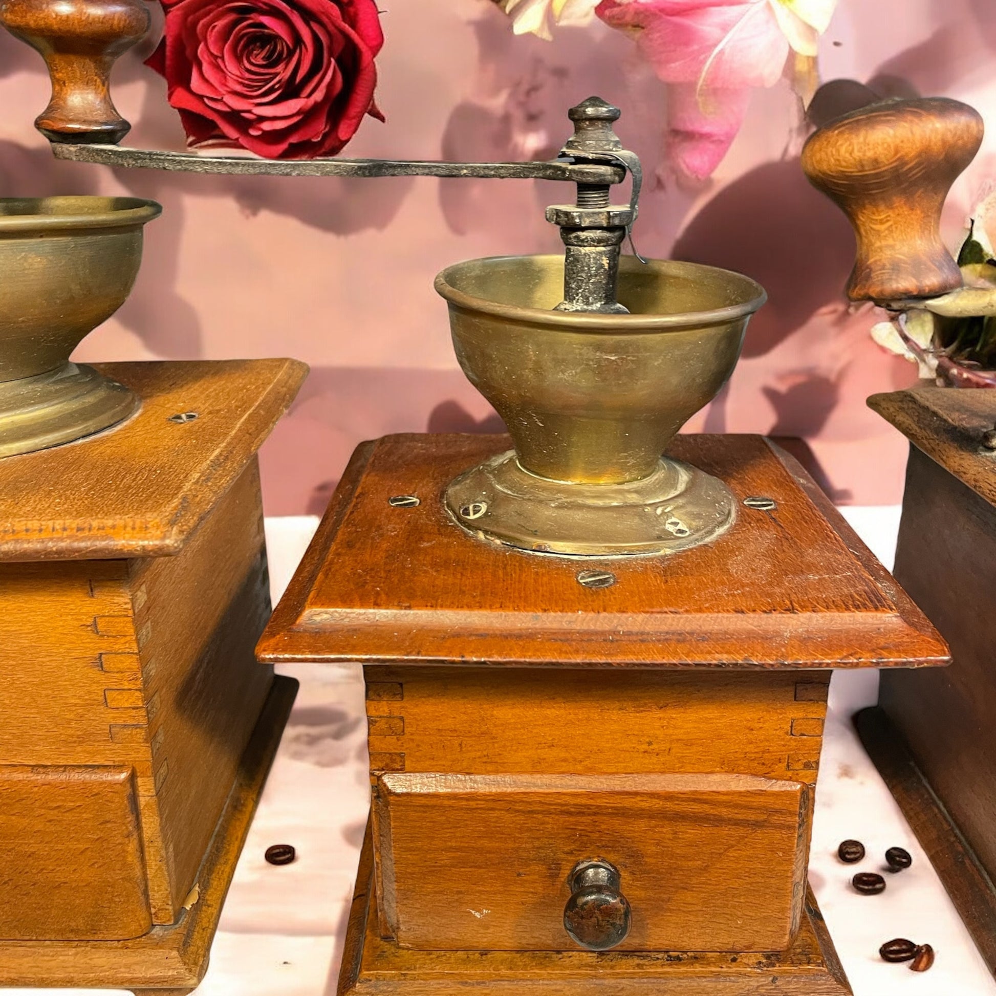 Immagina l’aroma intenso del caffè che si diffonde lentamente nella cucina al mattino, avvolgendoti in un abbraccio caldo e familiare. Le mani scorrono sul legno levigato, il tocco del metallo freddo, dell’ottone ti riporta ai gesti antichi: girare la manovella, ascoltare il rumore ritmico dei chicchi che si frantumano in una danza di profumi. Questi macinini, intrisi di storie, portano con sé un frammento di quotidianità autentica. Il marchio ‘Garanti’, con il suo leone e le bandiere, richiama un tempo in cui ogni oggetto era un piccolo capolavoro di artigianato, mentre il raffinato stemma ‘Lavy Frères’ ci trasporta in una Parigi di fine Ottocento, tra i caffè bohémien e il sapore del caffè appena macinato. Non sono semplici strumenti, ma portali verso un’epoca in cui il tempo scorreva lento, scandito dal profumo del caffè e dai gesti semplici che accendevano i sensi e il cuore. Sono ideali da esporre sopra un’antica piattaia o madia, sia in una cucina privata sia in un contesto di ristorazione o agriturismo. Prezzo per il lotto. La manovella gira in ognuno e il cassetto si apre; le dimensioni variano di pochissimi centimetri tra l’uno e l’altro -15 × 15 larghezza e profondità, altezza da 23 a 25 cm.