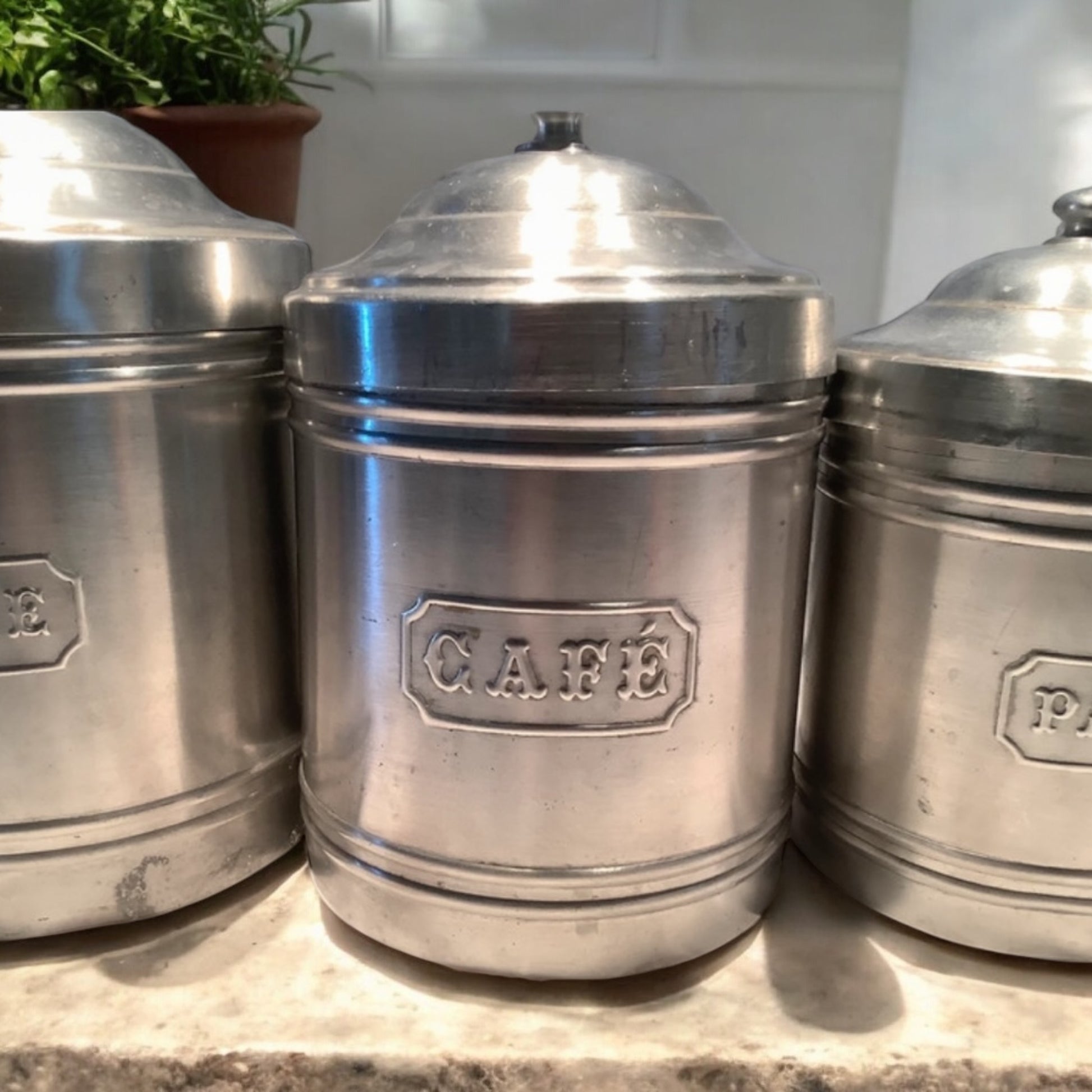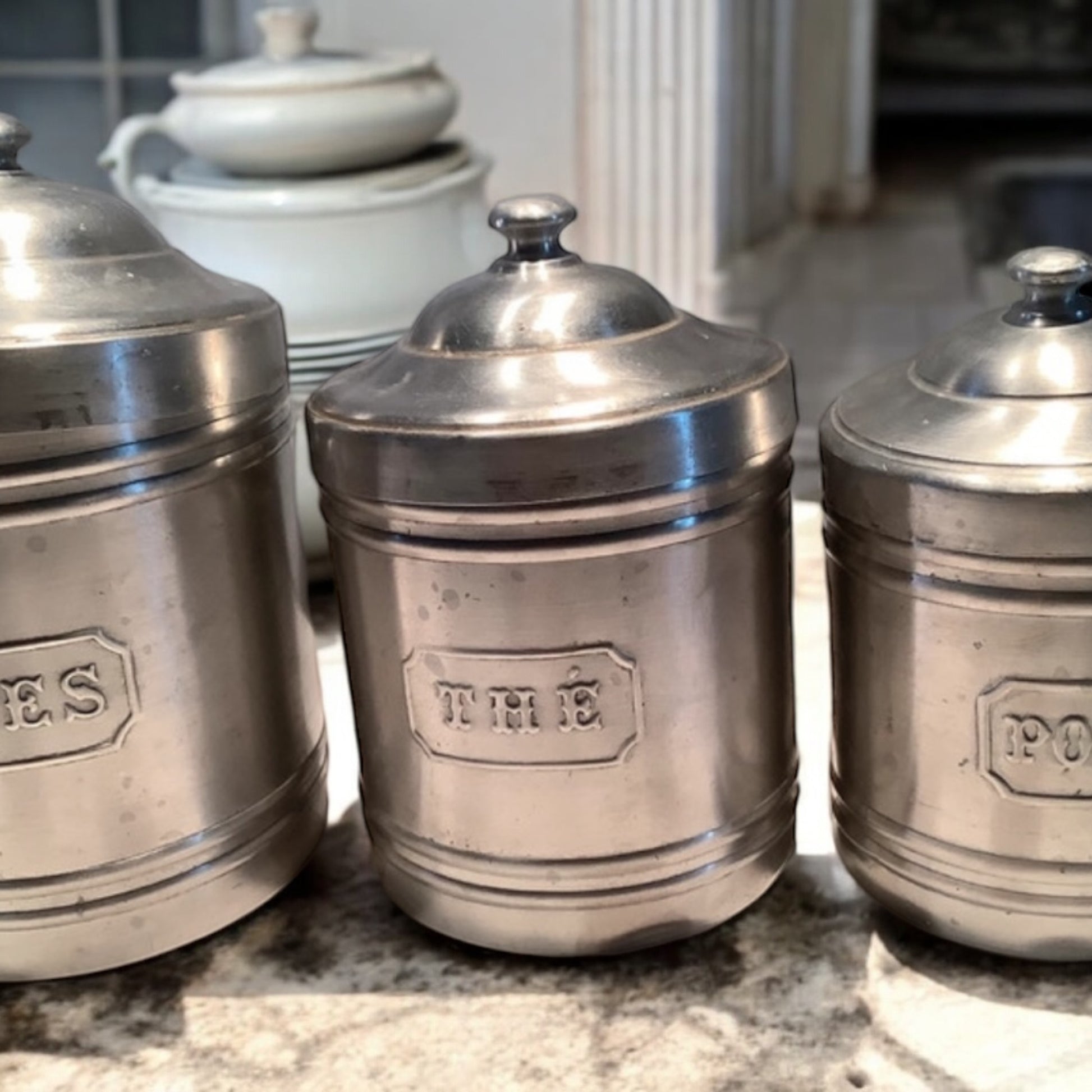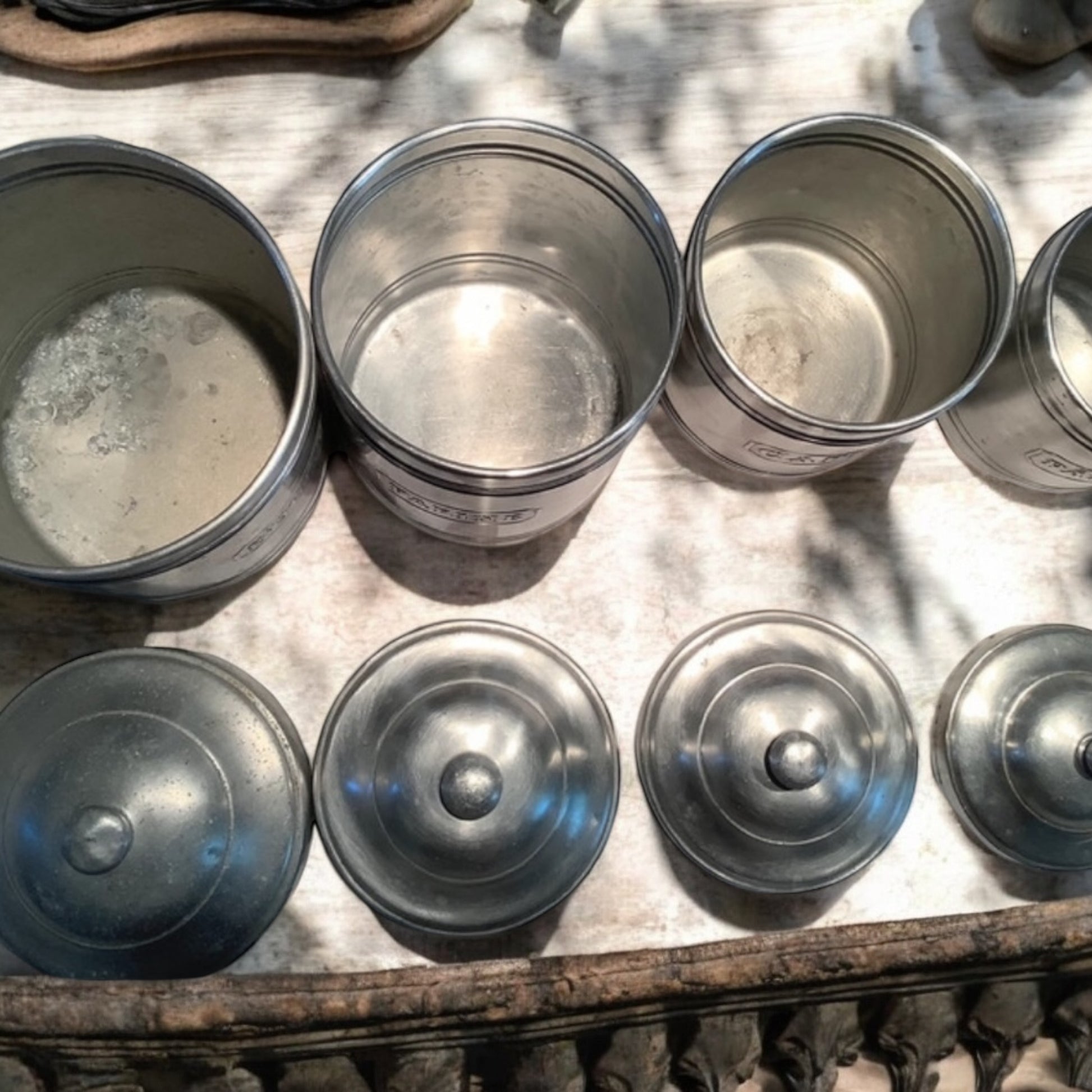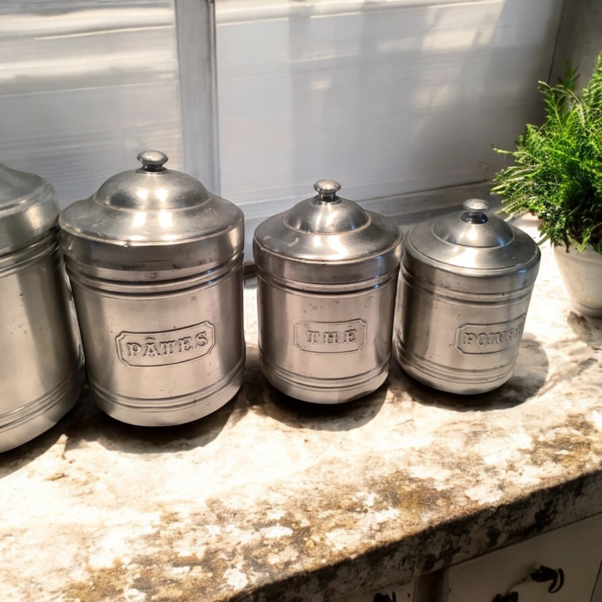 Sanno di Provenza perché da lì che arrivano… e ne doneranno il profumo e l’atmosfera che portano con sé. Siamo felici quando riusciamo a trovare questi Antichi set di barattoli da cucina in alluminio perché ce li chiedete in molti; purtroppo non è possibile accontentare tutti perché non sempre riusciamo a reperirne. Questa collezione è di n. 6 barattoli. Condizioni anche interne super 🌸