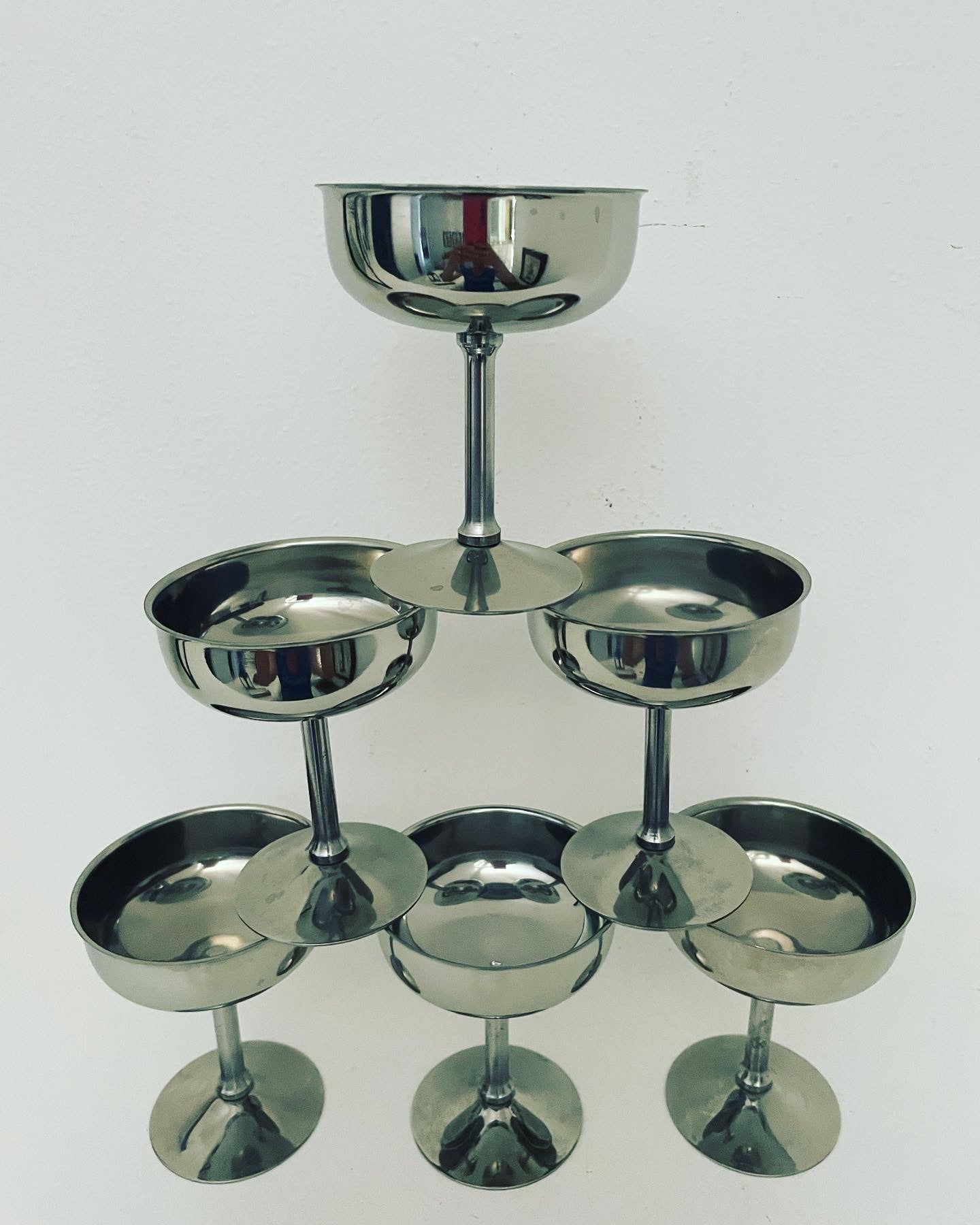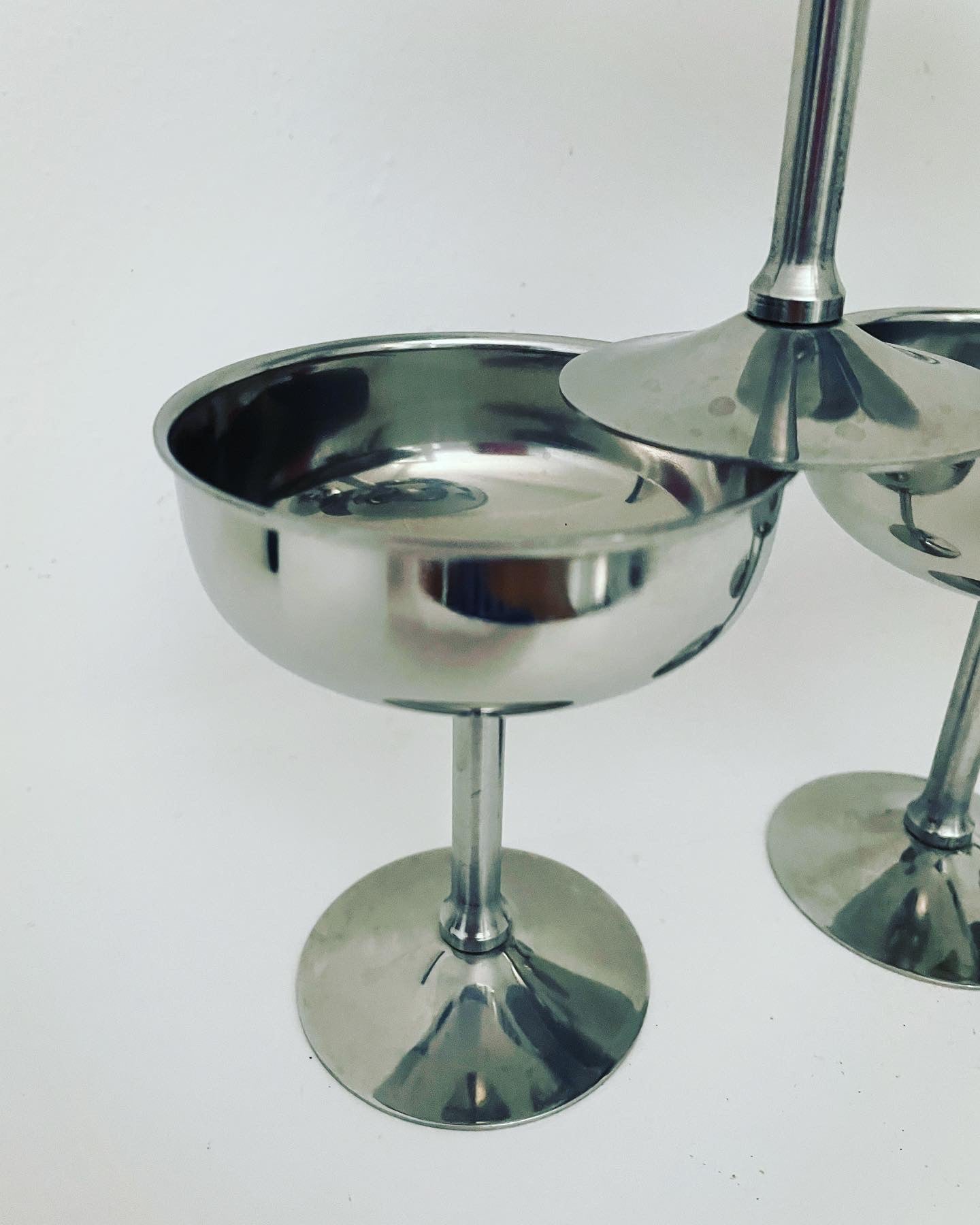 Splendid #vintage set of #champagne #glasses #madeinitaly in #stainlesssteel in full #midcentury directly from the #60s to accompany in a refined and unusual way the tables of your b&bs, restaurants, bars.