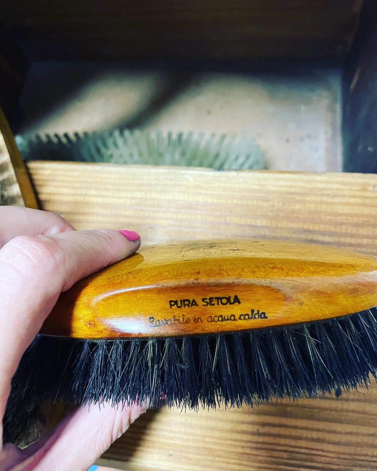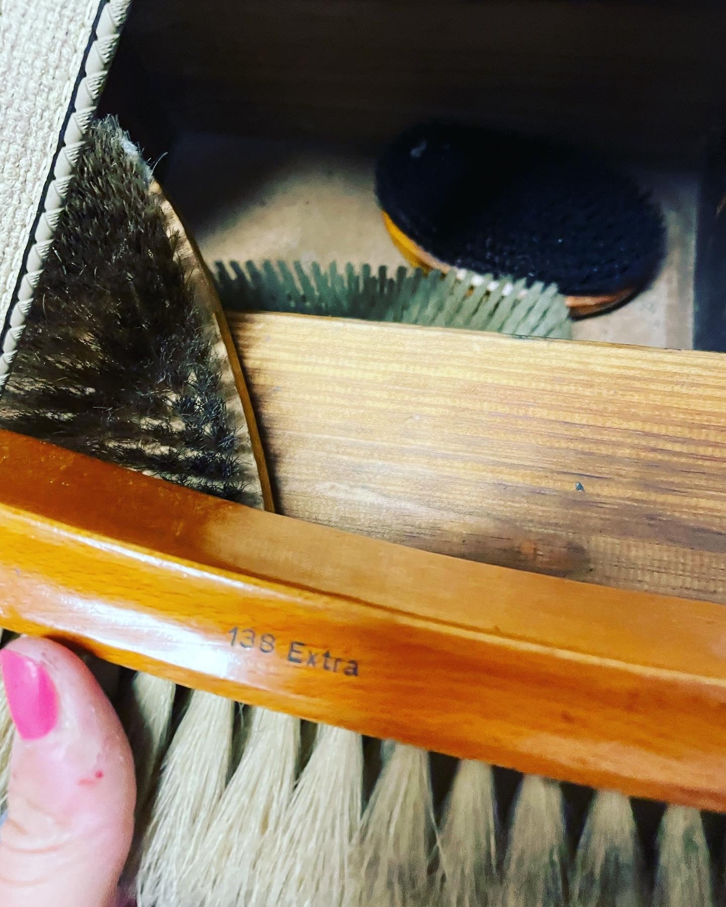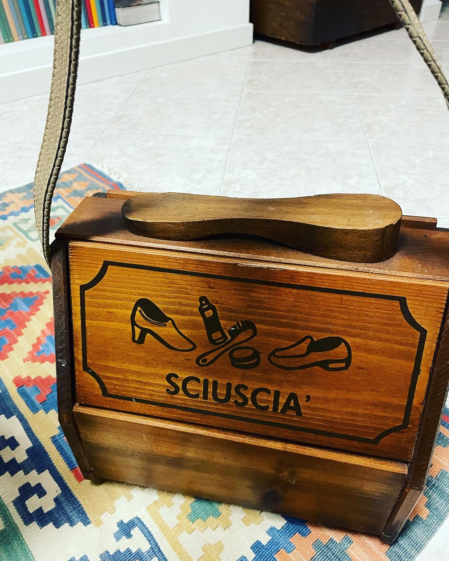 Beautiful #vintage #portable #shoeshine #set with #strap; complete with #antiquebrushes inside, made of wood, excellent condition, beautiful #furnishing accessory also in a #receptive structure with #antiquefurnishings dimensions see last photo