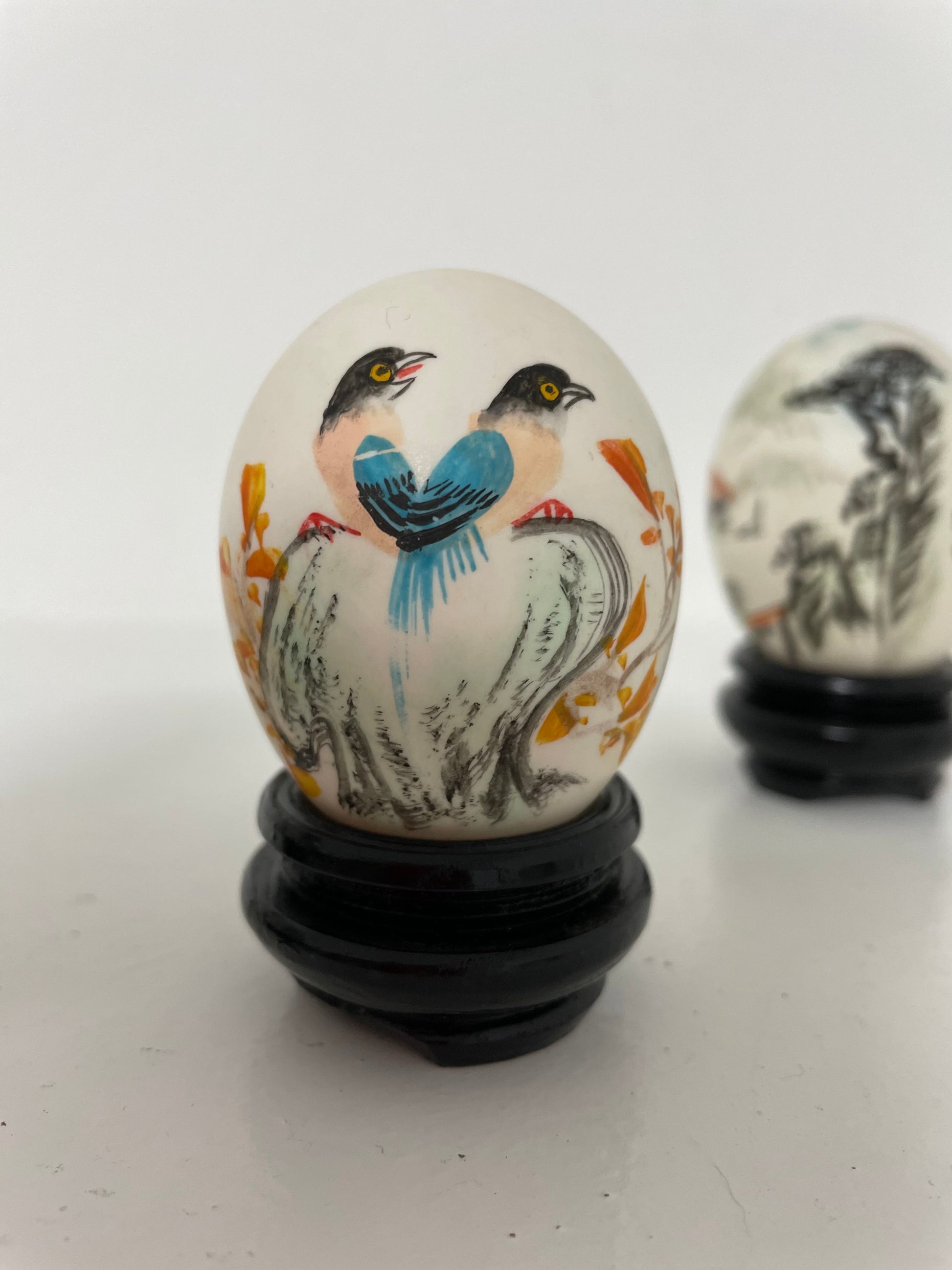 I like to suggest to you when I can #special curiosities, because I think that unusual objects stimulate our imagination and enrich us. I recovered these #old #Chinese #painted #eggs that are real eggshells #handpainted with great finesse and mastery. Each #egg has a wooden base and each of the three has a different size. Generally, artists make them in view of Easter.