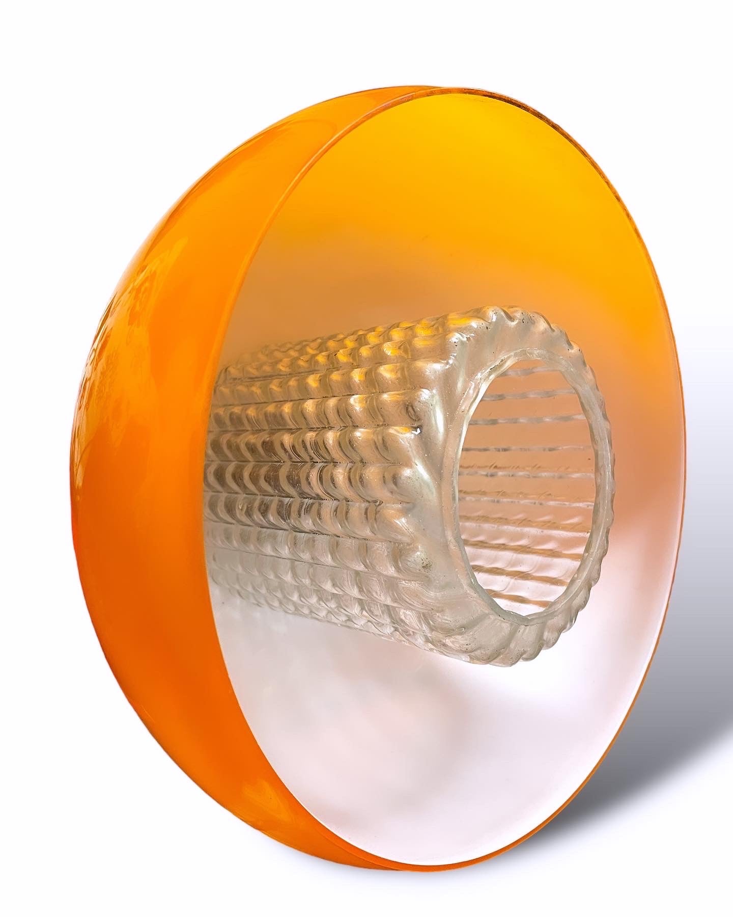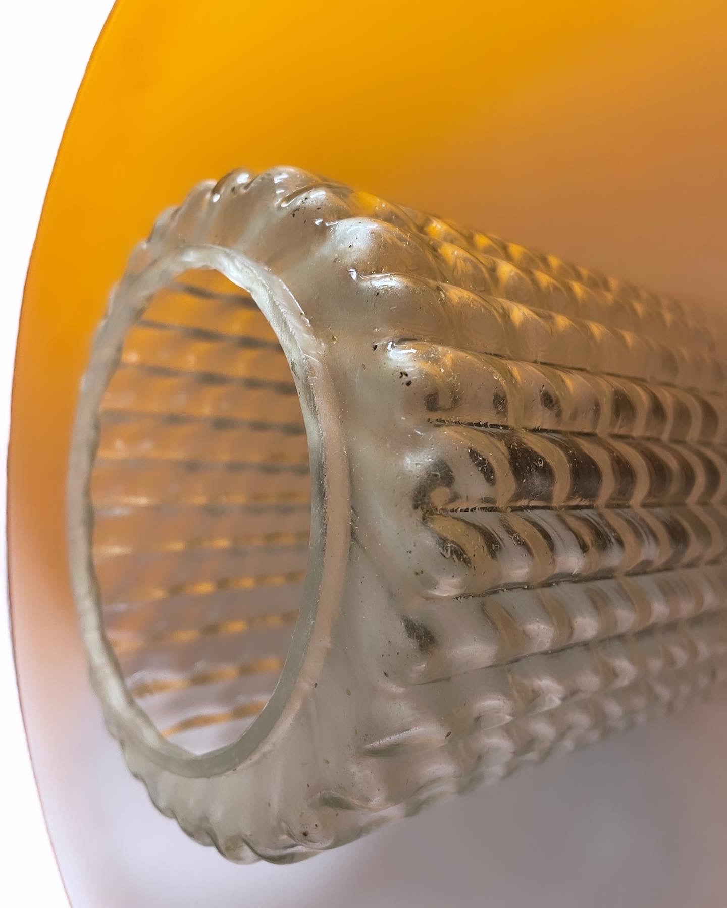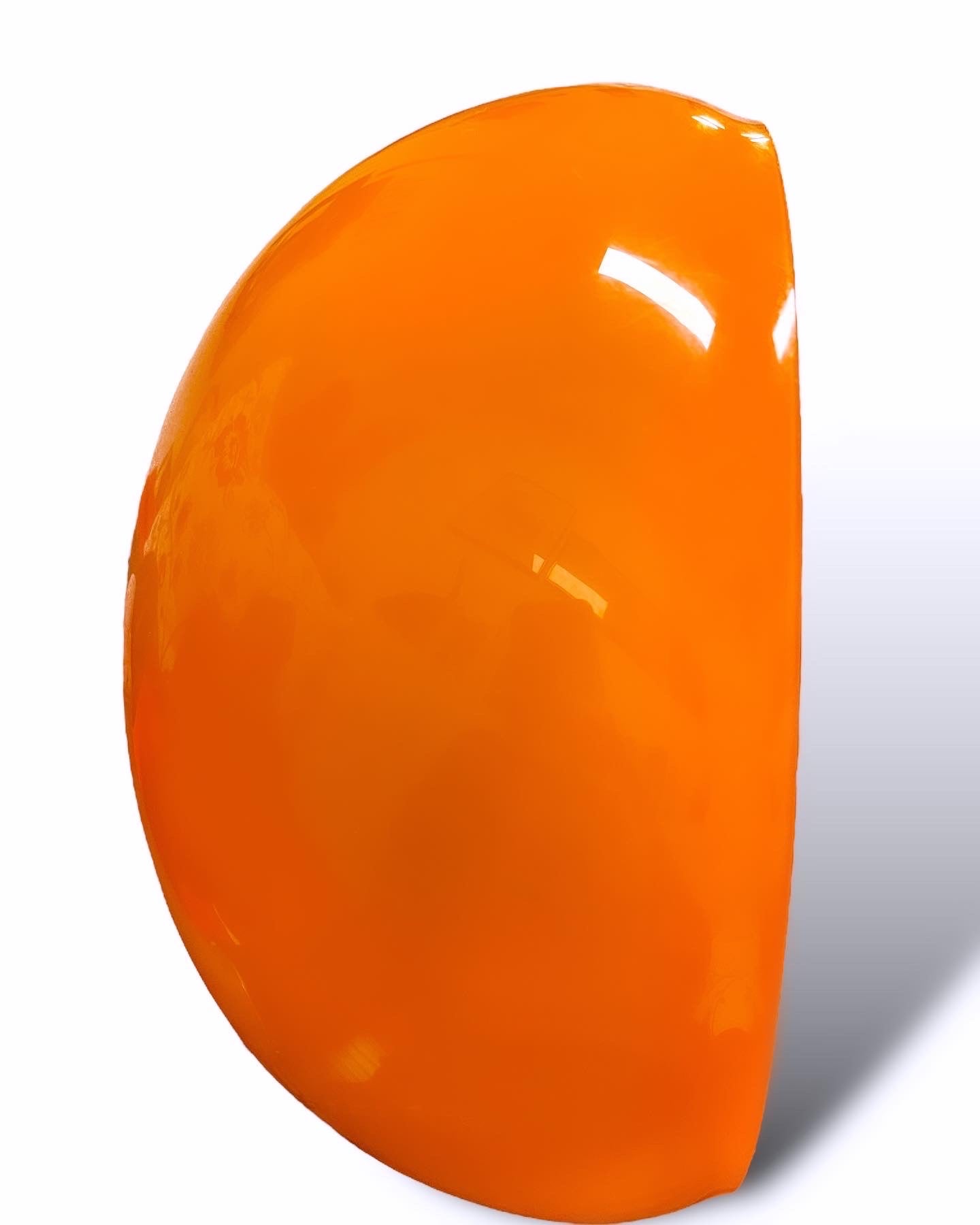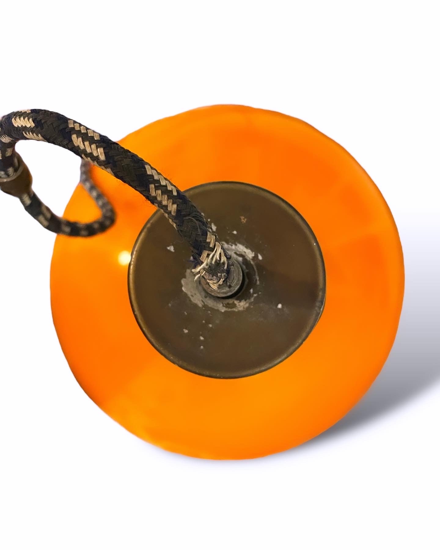 Splendid #design #pendant #lamp in #orange #glass with double bell, the interior in transparent glass, excellent condition of the glass, #spaceage #unmistakable #70s #original #vintage design. Height including brass part 35 cm, diameter 27 cm. Unmissable piece of #modernfurniture.