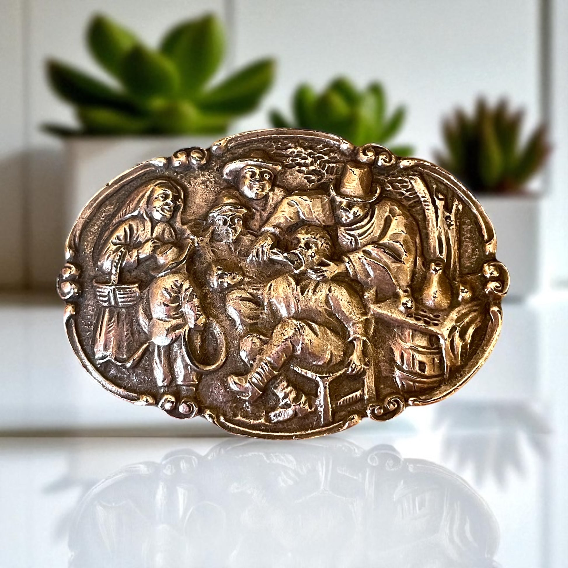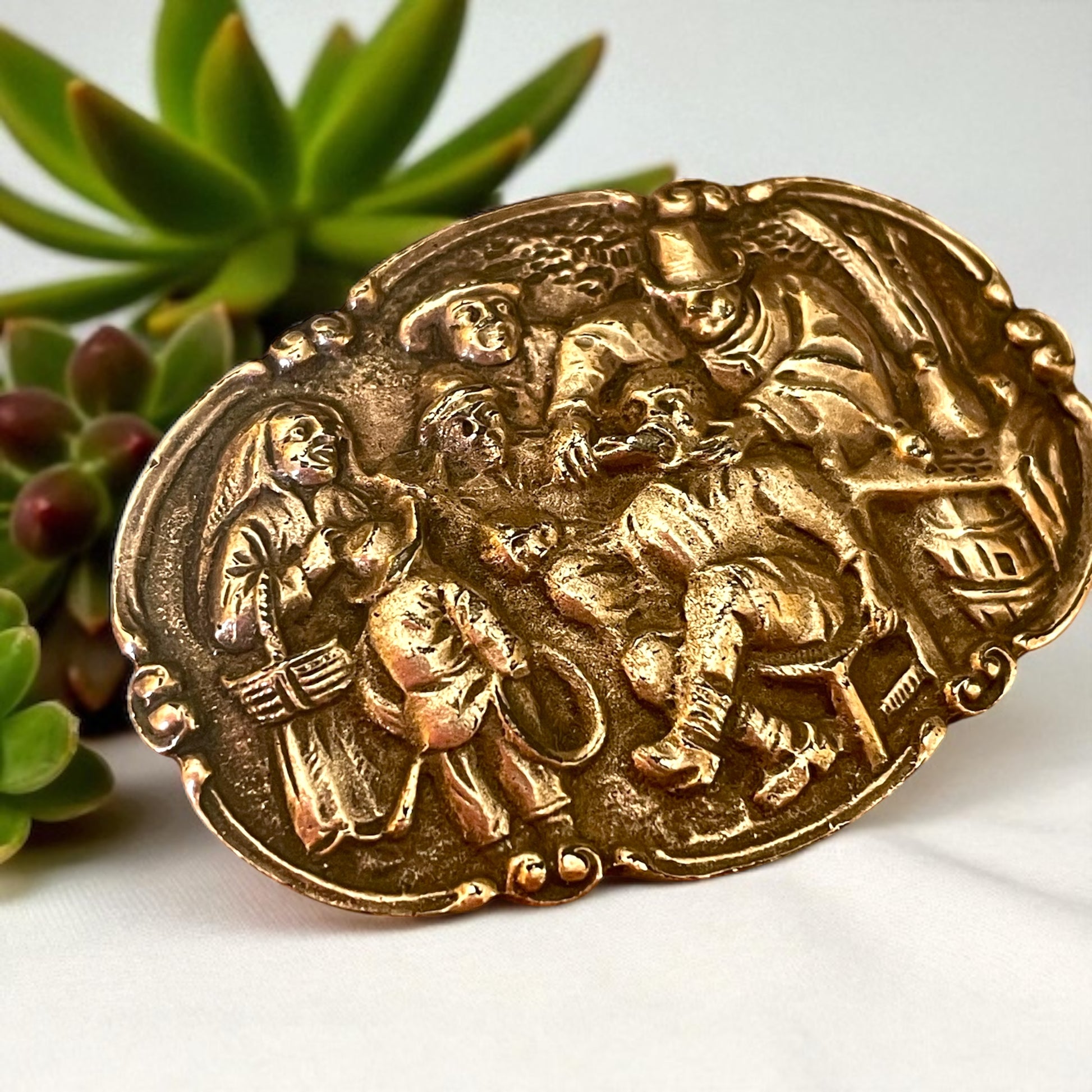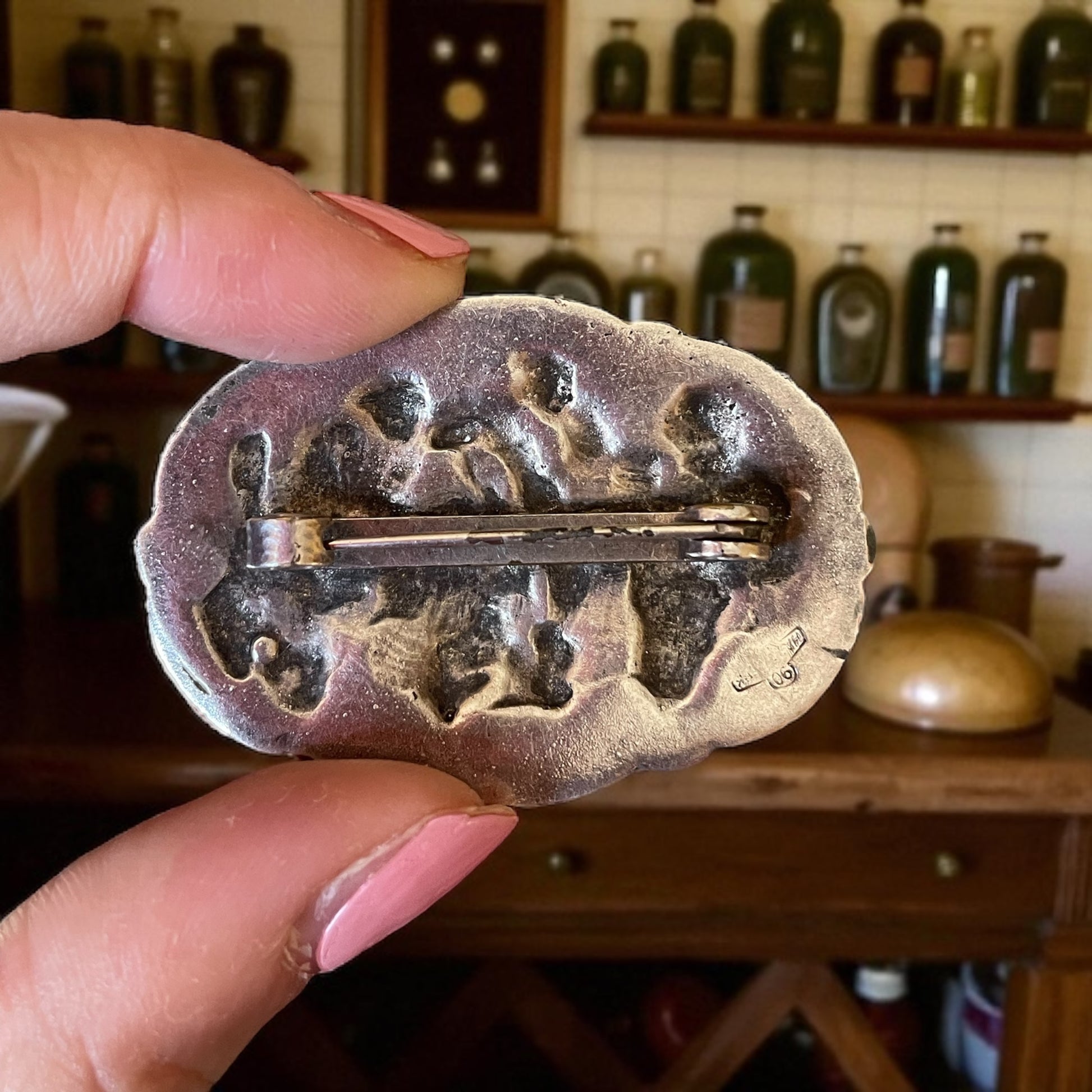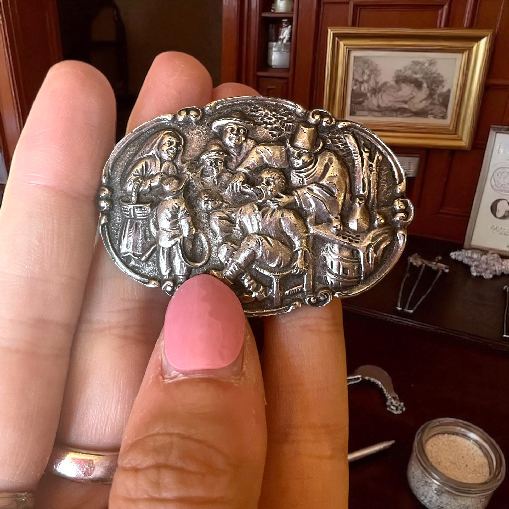 Spilla Wunderkammer con scena di estrazione dente - prima metà ‘900