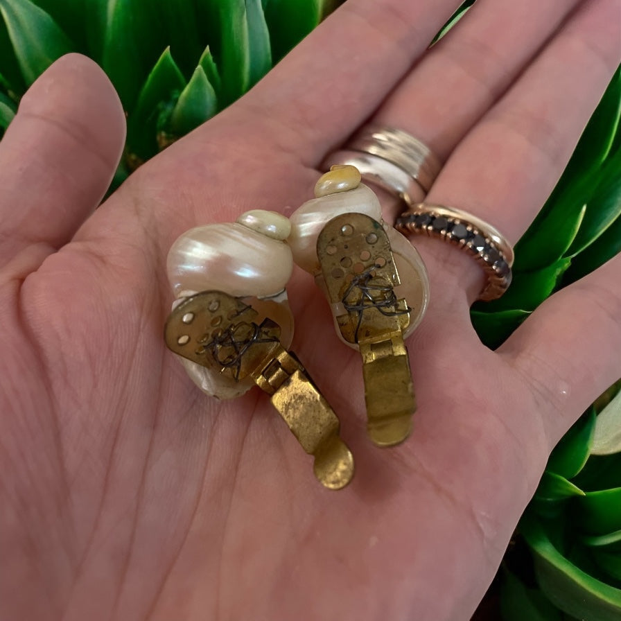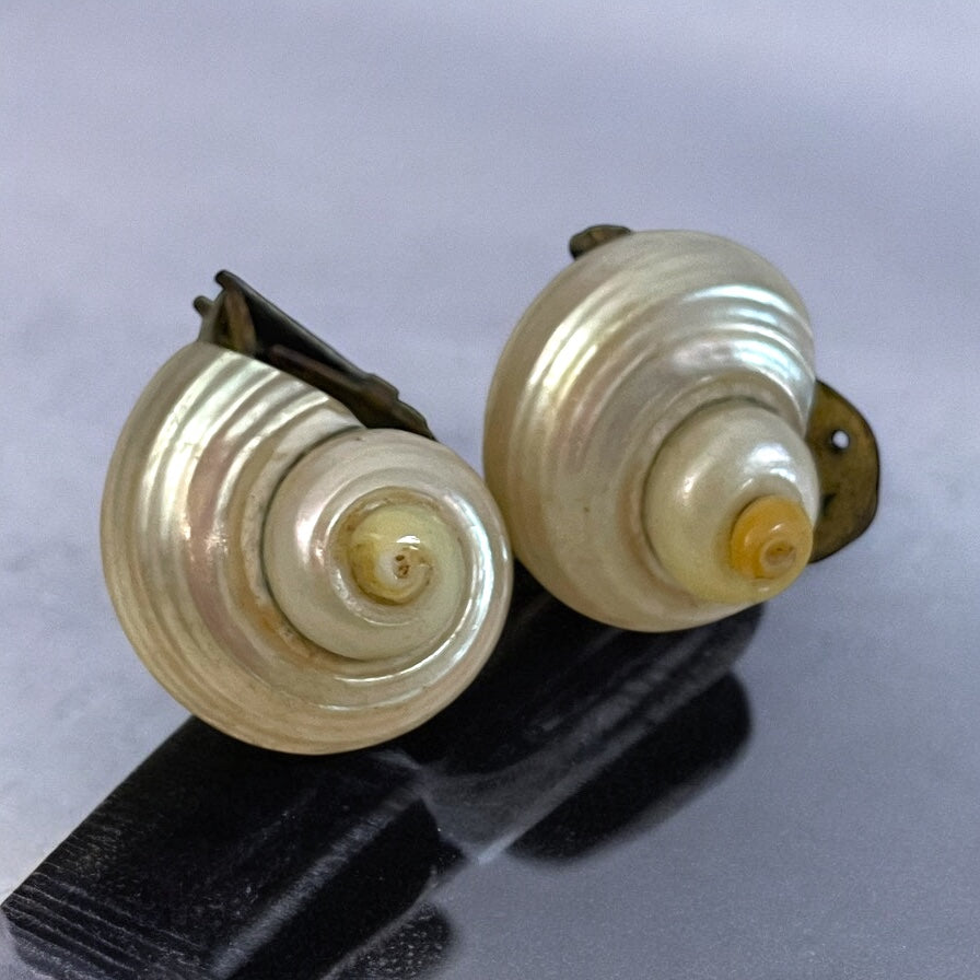 Splendidi orecchini, anni 40 a clip realizzati con incastonamento di vere conchiglie