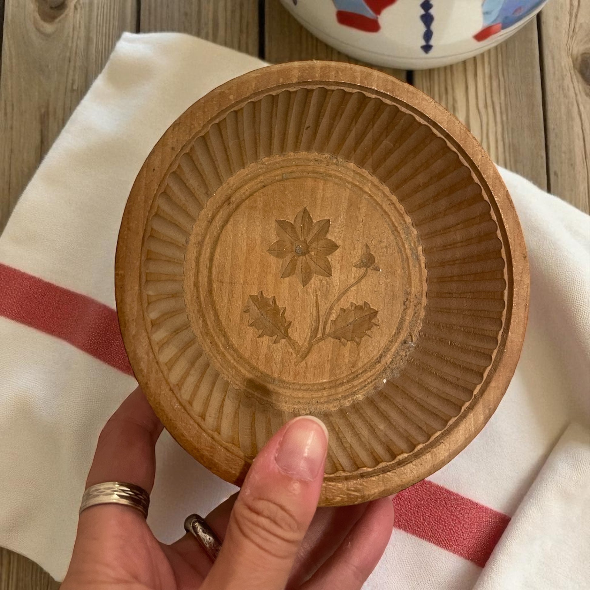 Stampo burro antico rotondo con fiore, primi ‘900 are alpina