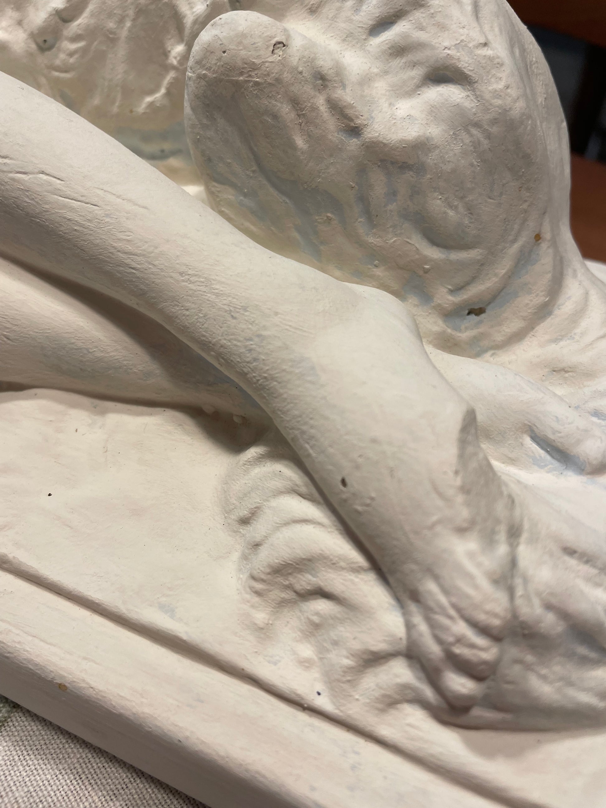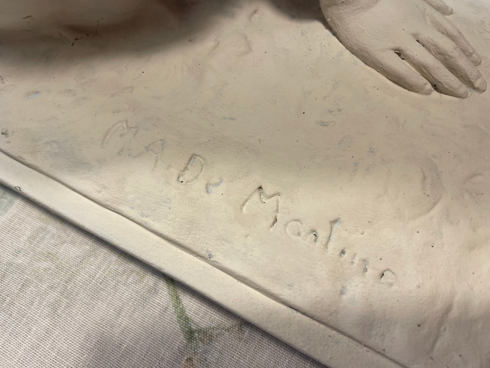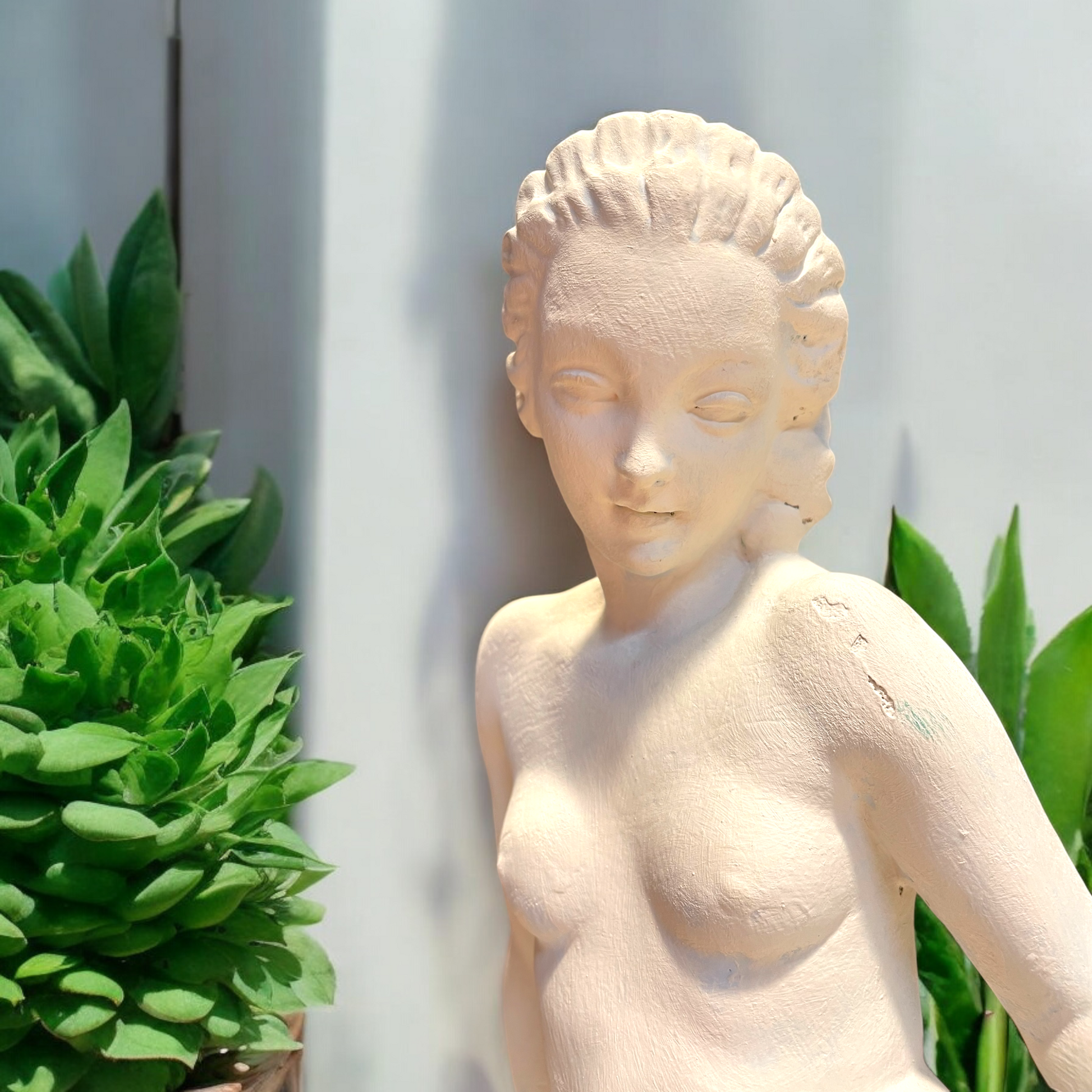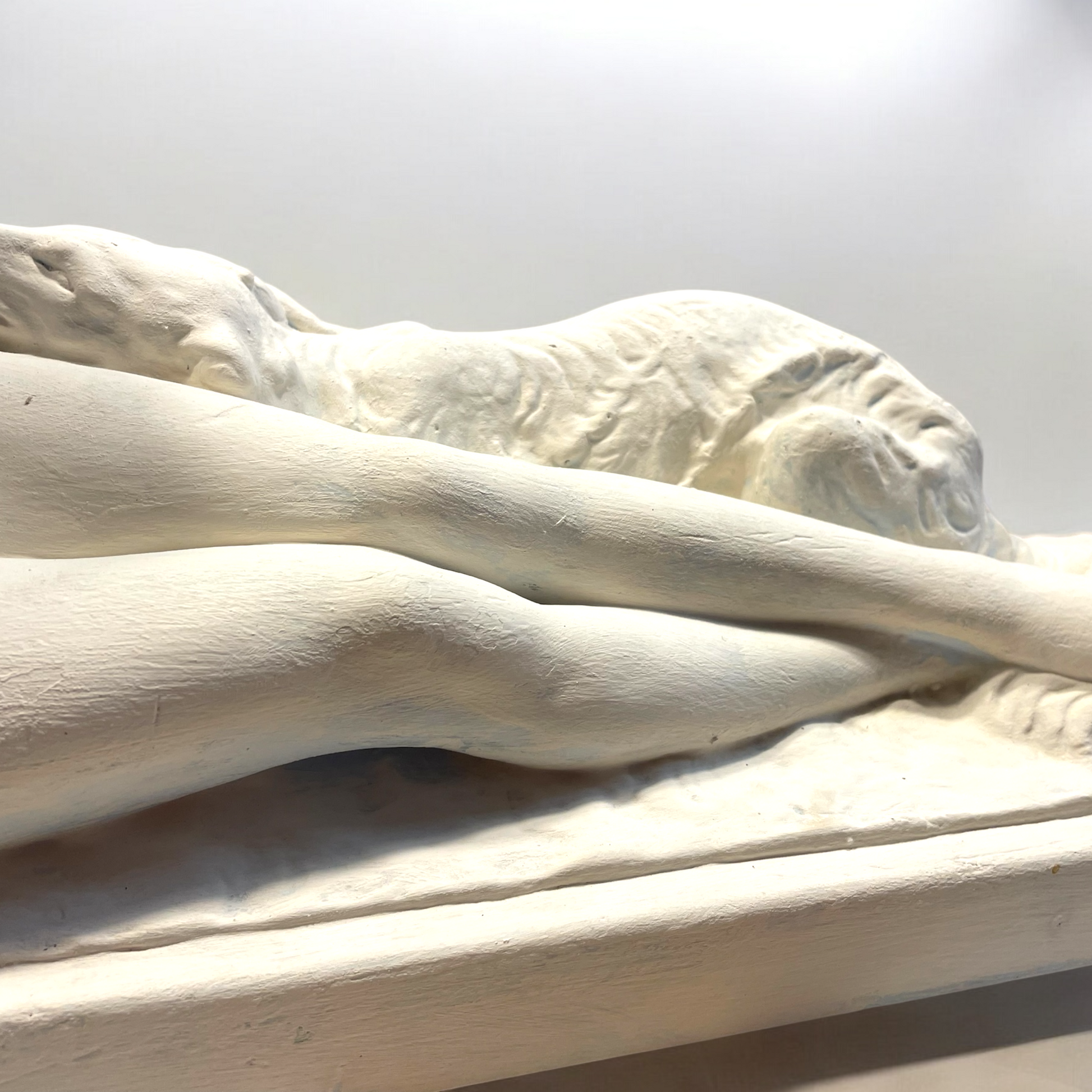 Noi ci vediamo l’amore, l’amore quello più puro - il legame con il proprio cane. Ciò che ci ha colpito di questa statua antica non è la donna, non è nudo, bensì lo scambio degli sguardi. la posa del cane ha ricevuto molta più attenzione dall’artista rispetto alla donna, proprio per rendere lui protagonista dell’opera. il suo atteggiamento è quello del cane fedele che si sdraia e accuccia vicino a chi ama di più al mondo. Bellissimo il dettaglio della posa della testa, appoggiata sulle gambe della donna, la quale a sua volta con delicatezza pone la mano sulla testa del cane. Il soggetto di quest’opera è il legame, quello che corre invisibile tra quegli occhi, inseparabili. L’opera è firmata, è in gesso, ha dimensioni abbastanza importanti - 56.5 x 16 x 31 cm - e presenta due piccoli difetti che sono riassunti nelle ultime due fotografie. Un recupero d’epoca che ci ha colpiti davvero.