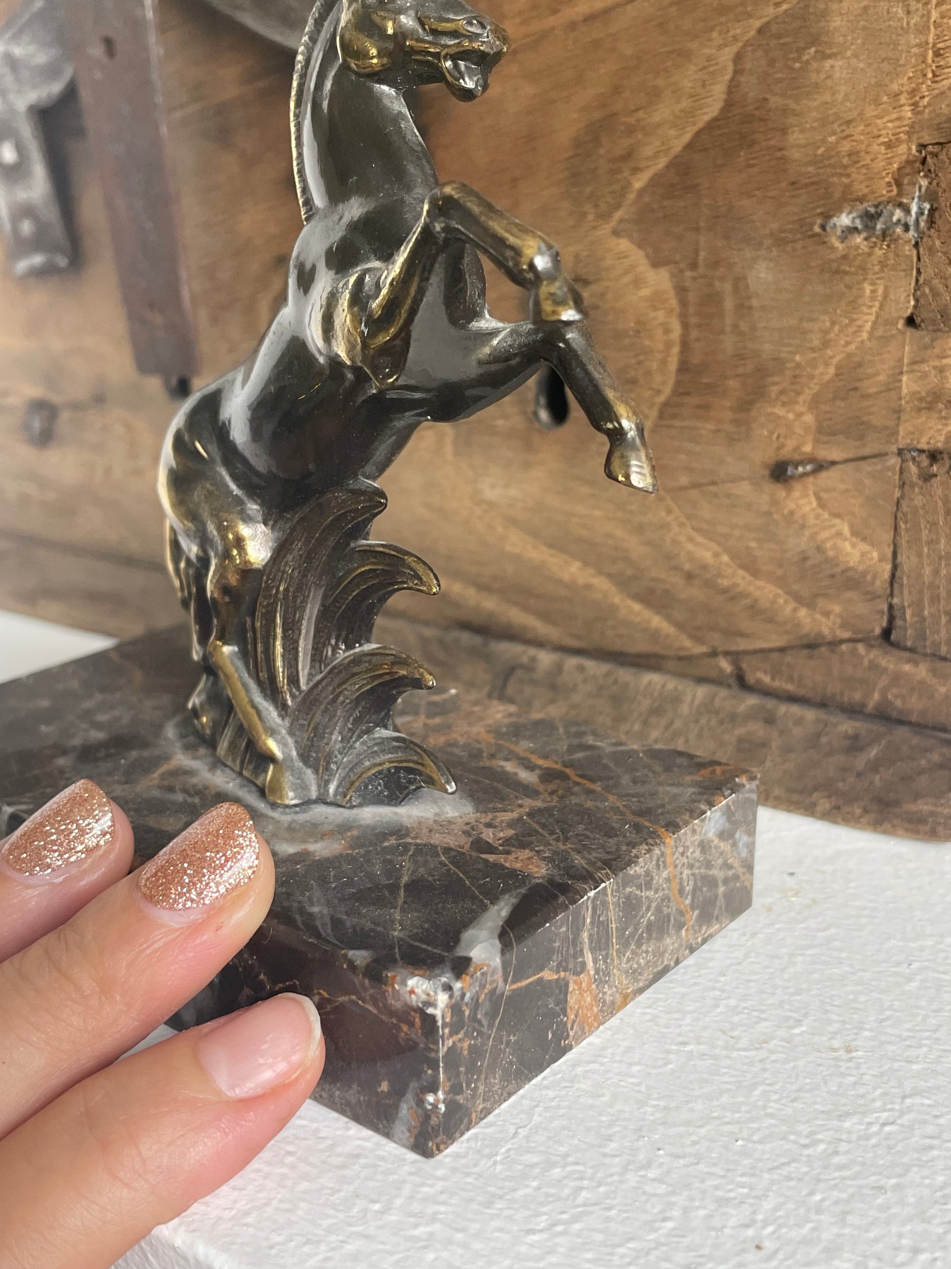 Statua fermacarte cavallino rampante su marmo, anni β40-β50