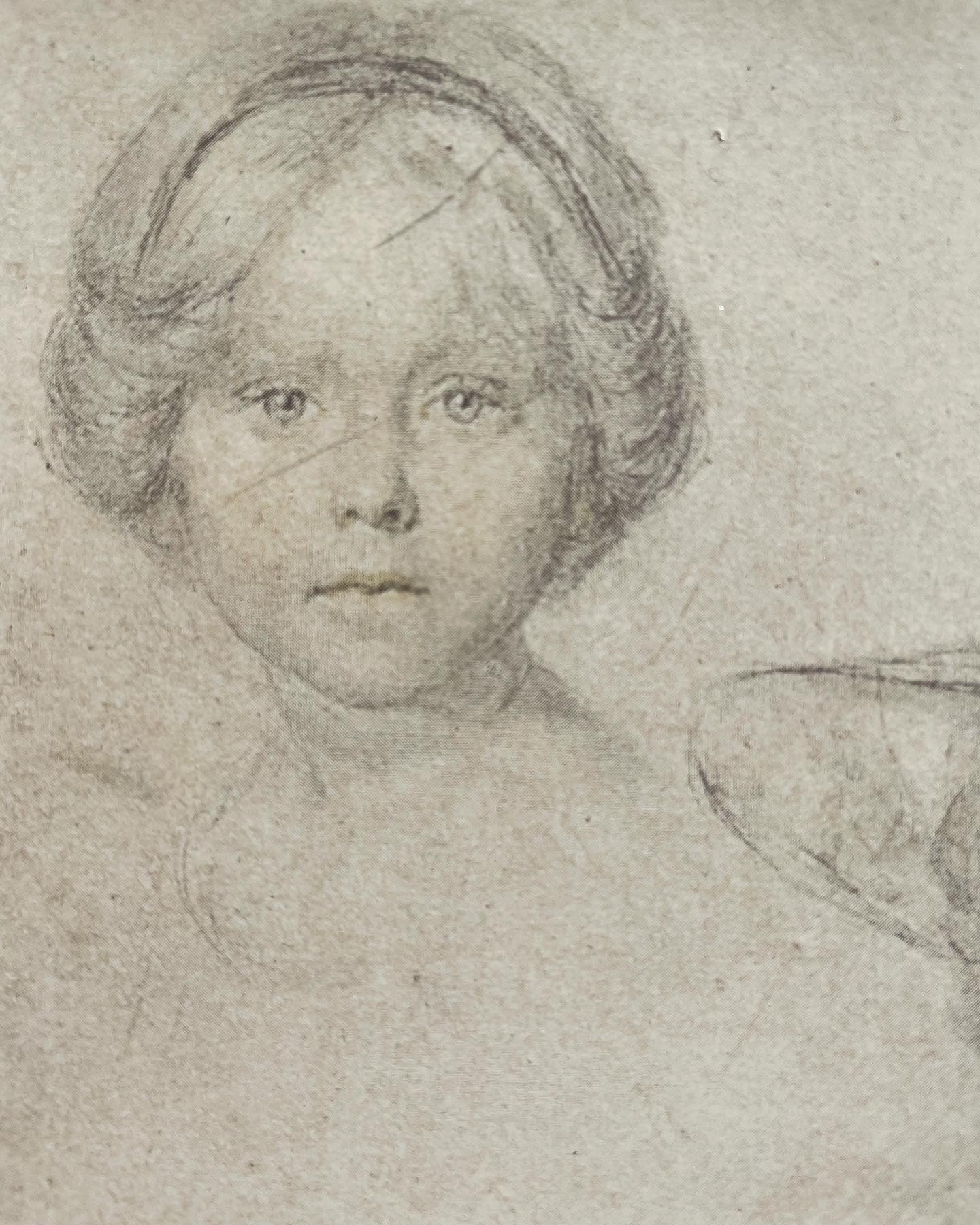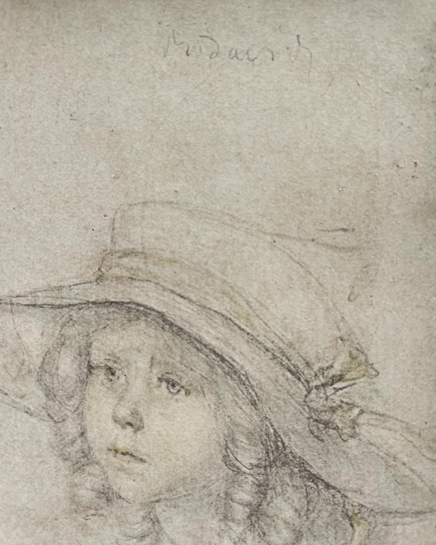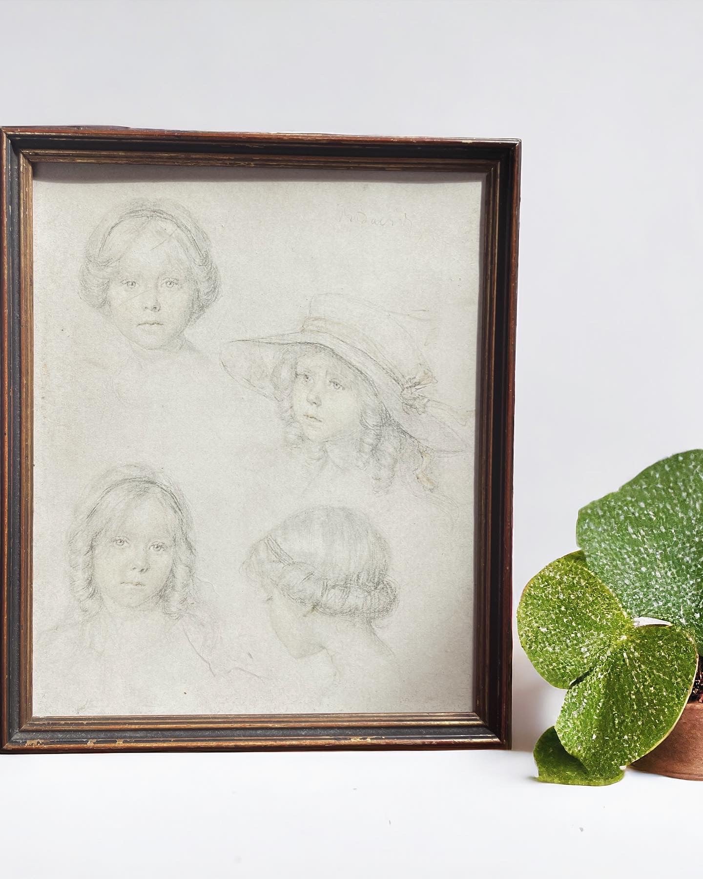 French artist studio print in vintage wooden frame. Little romantic and boho chic vintage gem. Very good condition; dimensions: 20 x 16 cm.