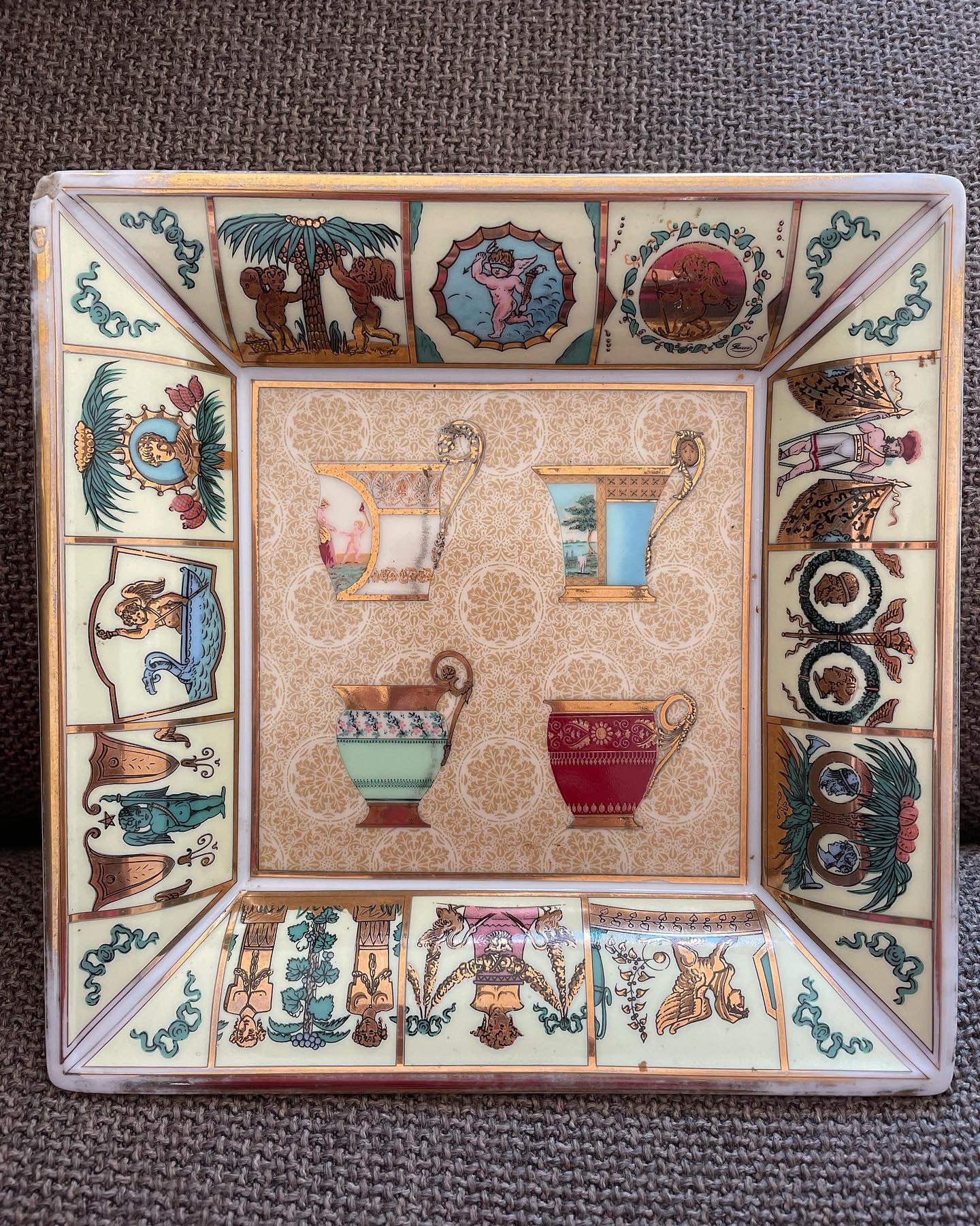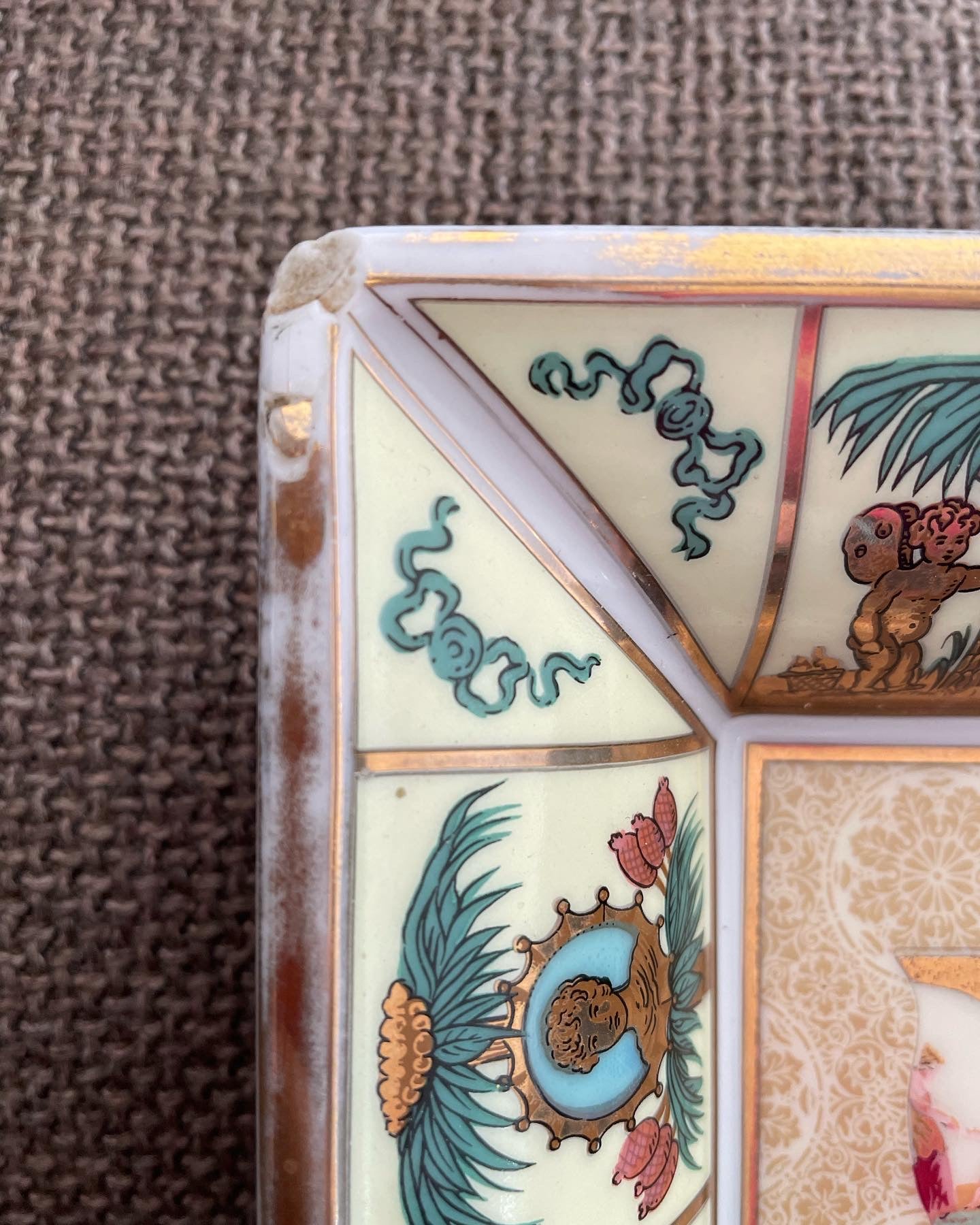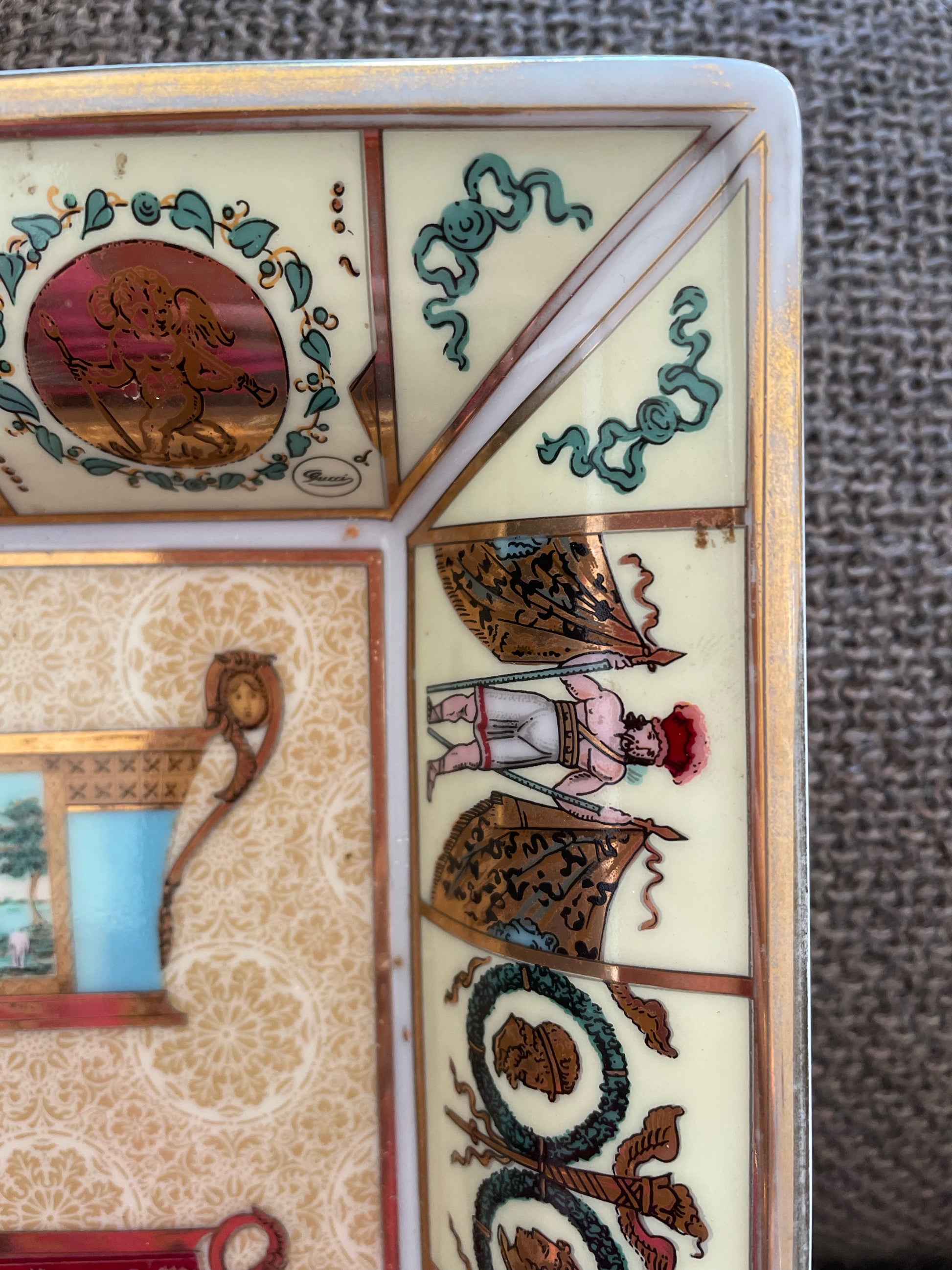 The #vintage is also #signed like this very #rare #gucci #emptypockets in #porcelain from the #seventies, #design inspired by #greekmythology. It is a piece that is 50 years old and therefore we highlight the faded #gilding on the corners and a very small chip in one of them.