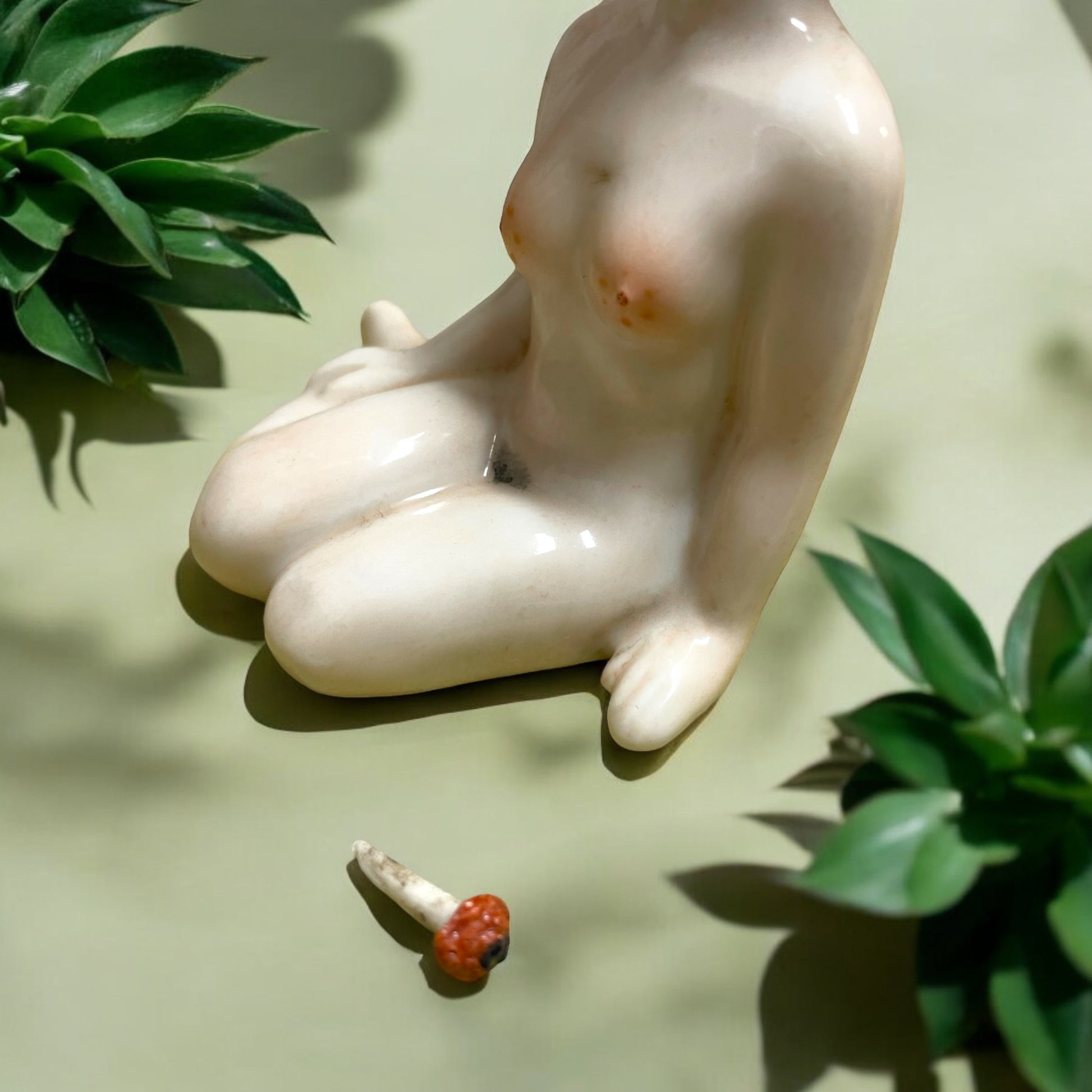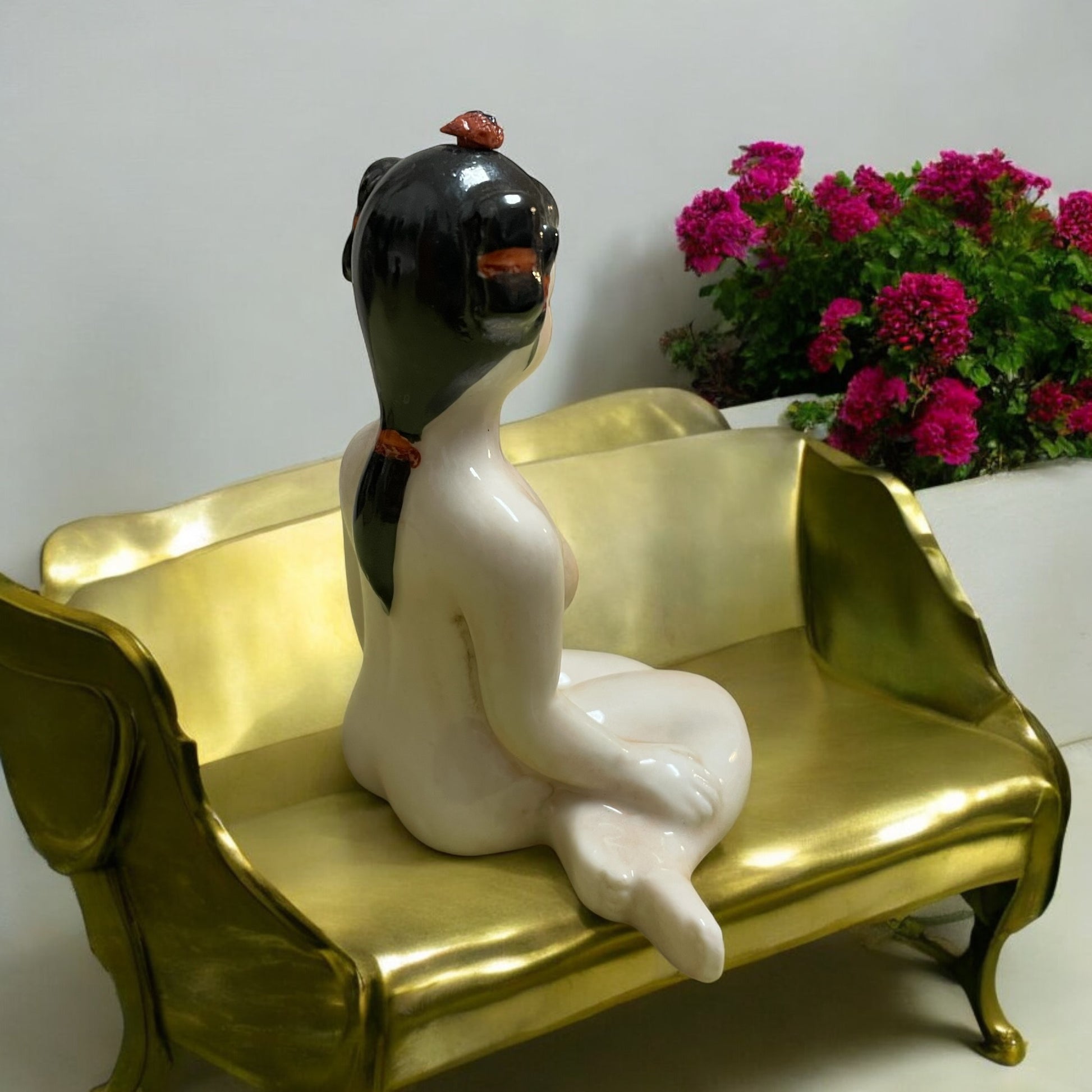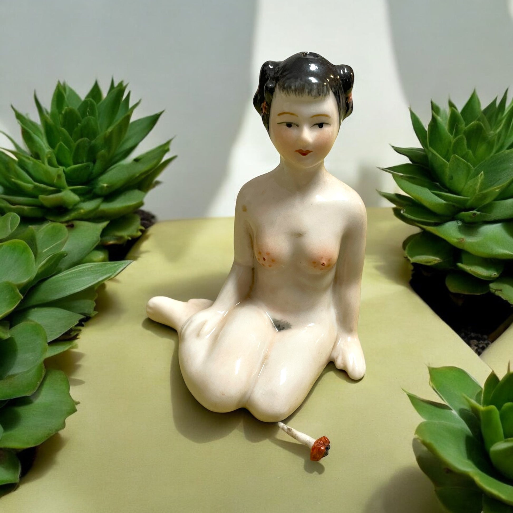 Spettacolare tabacchiera ottica da fiuto tipica della tradizione cinese, Metà del novecento, Un nodo rosso sui capelli della fanciulla è in realtà un minuscolo tappo a sua volta di ceramica che svela il buco da cui si poteva fiutare il tabacco. Oggetto di grande classe ed eleganza, Da collezione. Altezza centimetri 9,5