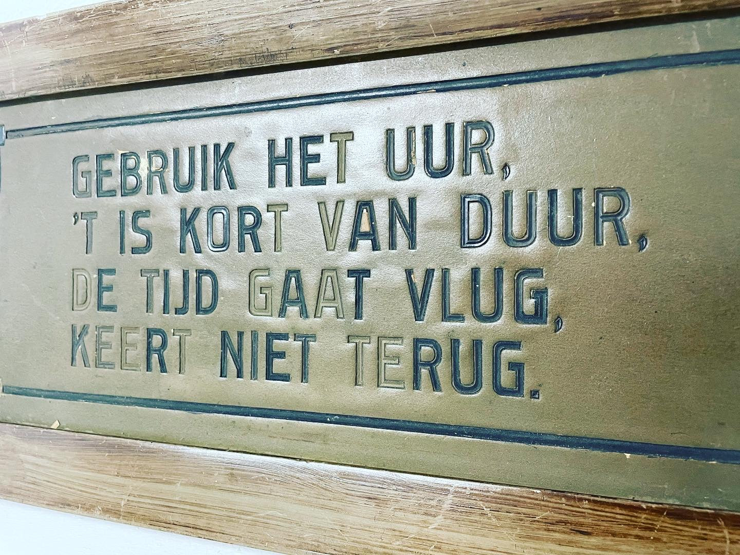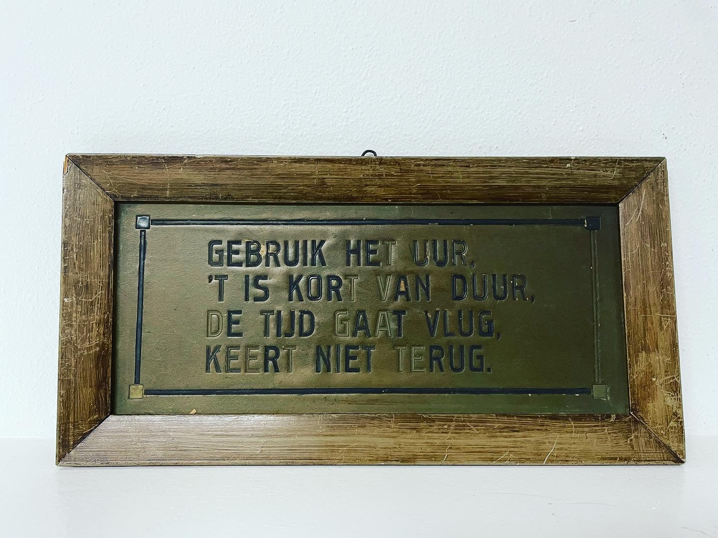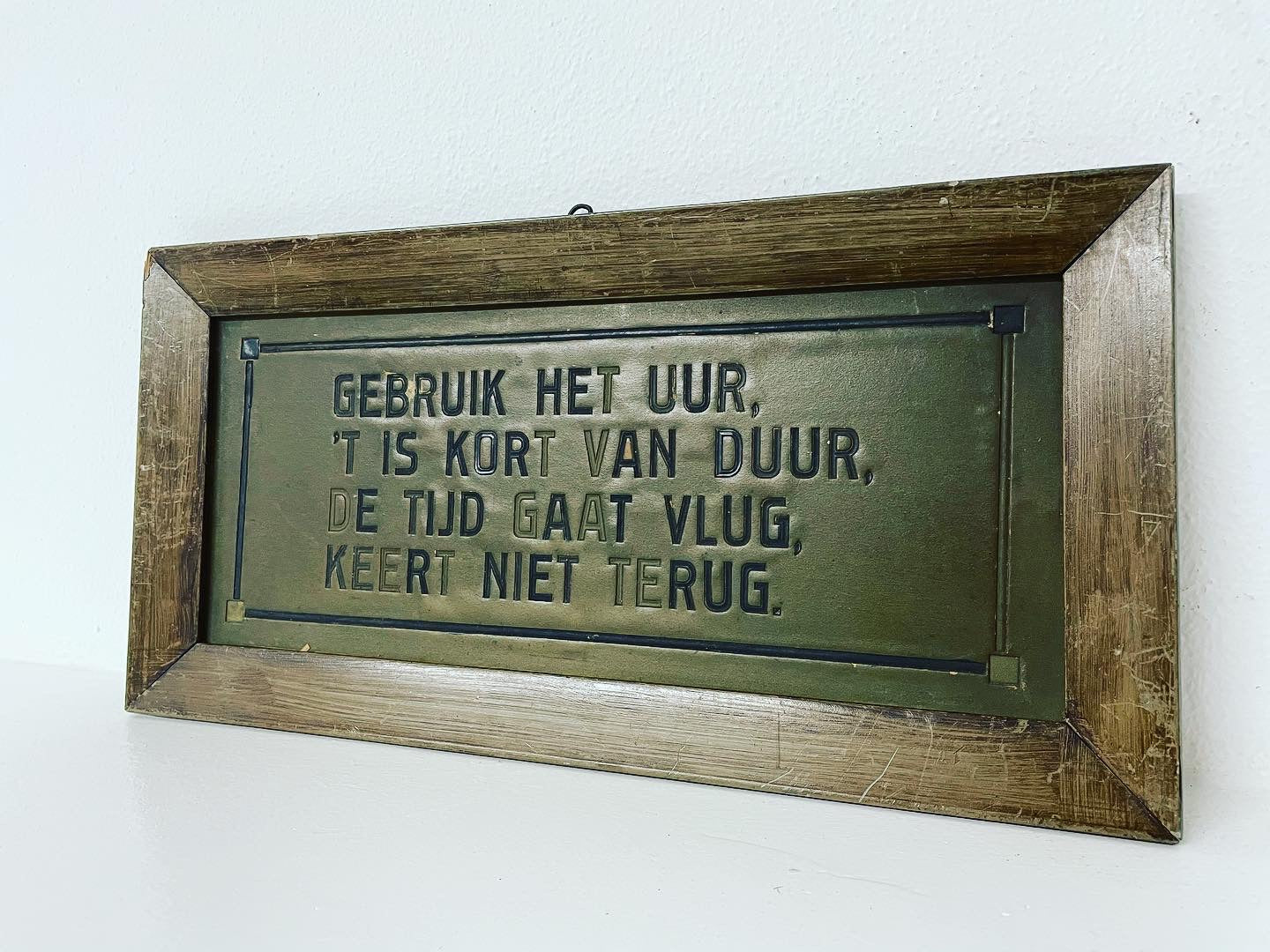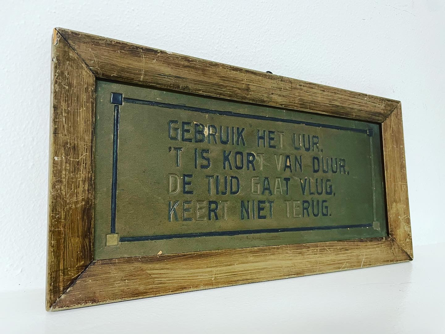 “Use every hour, time is short-lived and never comes back.” - so says the #ancient #plaque in #Flemish in #ancient wooden frame. A timeless motto that welcomed, illo tempore, the patrons of #anticocaffè of the first half of the #twentieth century. A very particular and beautiful #curious #antique #object. Dimensions 38 x 20 cm.