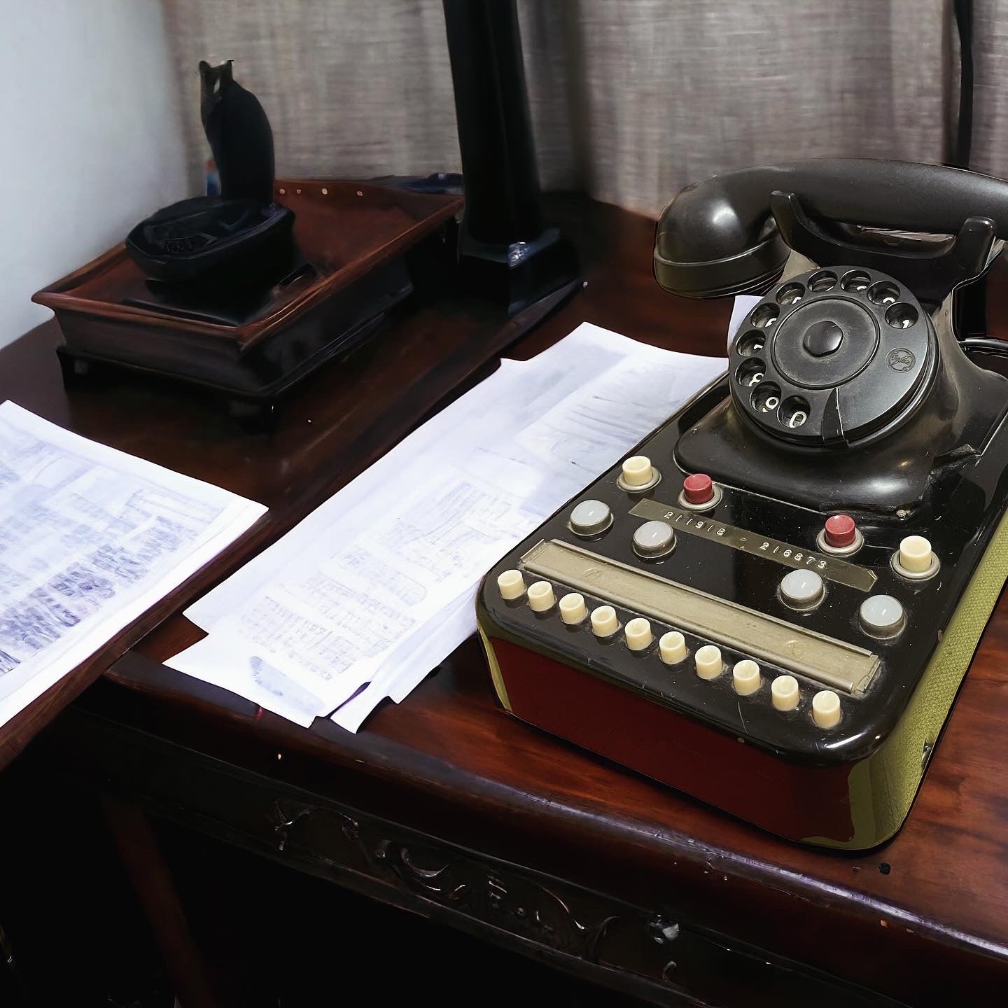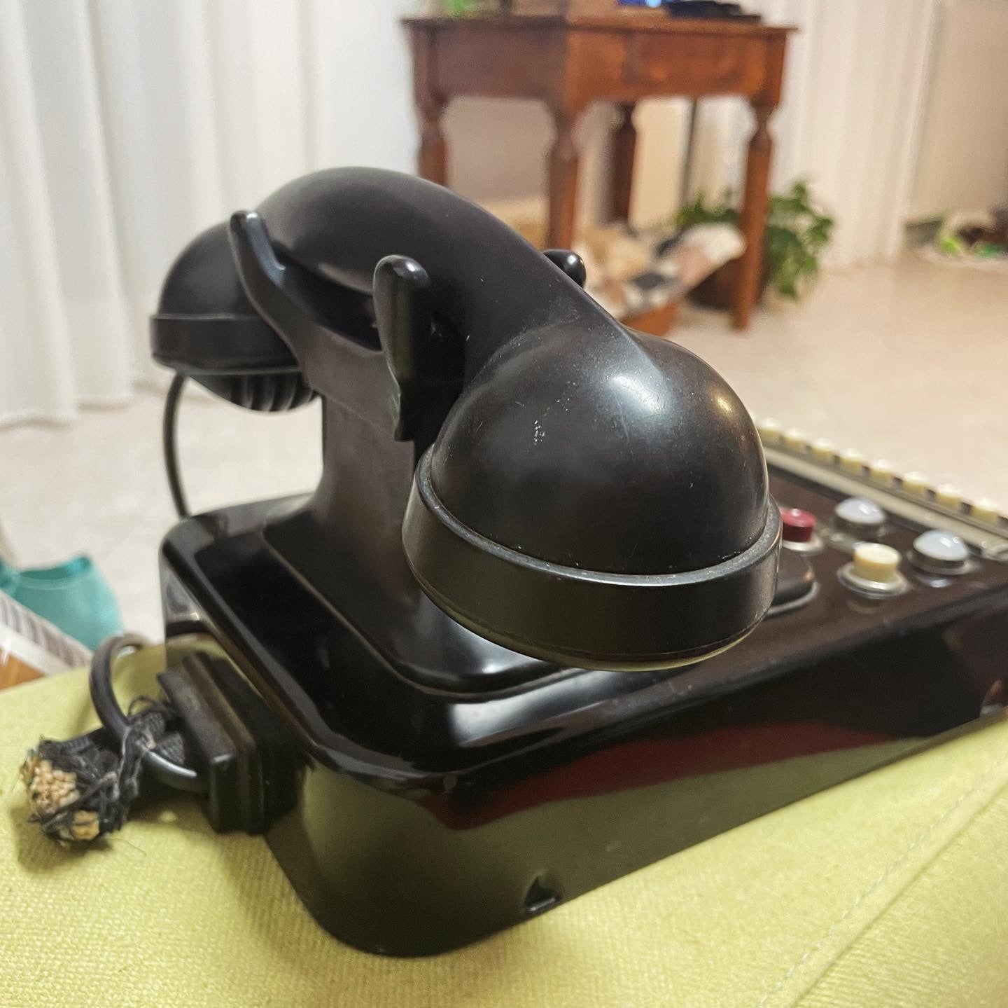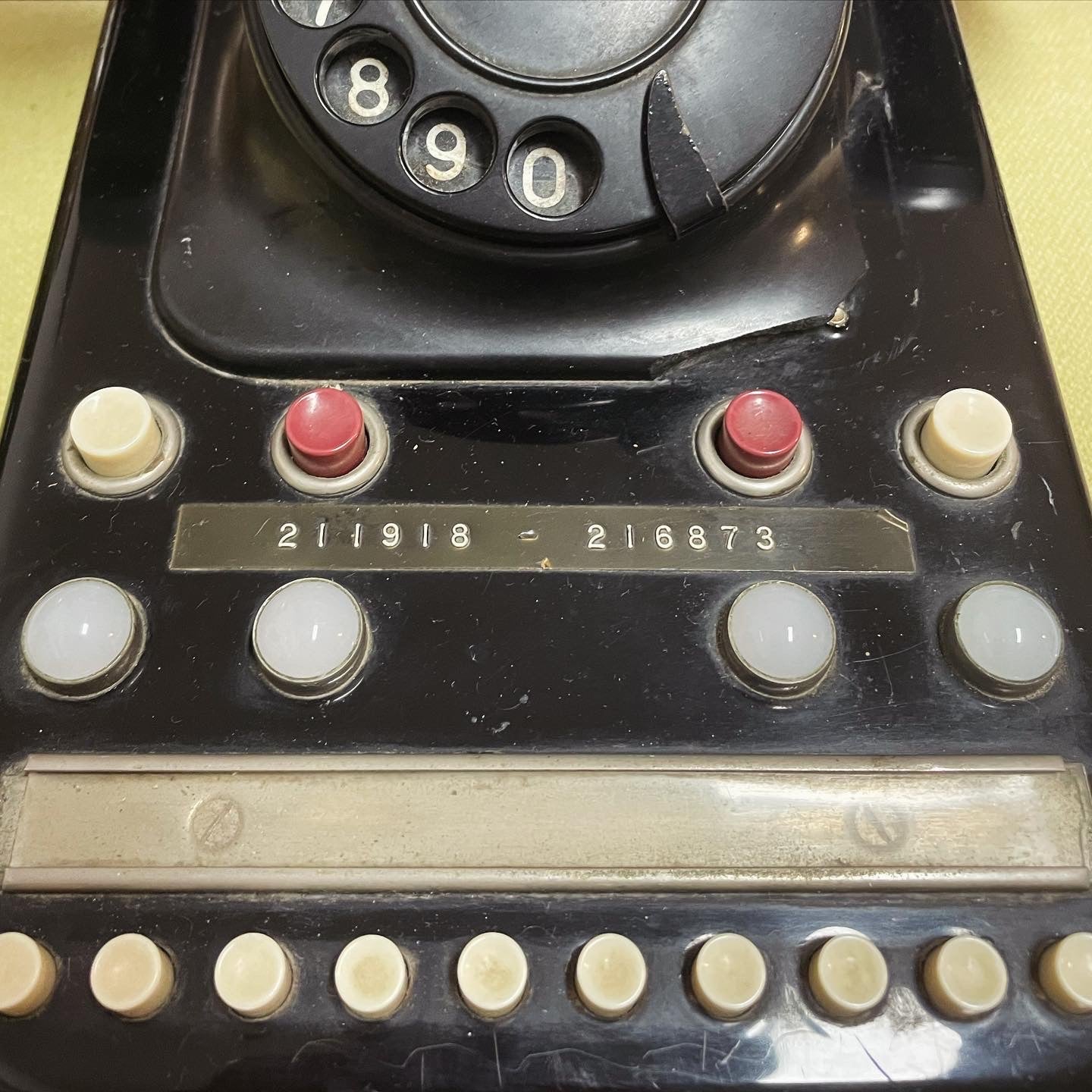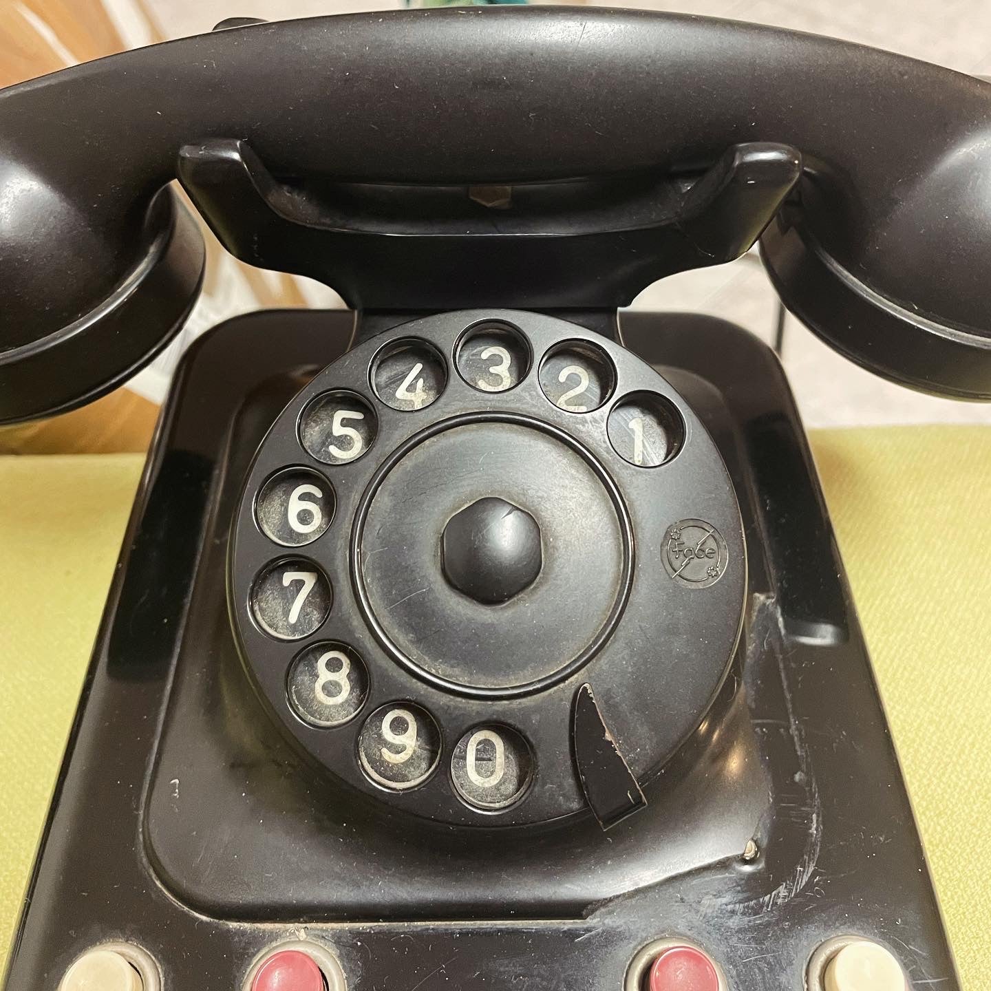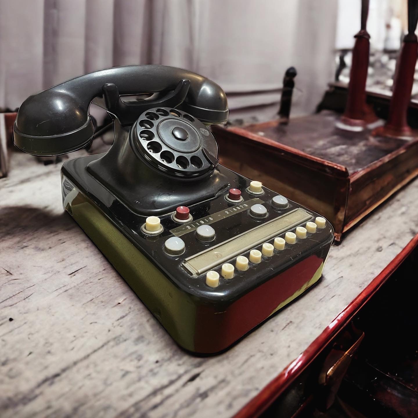 Beautiful old switchboard telephone in Bakelite; late 1940s, 3 kg, particular model for the number of internals and line management. In excellent condition, beautiful piece of furniture in industrial style. A small piece is missing from the dial frame, see last photo. On an old desk or by contrast on a very modern polished steel table, visual impact guaranteed.