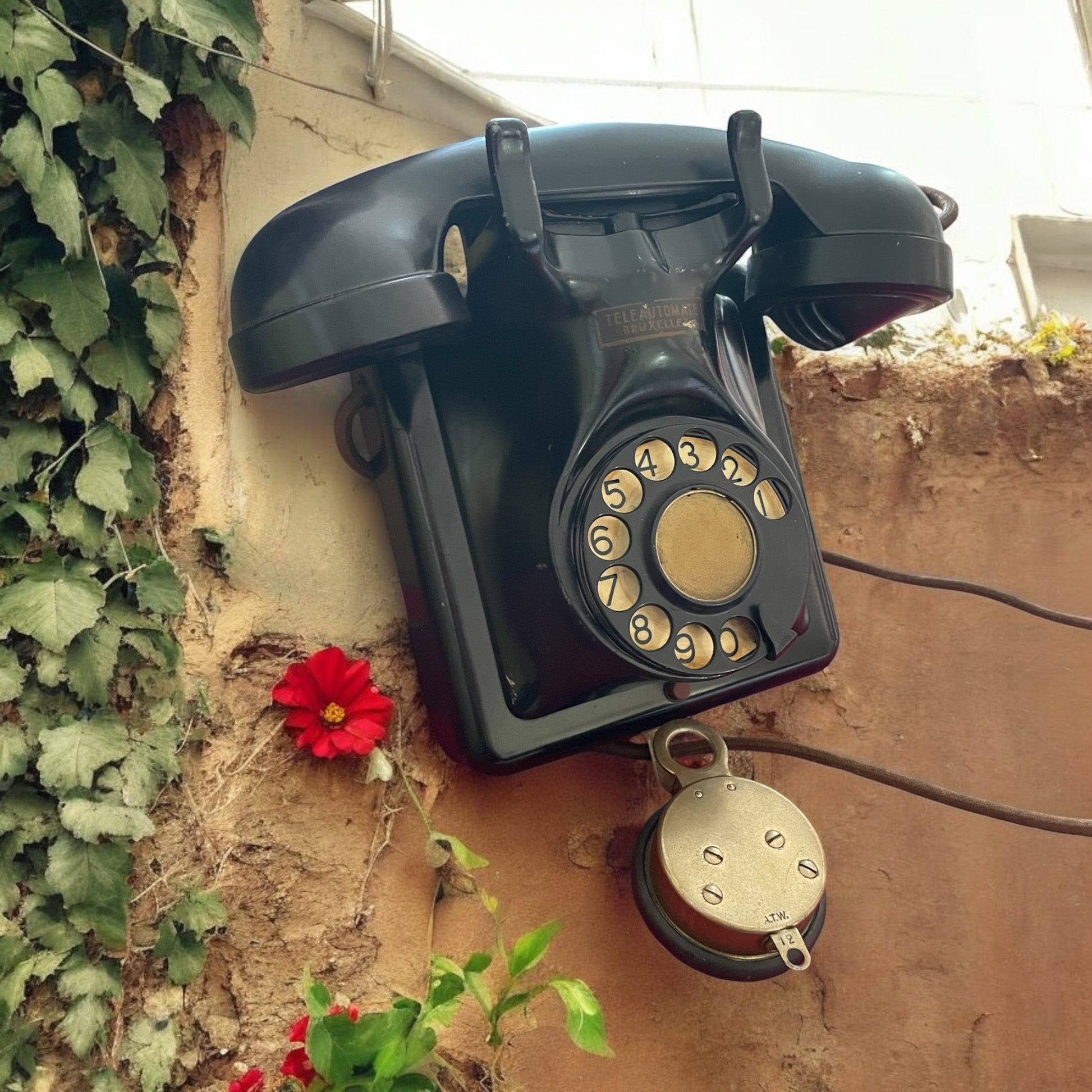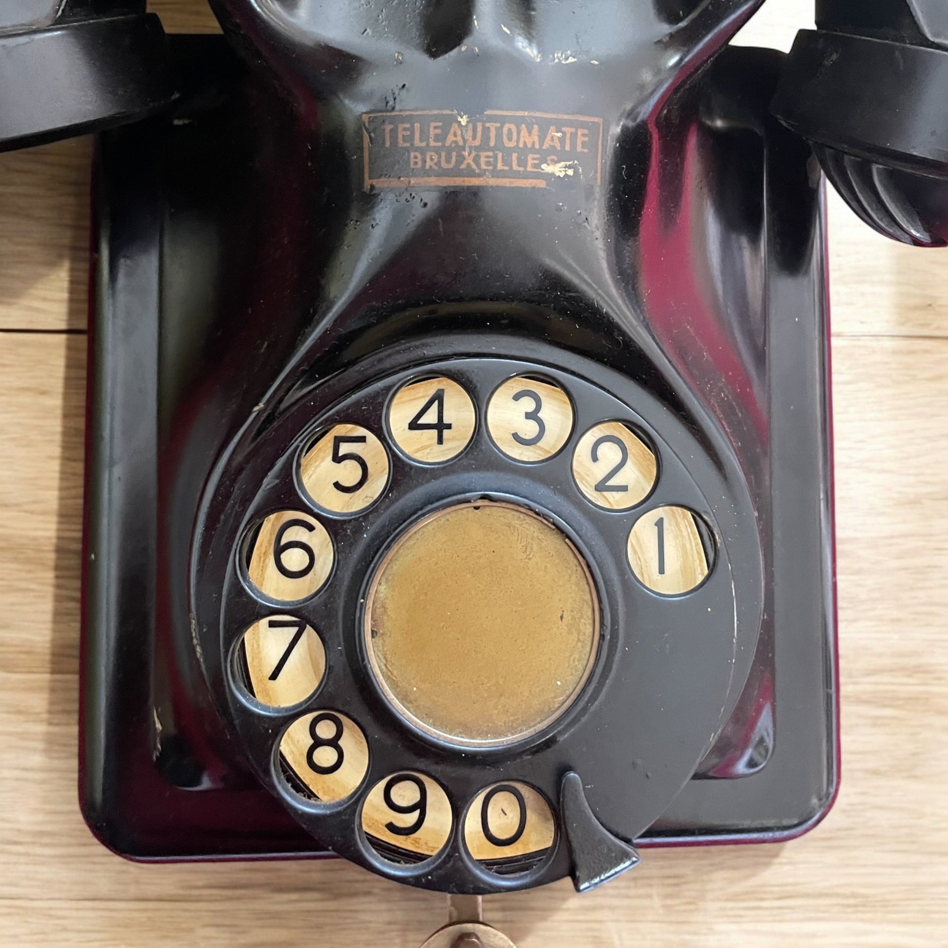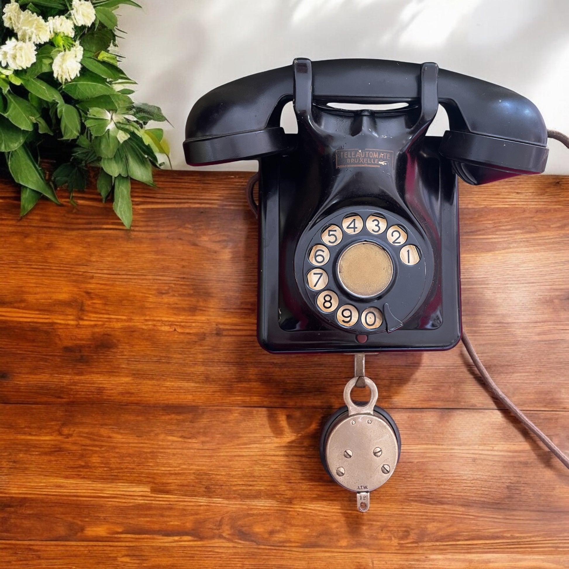 Prodotto dalla rinomata “Le Téléautomate”, questo apparecchio rappresentava il culmine della tecnologia telefonica dell’epoca. Ogni chiamata era un evento significativo: le dita scorrevano sul disco combinatore, e il caratteristico suono rotante anticipava la connessione con amici, familiari o partner d’affari. La suoneria, con il suo timbro distintivo, riempiva la stanza, annunciando l’arrivo di notizie o inviti a eventi mondani. Questo telefono non era solo un mezzo di comunicazione, ma anche un simbolo di status e progresso. Testimone silenzioso di conversazioni intime, decisioni importanti e momenti di gioia, ha accompagnato la vita quotidiana di una famiglia belga, intrecciando le sue storie con quelle della città in fermento.