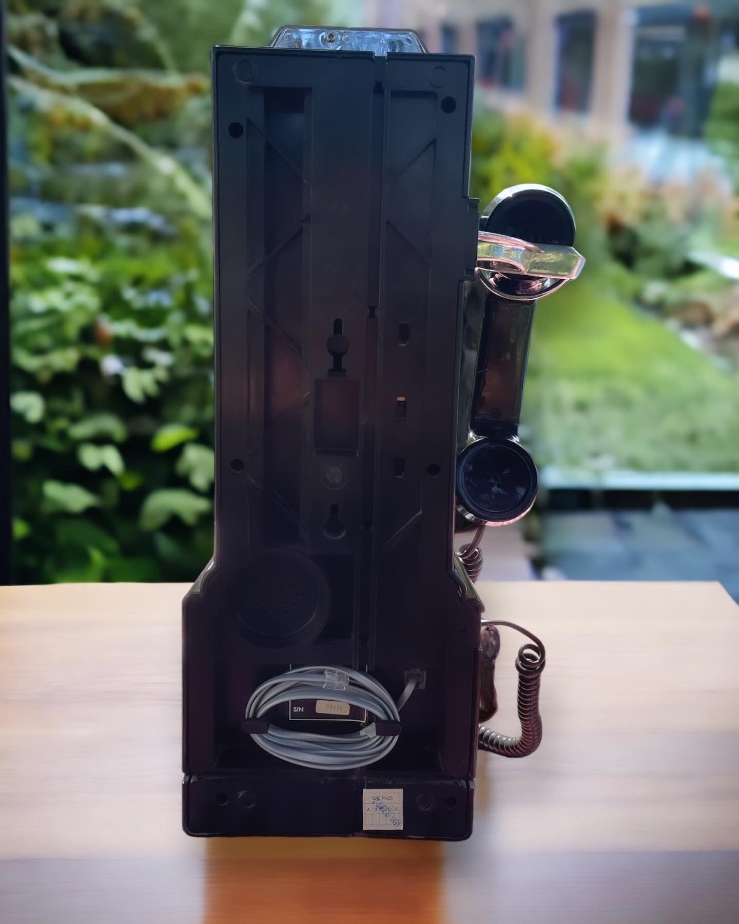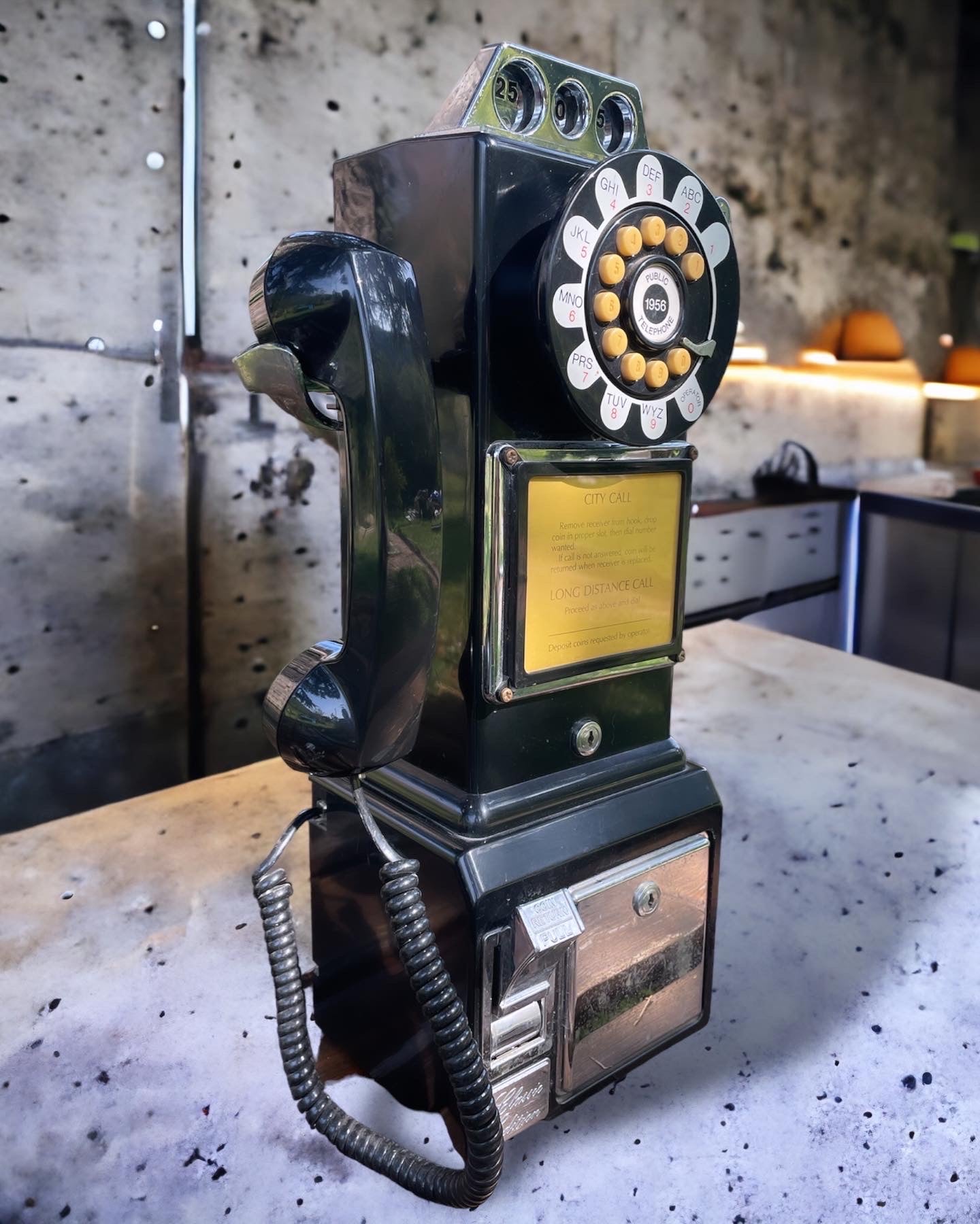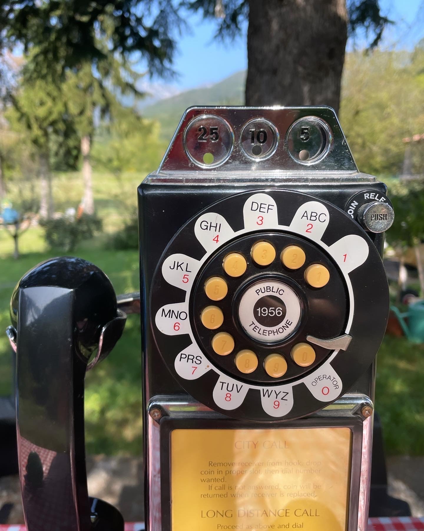 #modern #telephone from the #90s in excellent working order, nice visual impact, it was a #garagestyle model that took inspiration from the American #public telephone of the diners food popular in the 50s-60s ... imagine yourself on Route 66 with your mega truck parked after all the miles covered ... go in; they pour you coffee from the carafe and you don't make a phone call to your #baby ?? wonderful hanging on the wall or leaning, evocative.