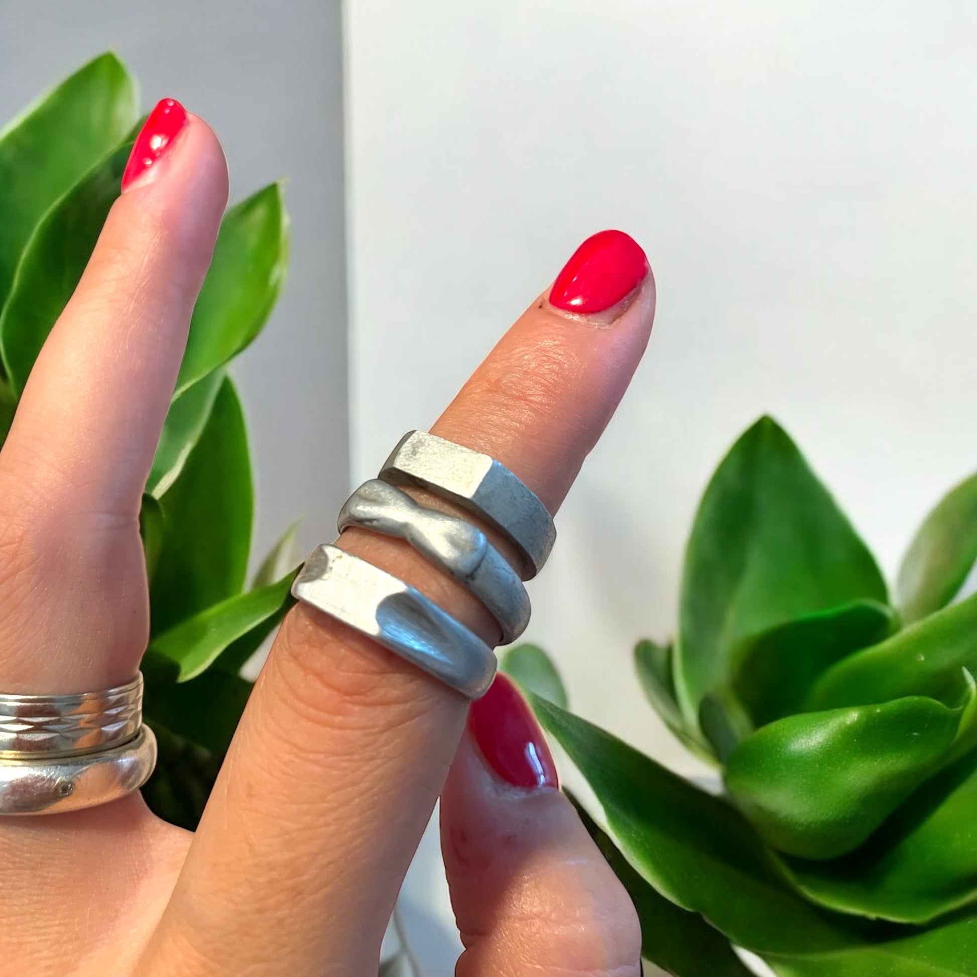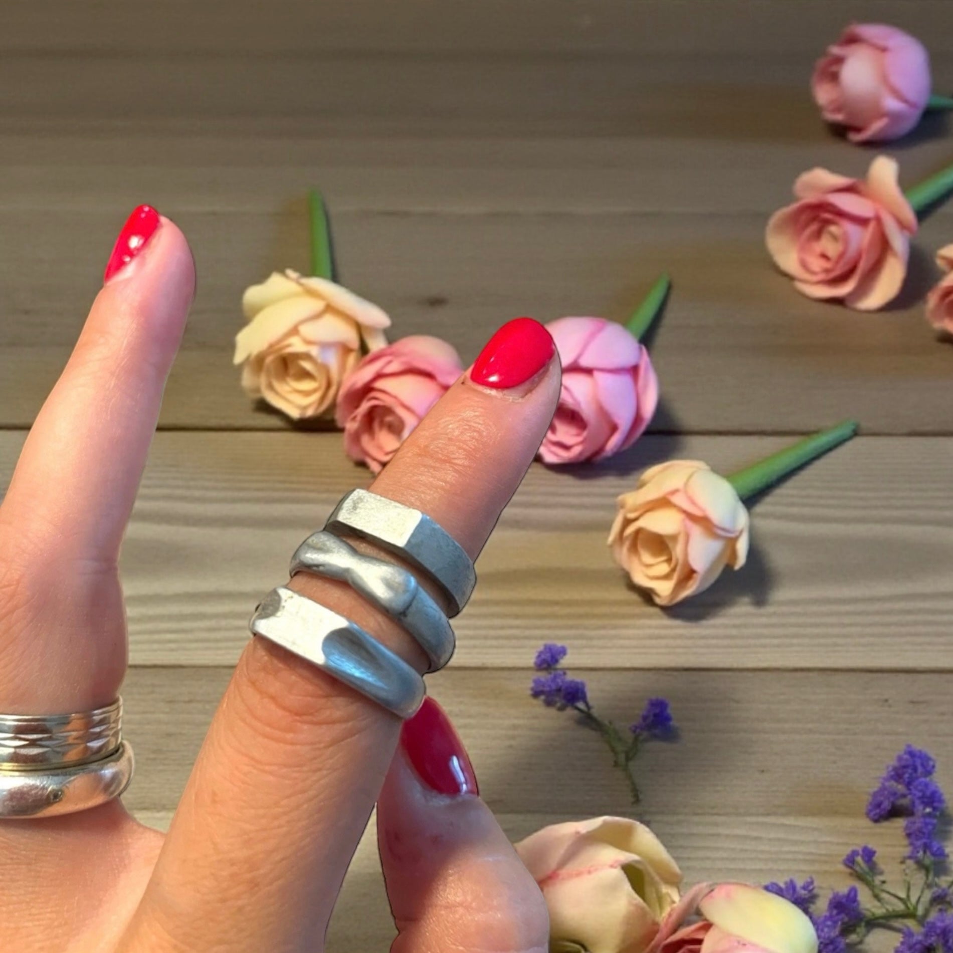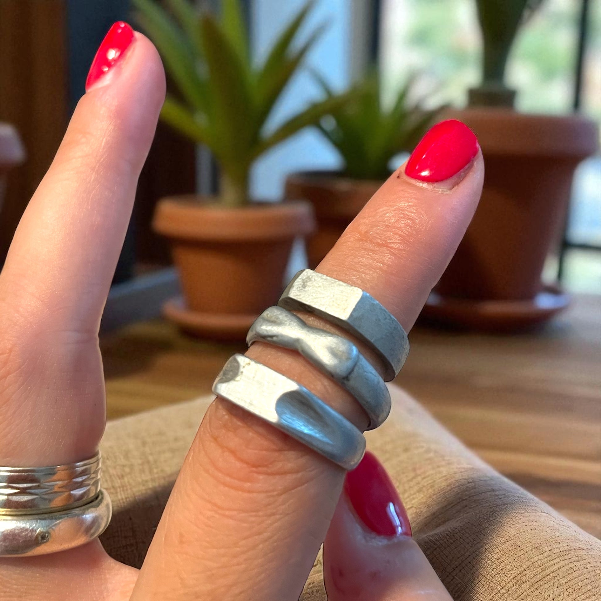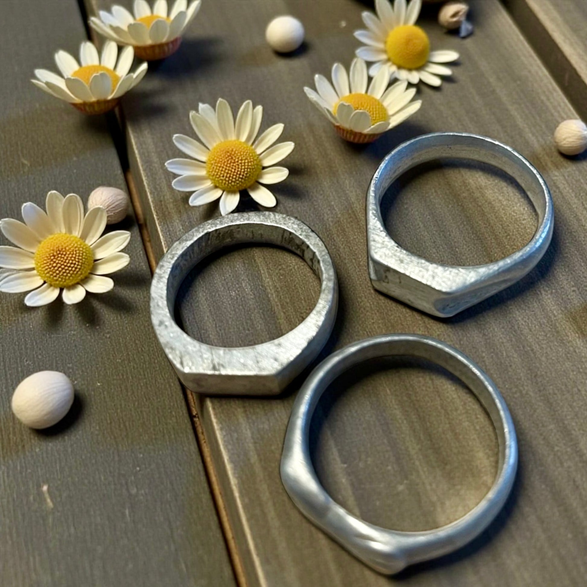 Eppure, tra le mani sporche di guerra, trovavano la forza di plasmare un gesto d’amore. Questi anellini francesi da trincea sono piccoli, come le dita che avrebbero dovuto indossarli. Fidanzatine lontane, sorelle da proteggere, promesse silenziose incise nel metallo quando le parole erano troppo fragili. Forgiati con utensili di fortuna, ricavati da bossoli o schegge di granata, raccontano un’umanità che resiste, anche nei giorni più cupi. Li immagini mentre limano, incassano, stringono le labbra nella concentrazione. Li senti battere piano, come se ogni colpo dicesse: “Aspettami”. E oggi, chi li osserva sente il peso lieve di una memoria viva, che non vuole essere dimenticata. Misure diametro interno: 15,14 e 8 mm. Perfetti come pendenti ad una catenina, meraviglioso come regalo simbolico dal fortissimo contenuto emotivo.